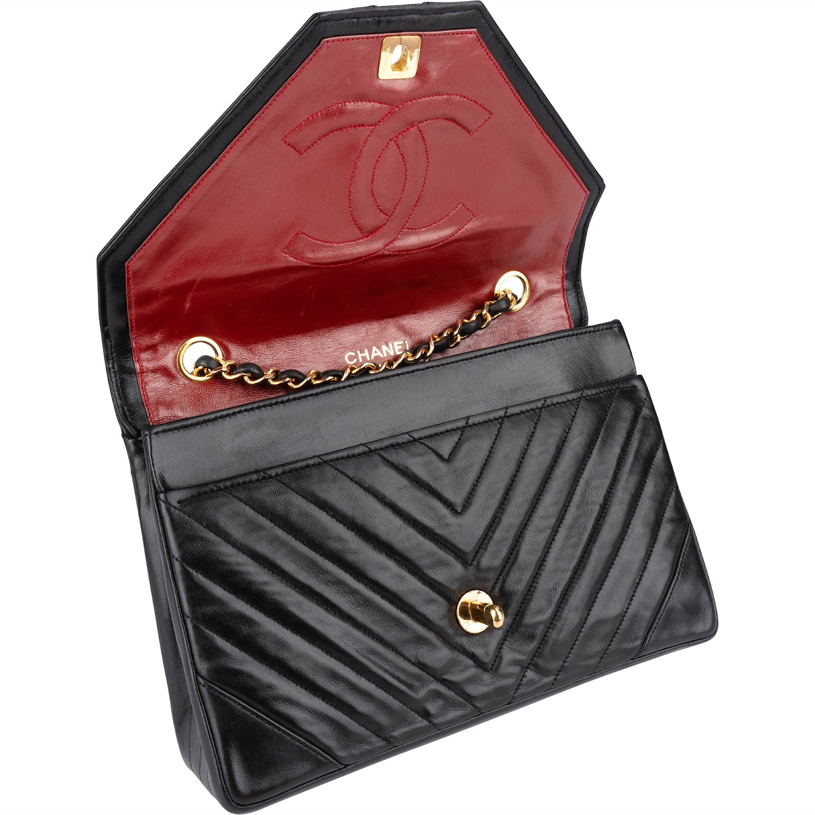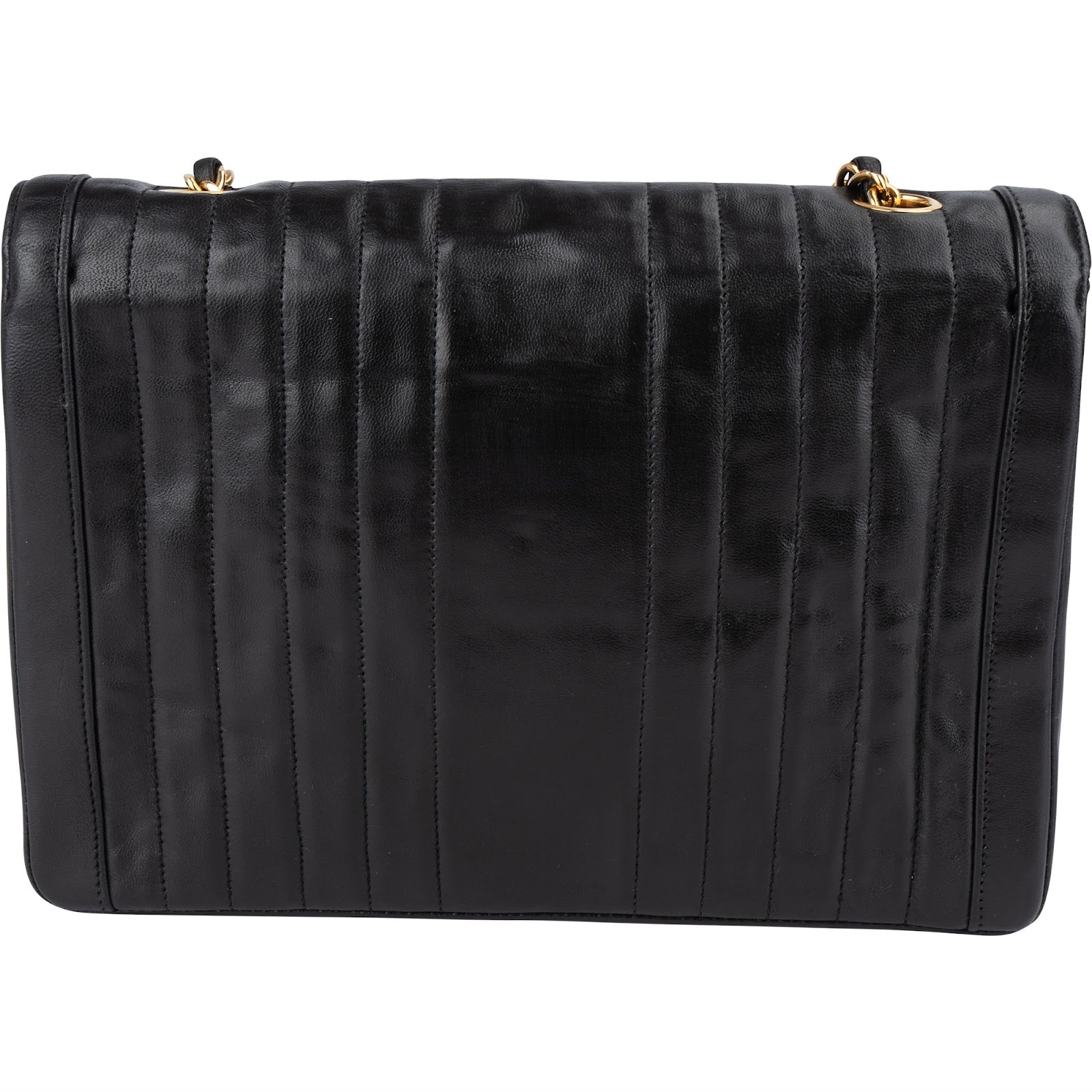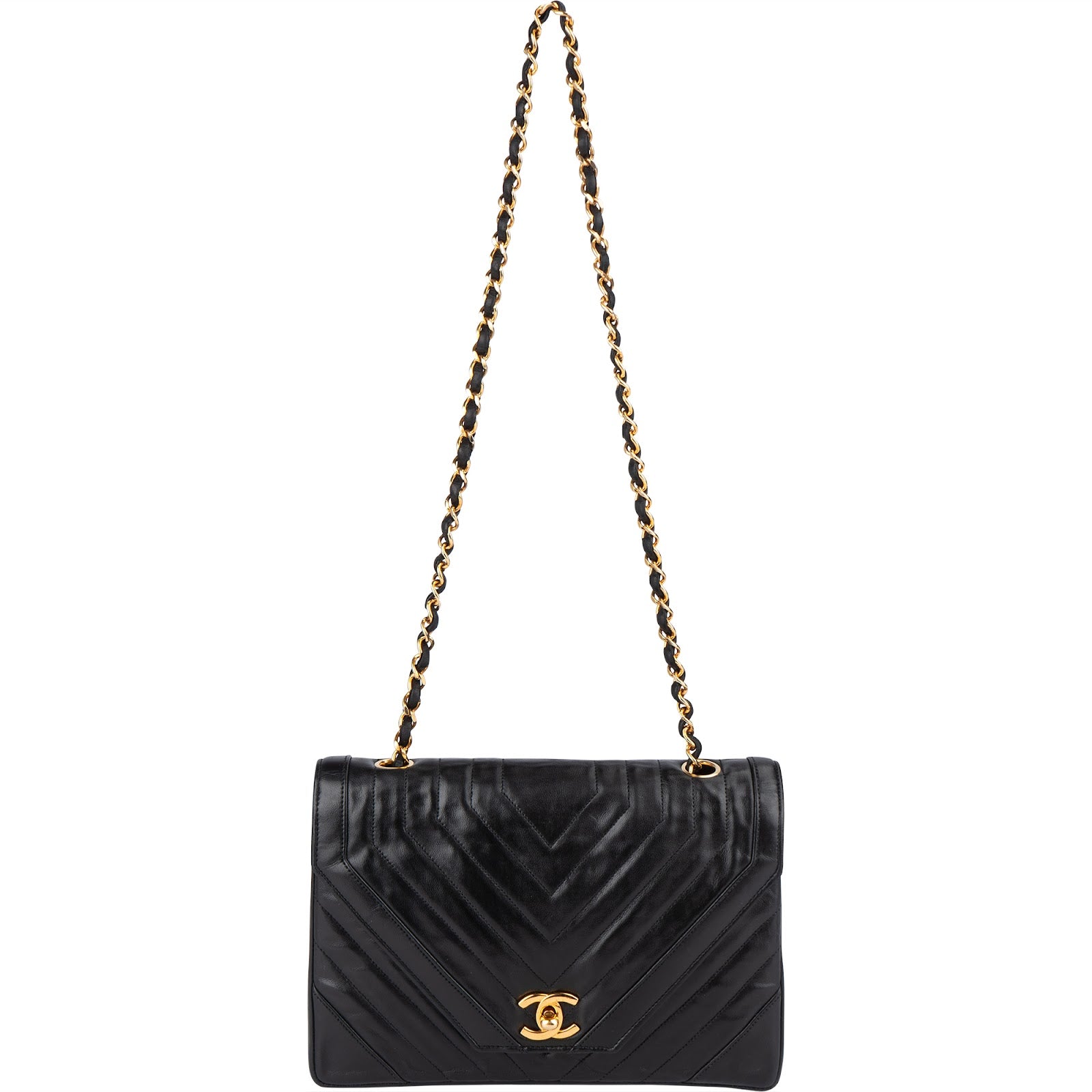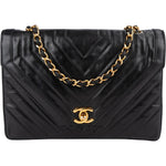 Chanel Chevron Lambskin 24K Gold Single Flap Shoulder Bag