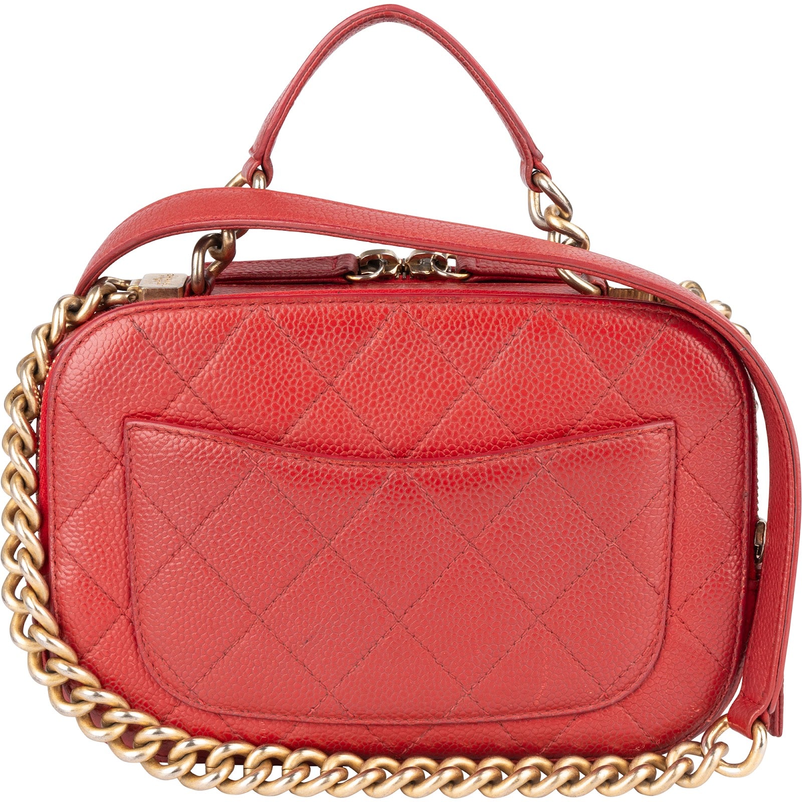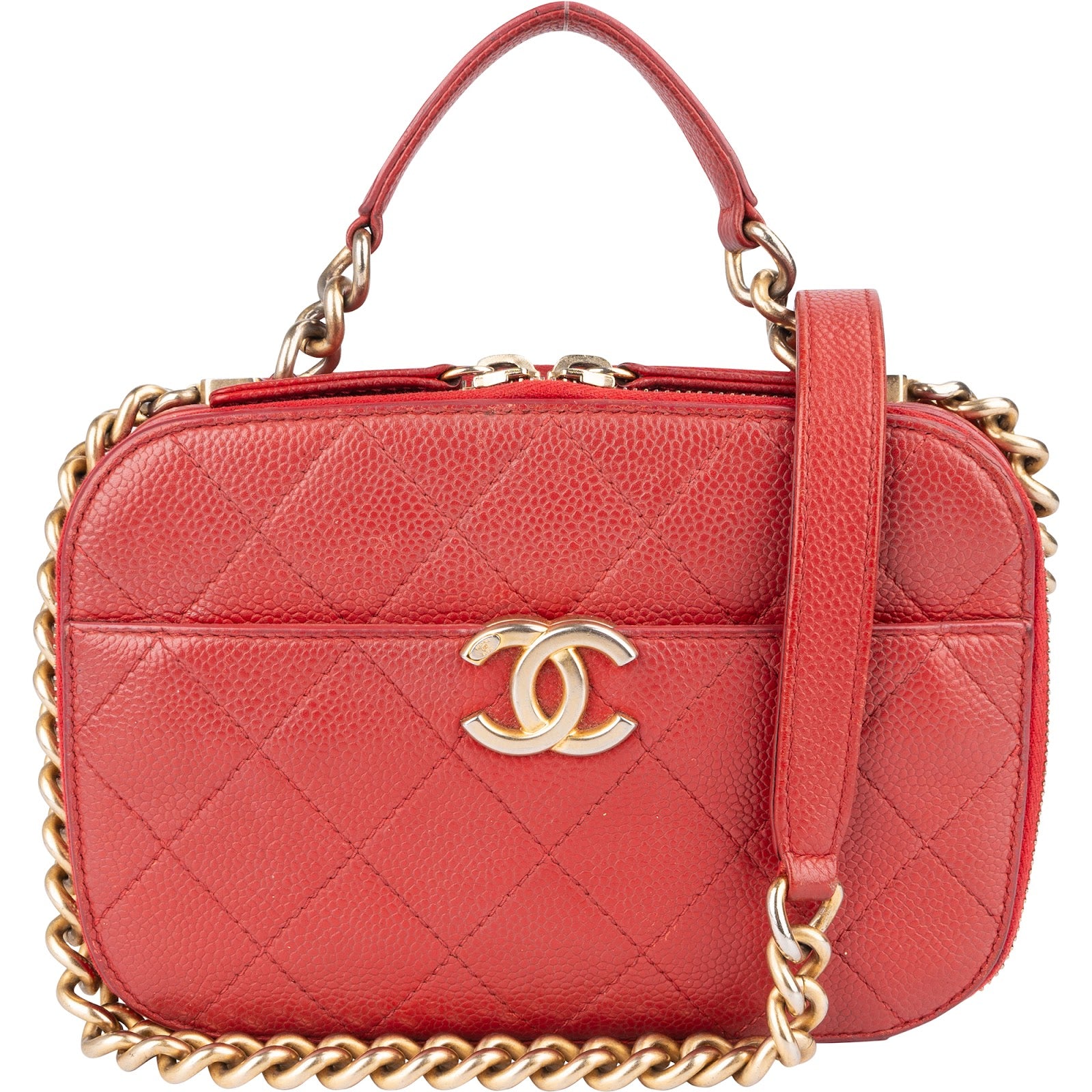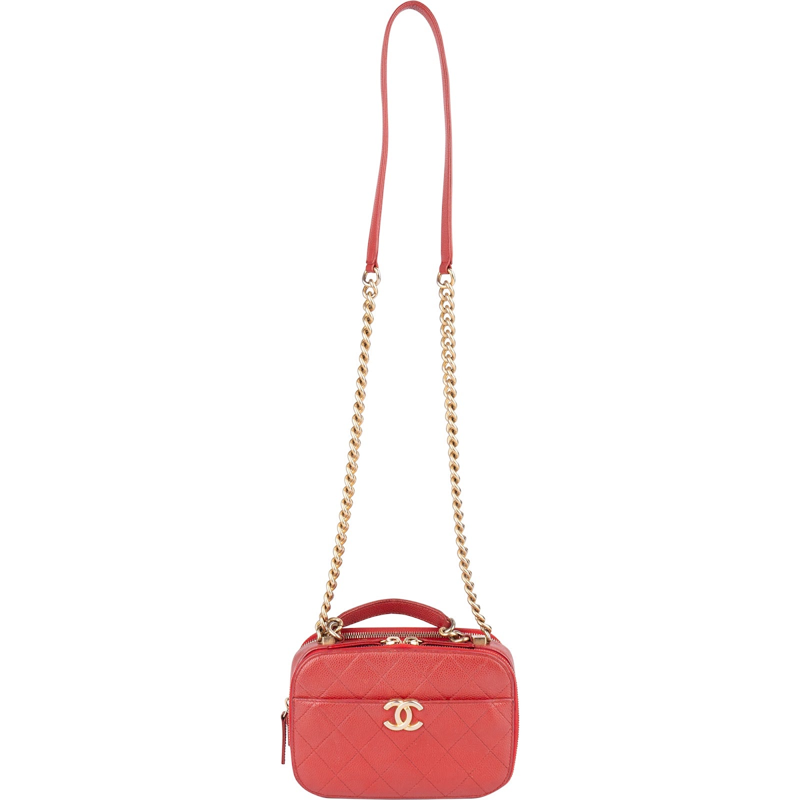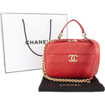 Chanel Red Quilted Lambskin Top Handle Vanity Case Crossbody Bag