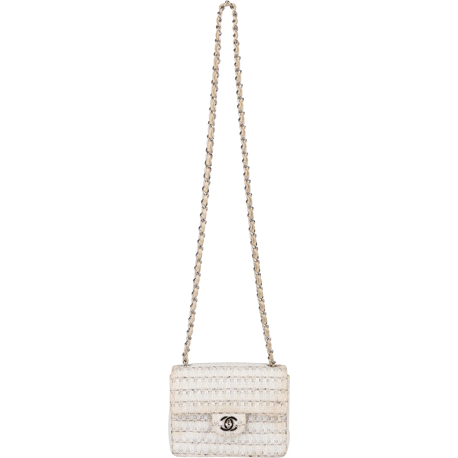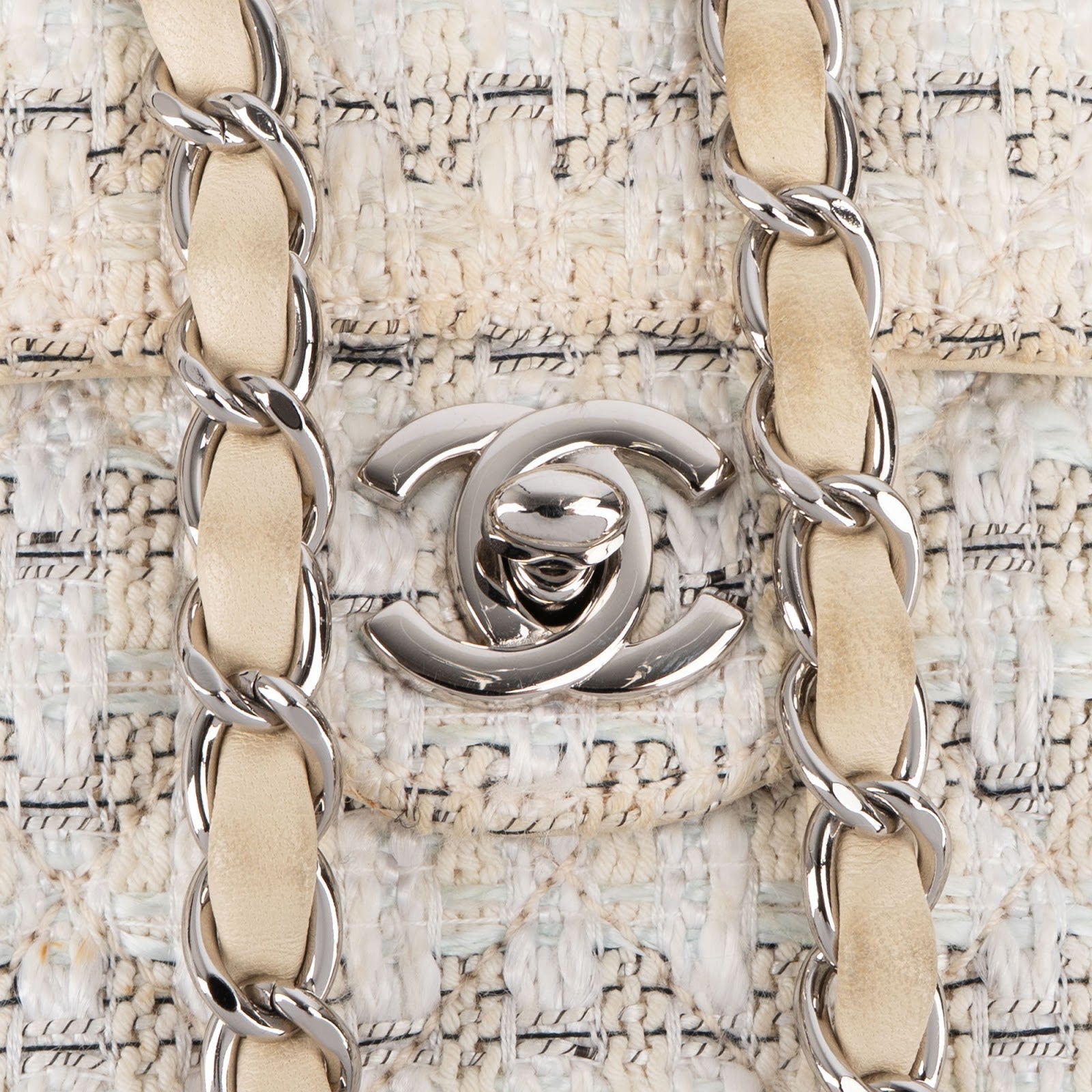 Material: Tweed, Leder, silberfarbene Hardware