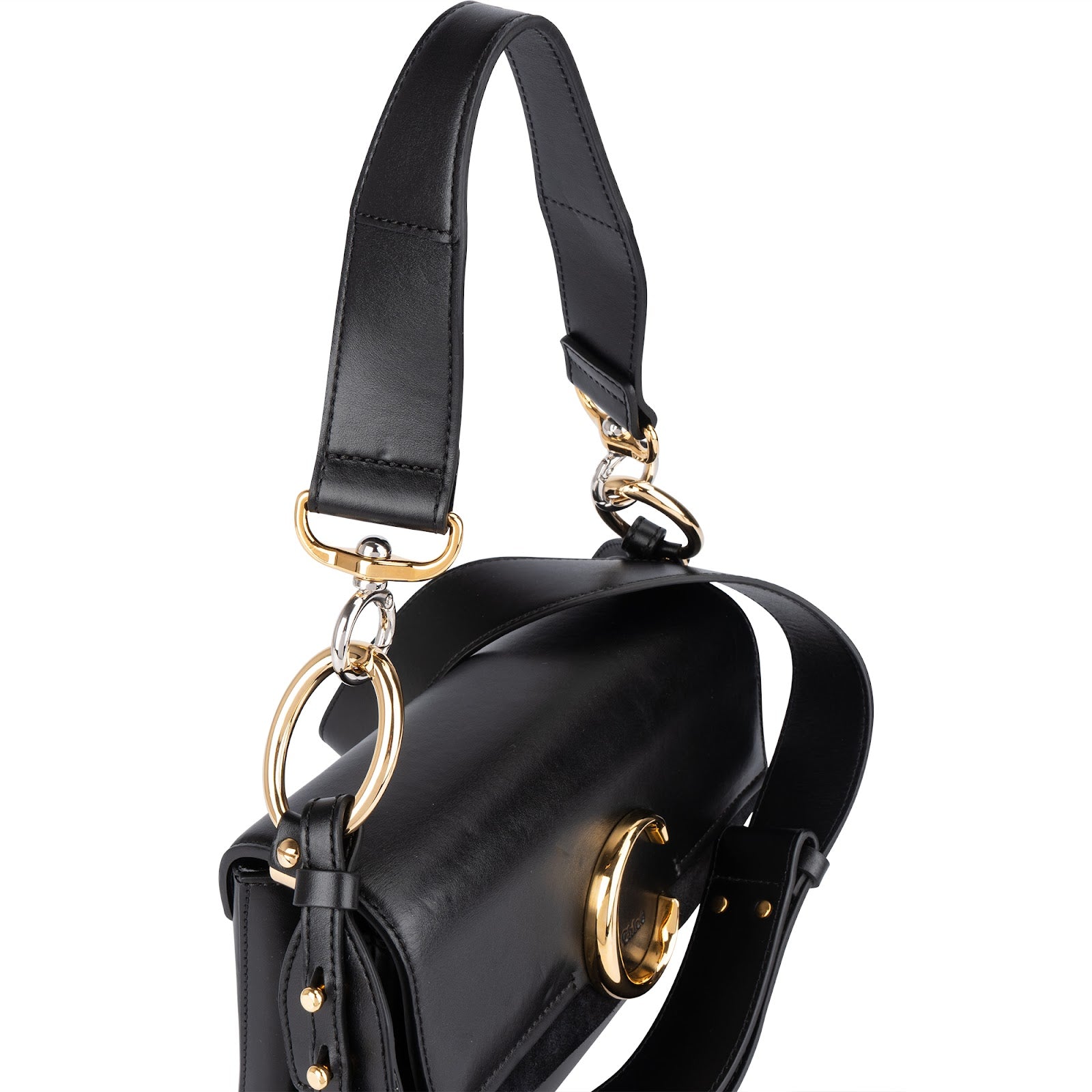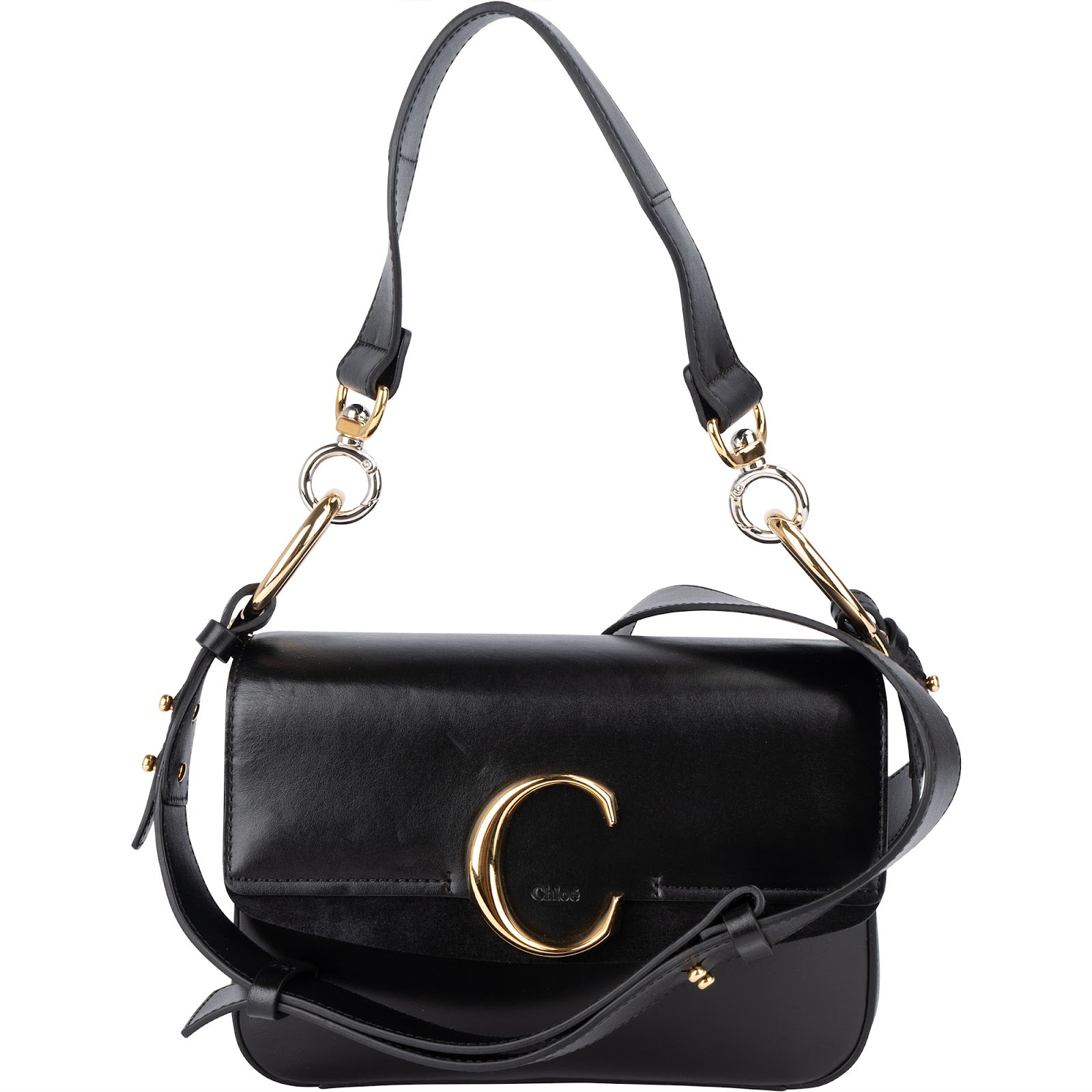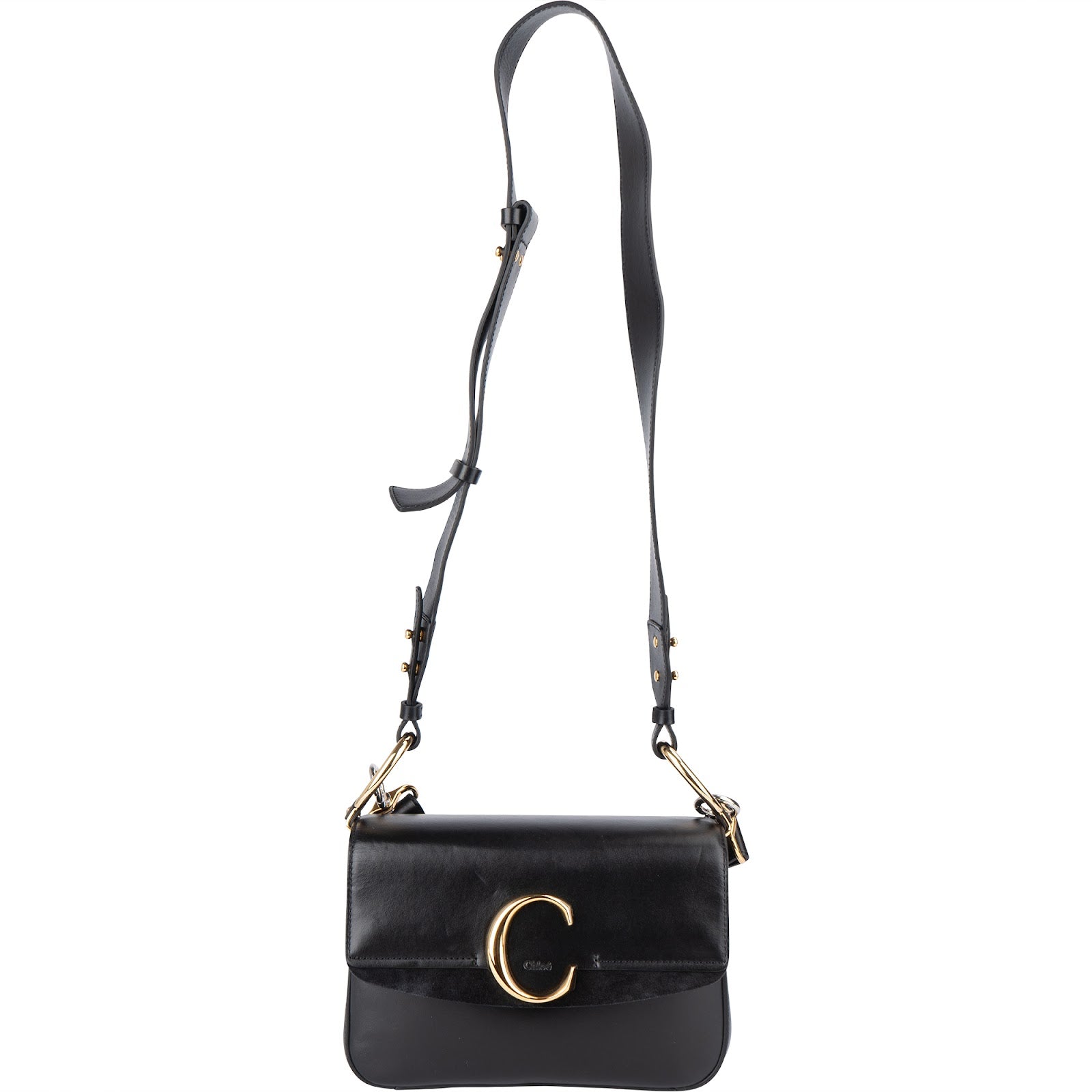 Chloé Black Leather and Suede C Crossbody Bag