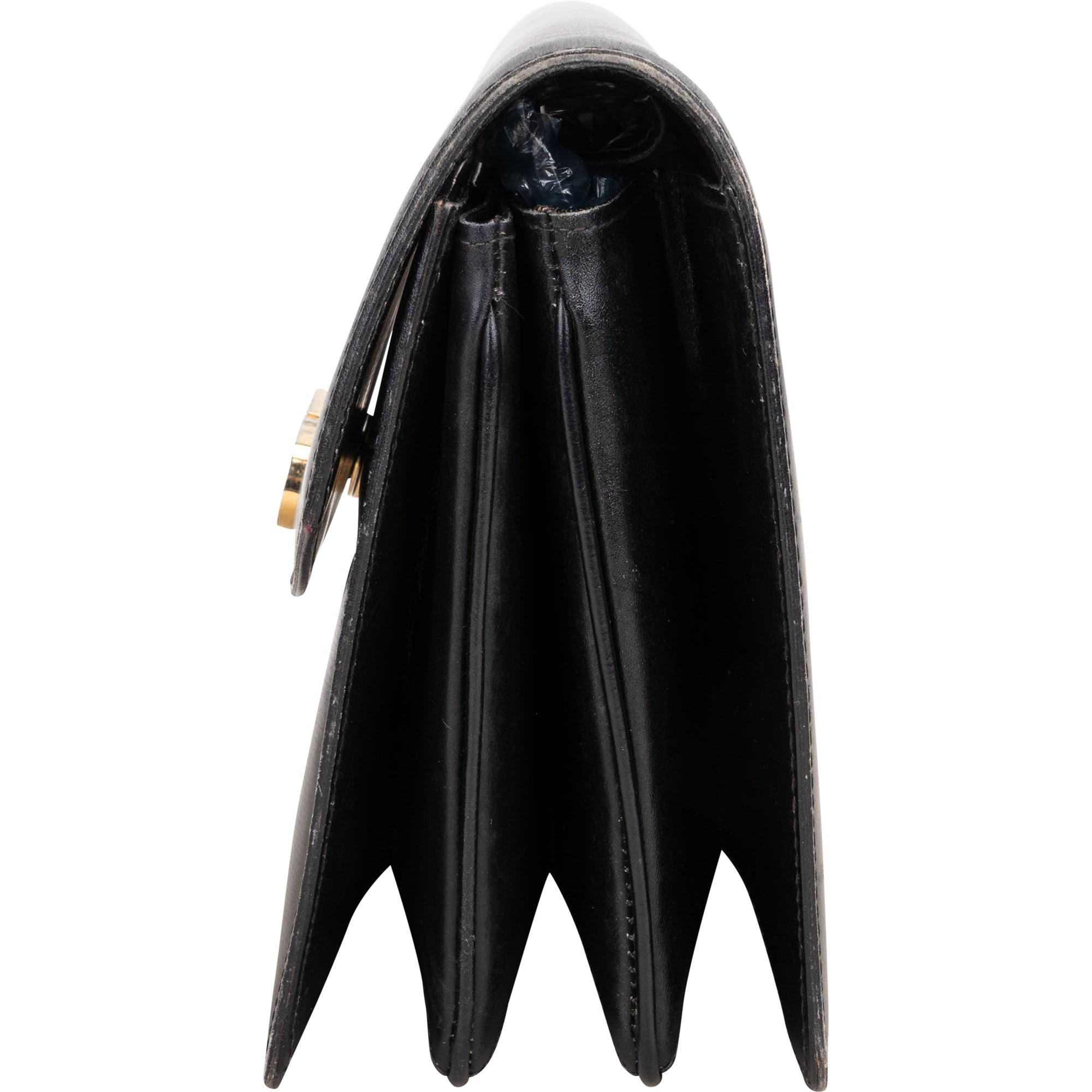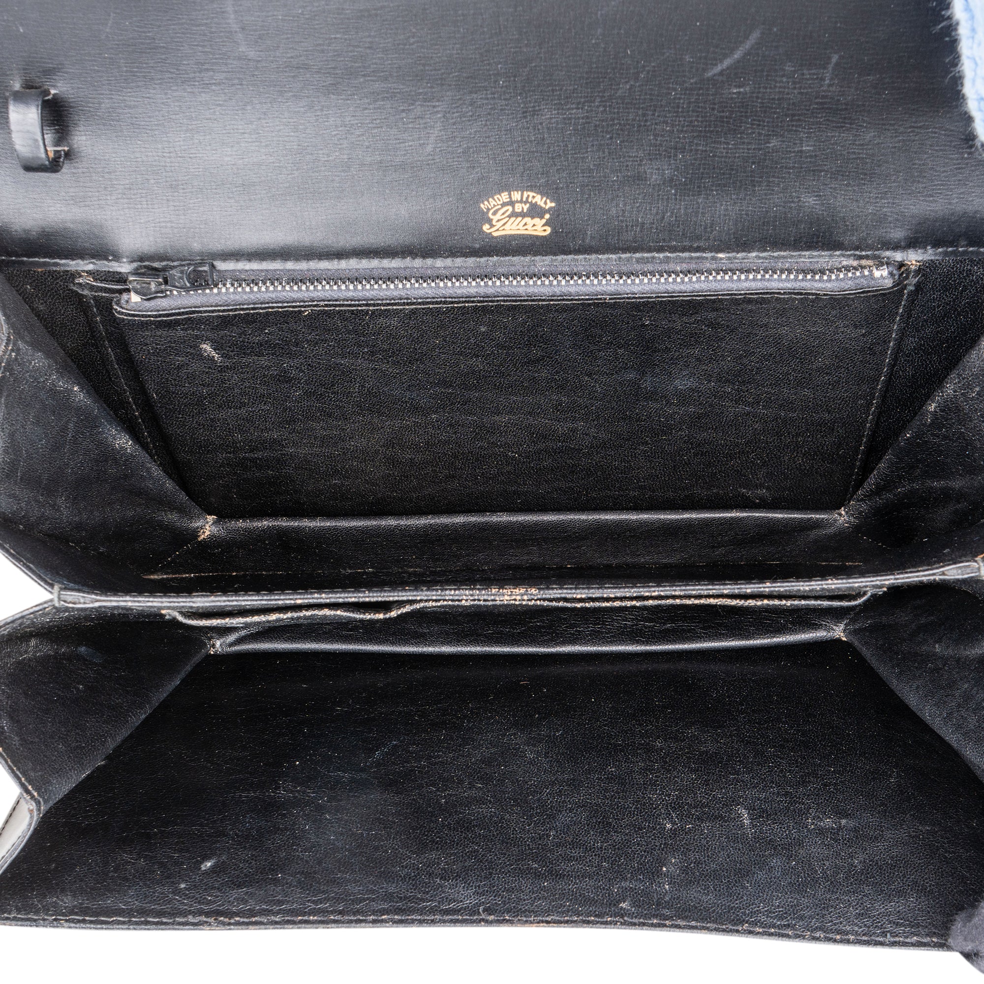Zustand innen: Leder mit Abrieb und Kratzern, ein Träger innen gerissen, Verschluss auf Magnet erneuert