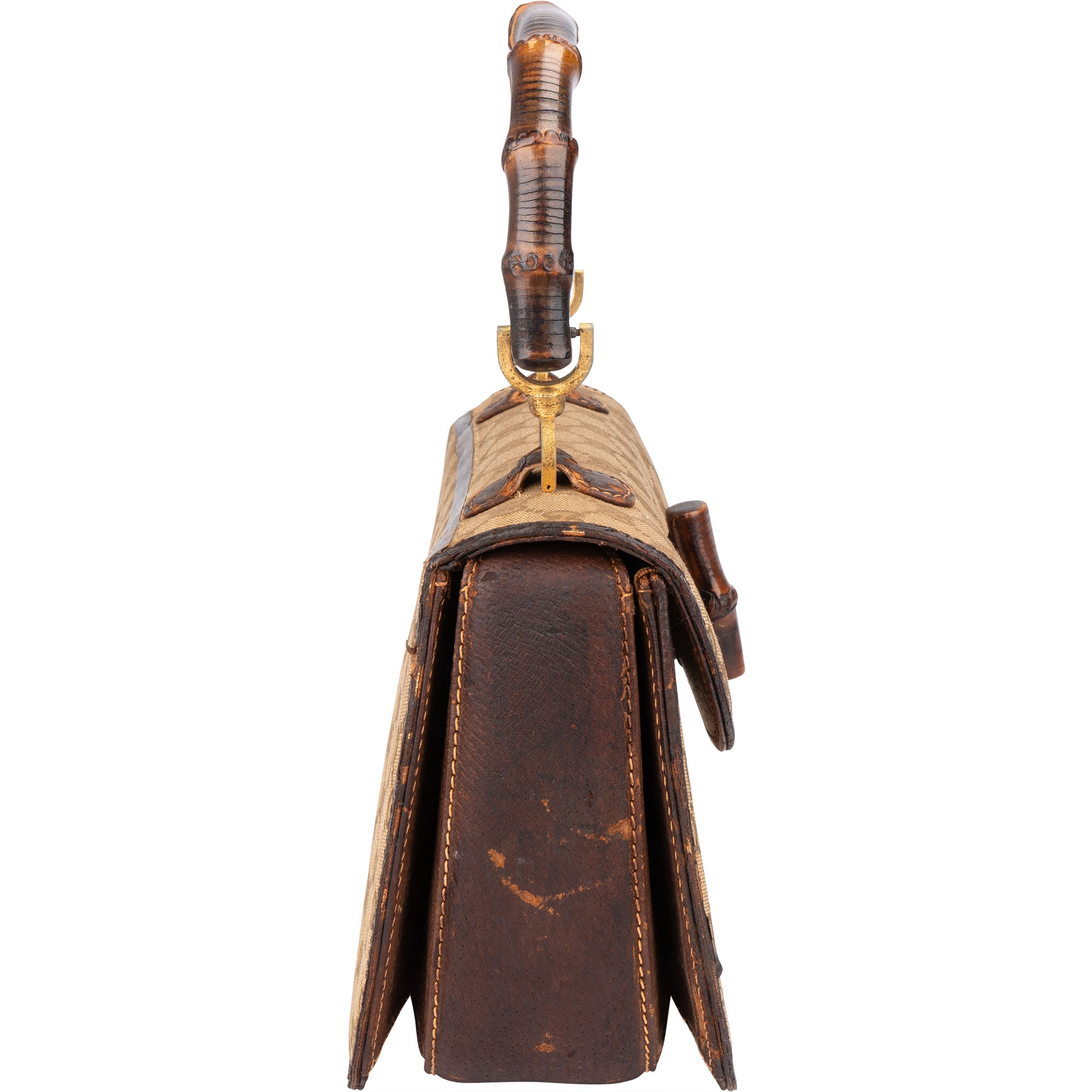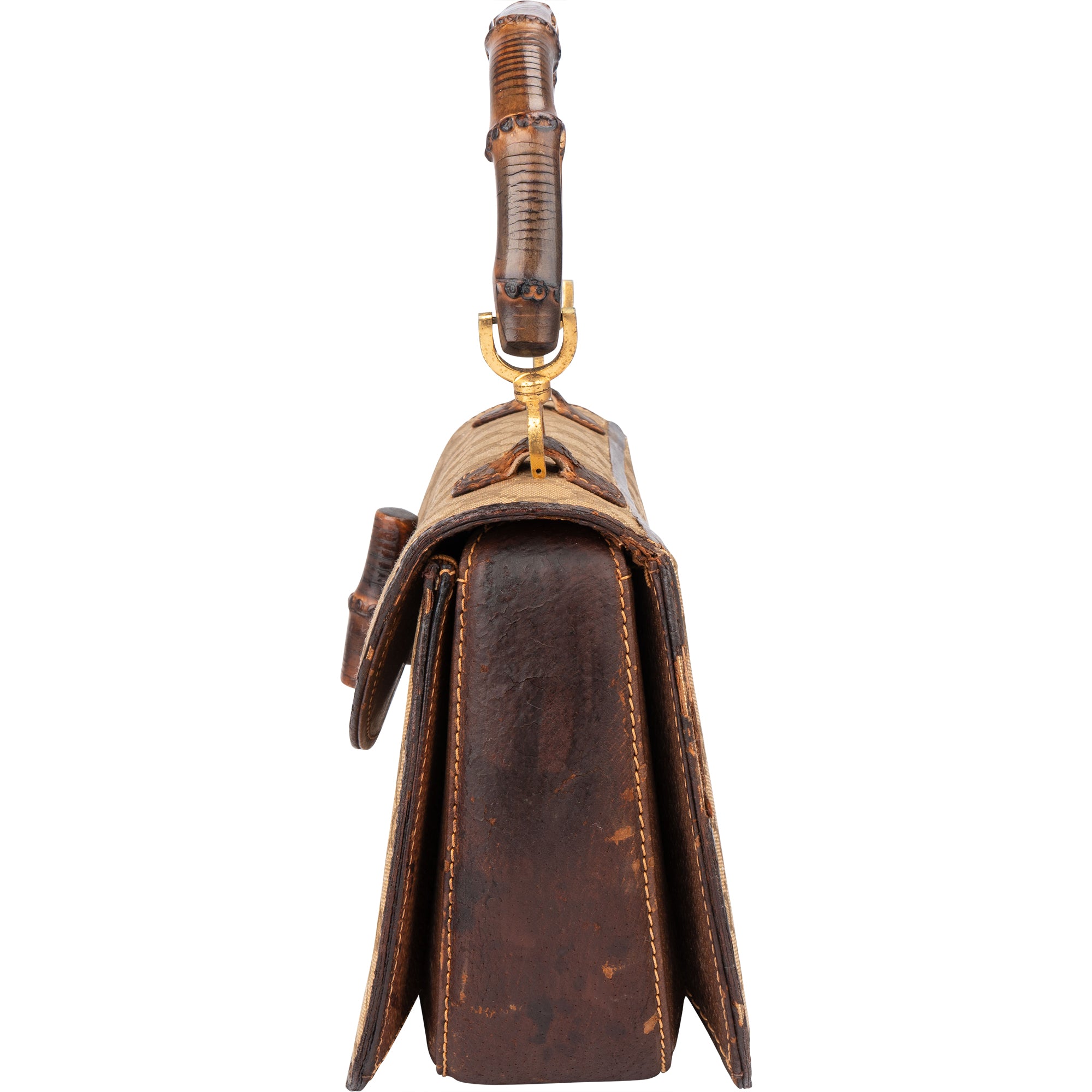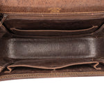 Zustand außen: fair - Abrieb und Makel am Material, Leder brüchig