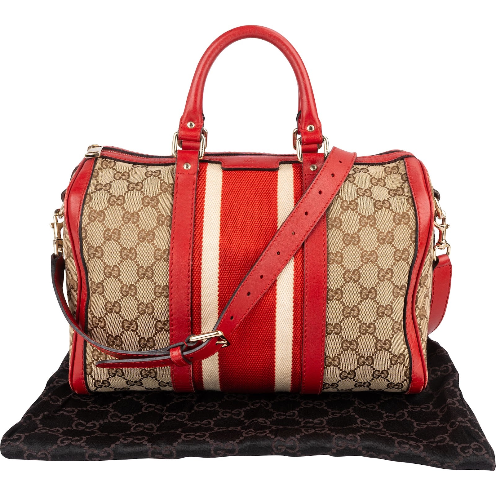 Gucci Monogram GG Canvas Vintage Web Boston Handbag