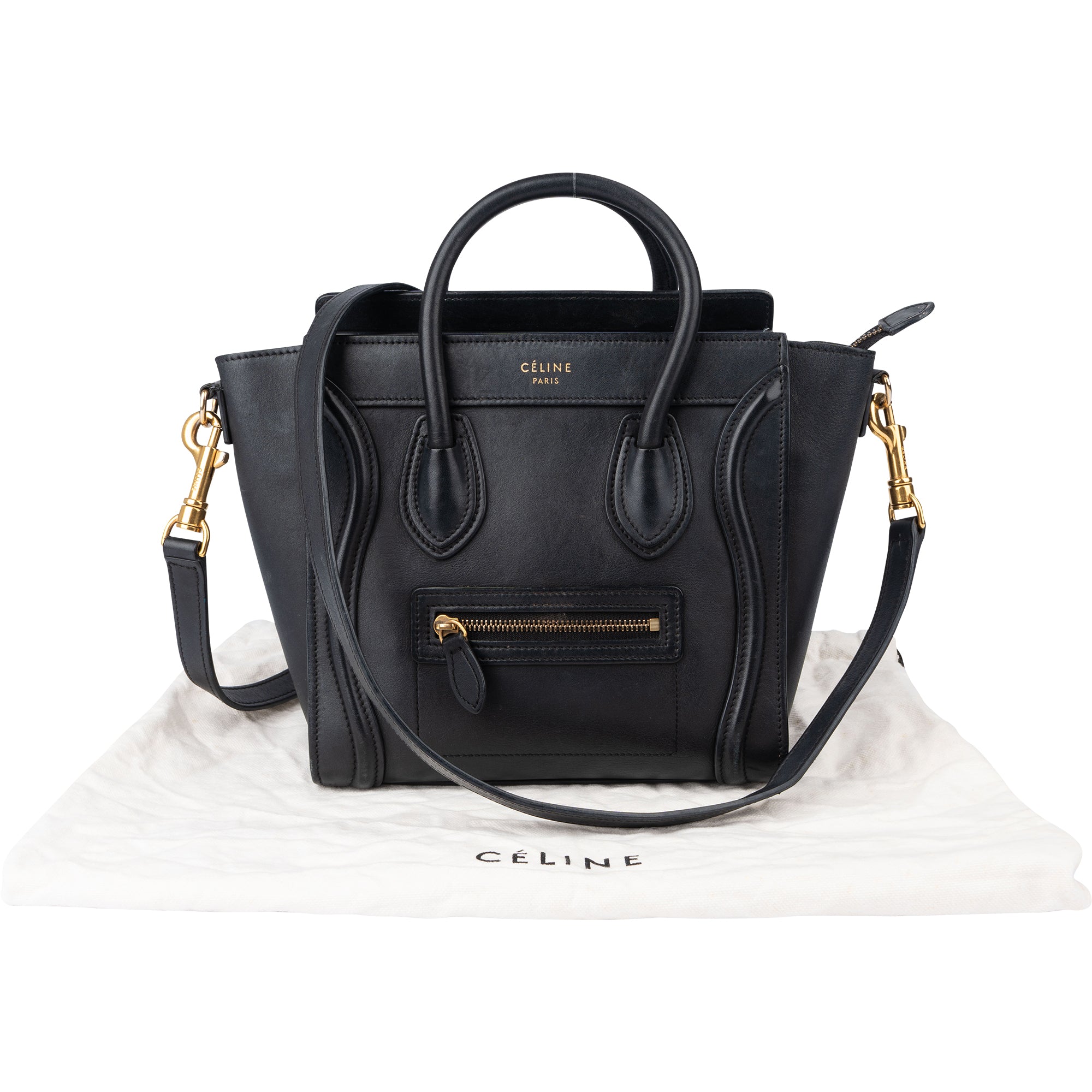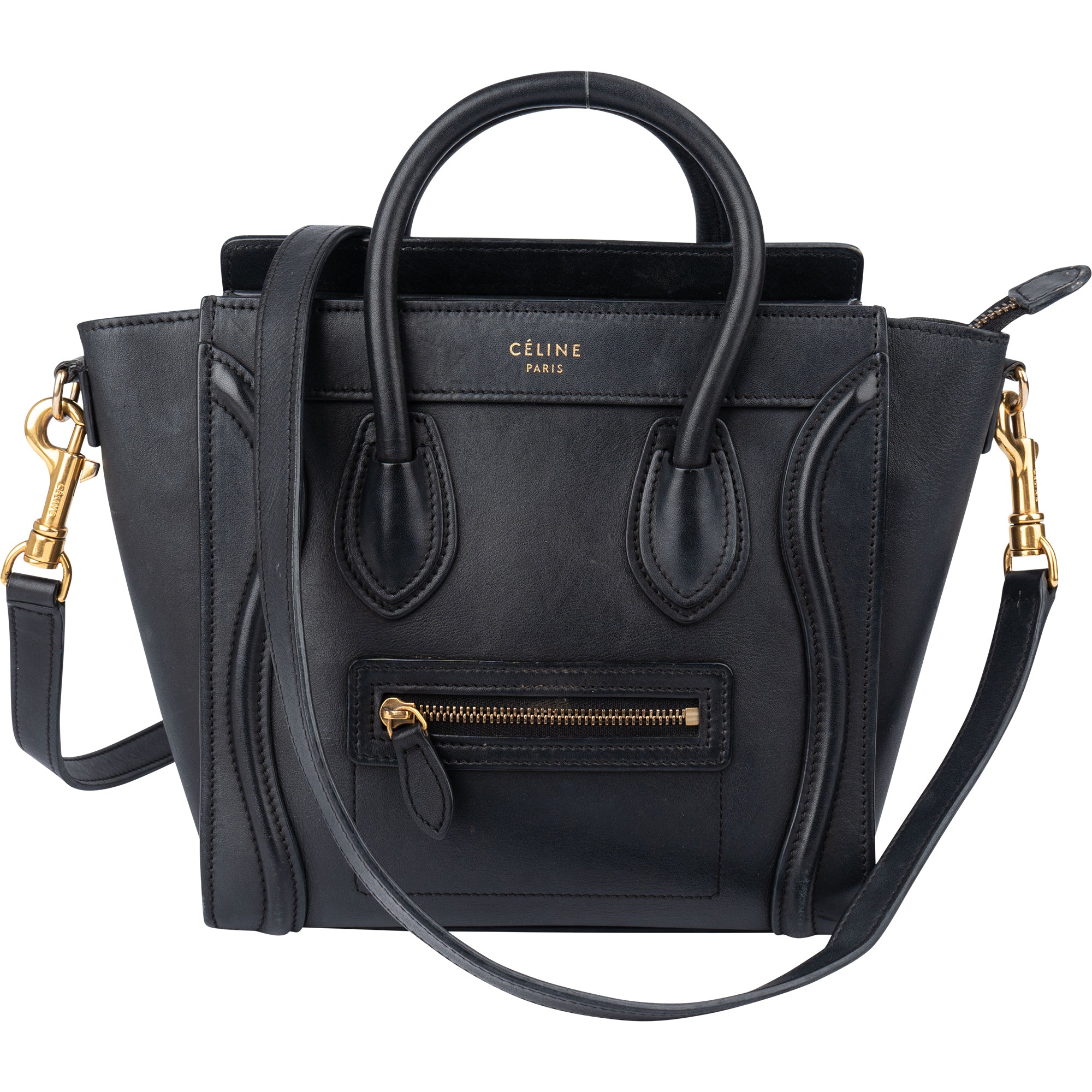 Céline Black Leather Luggage Handbag