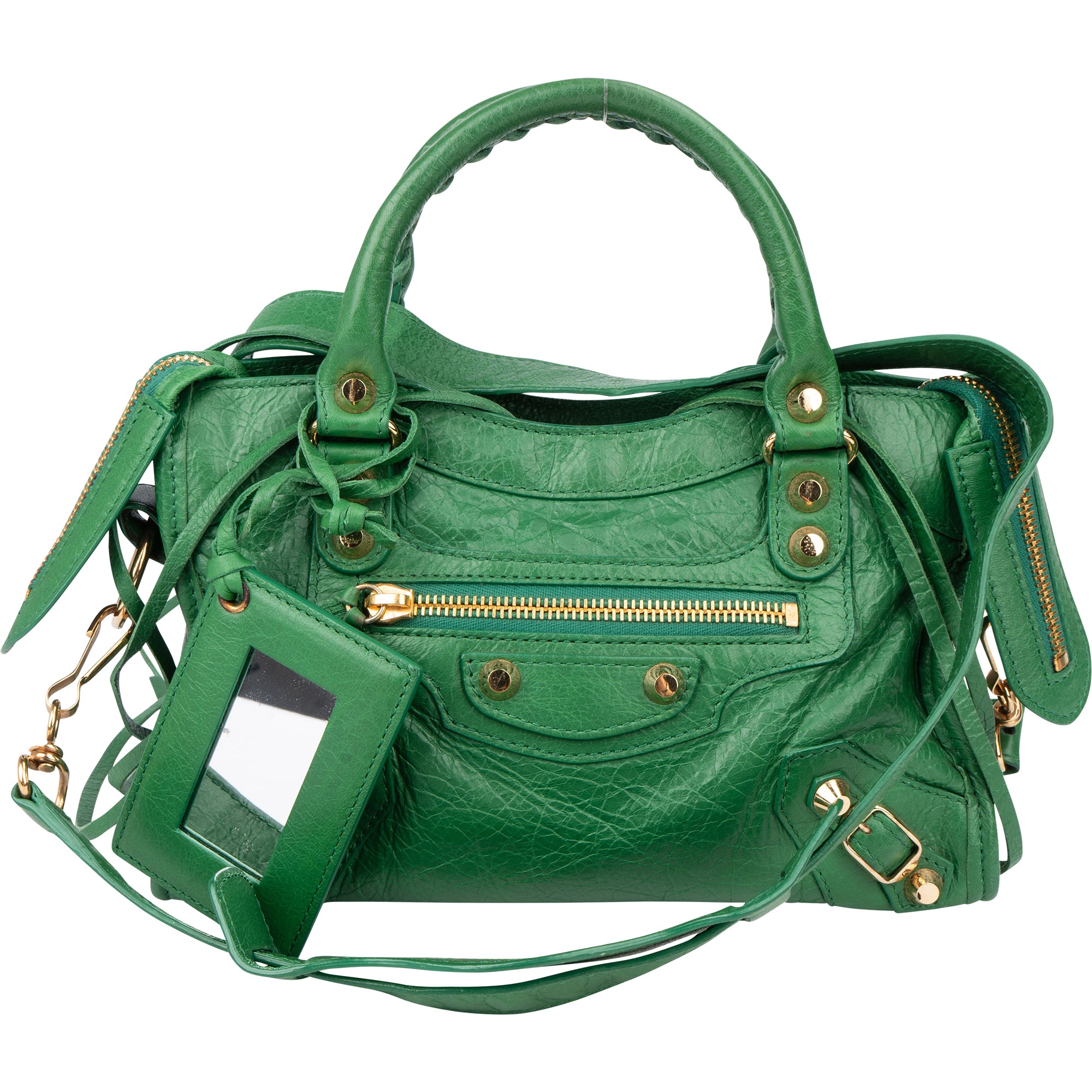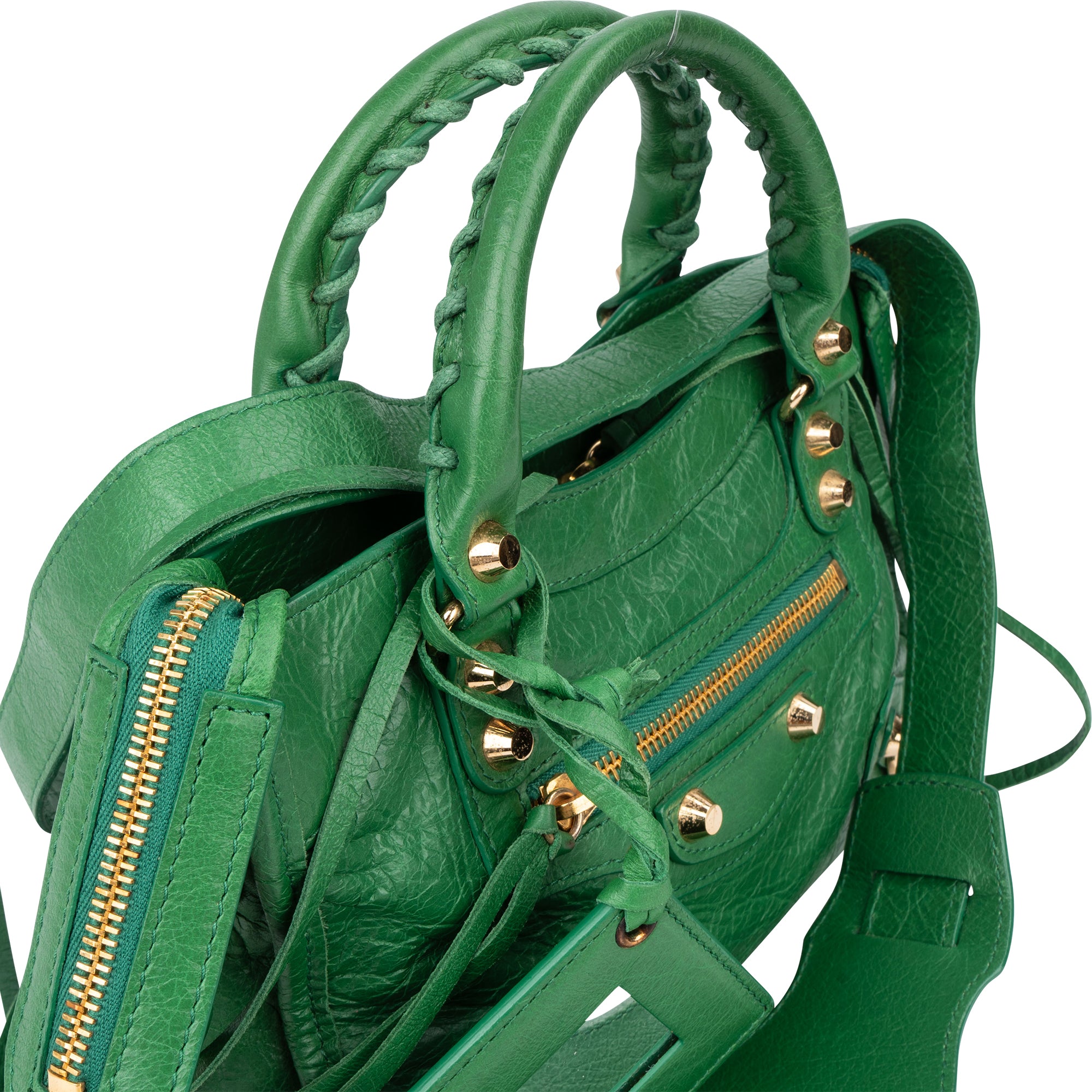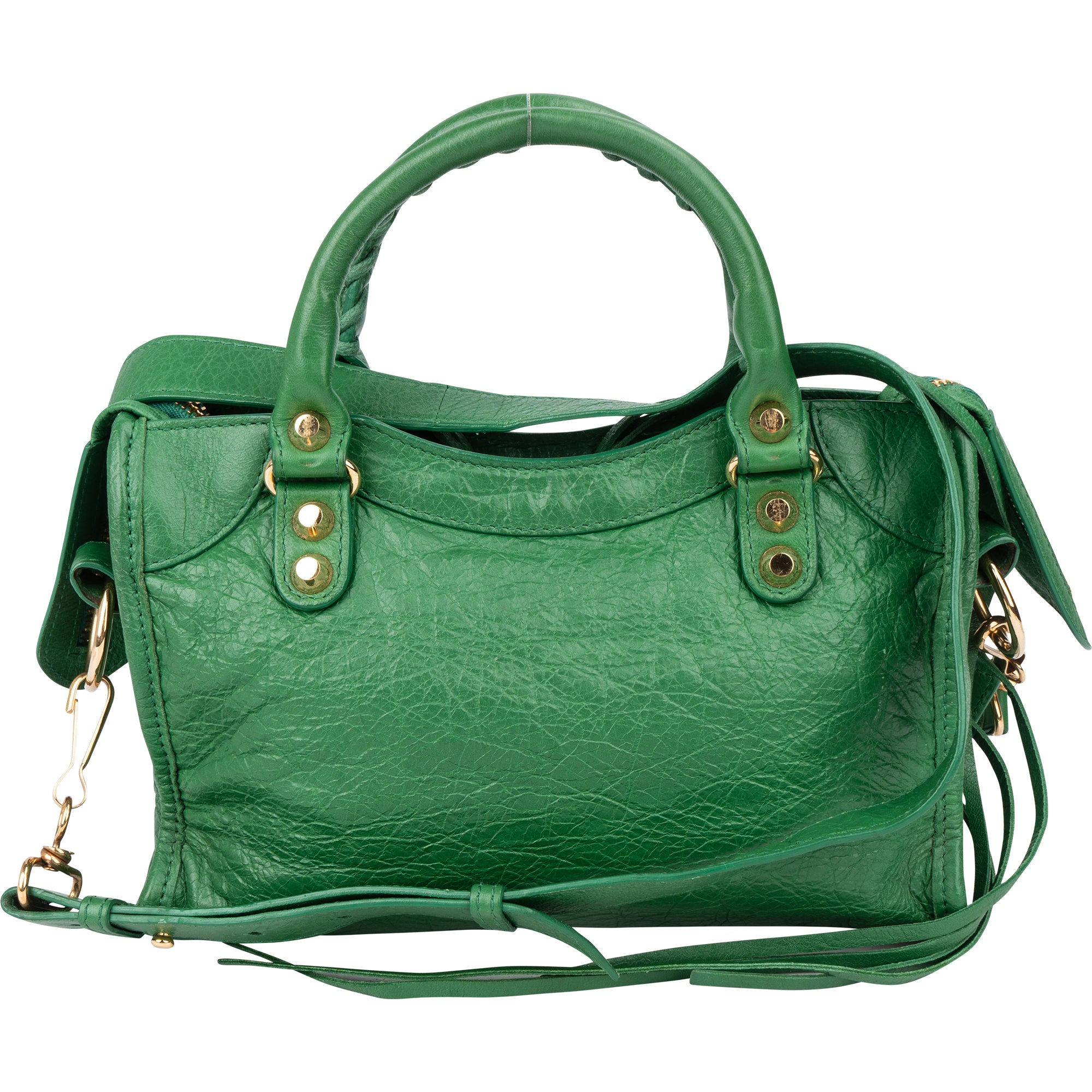 Balenciaga Green Leather Mini City Handbag
