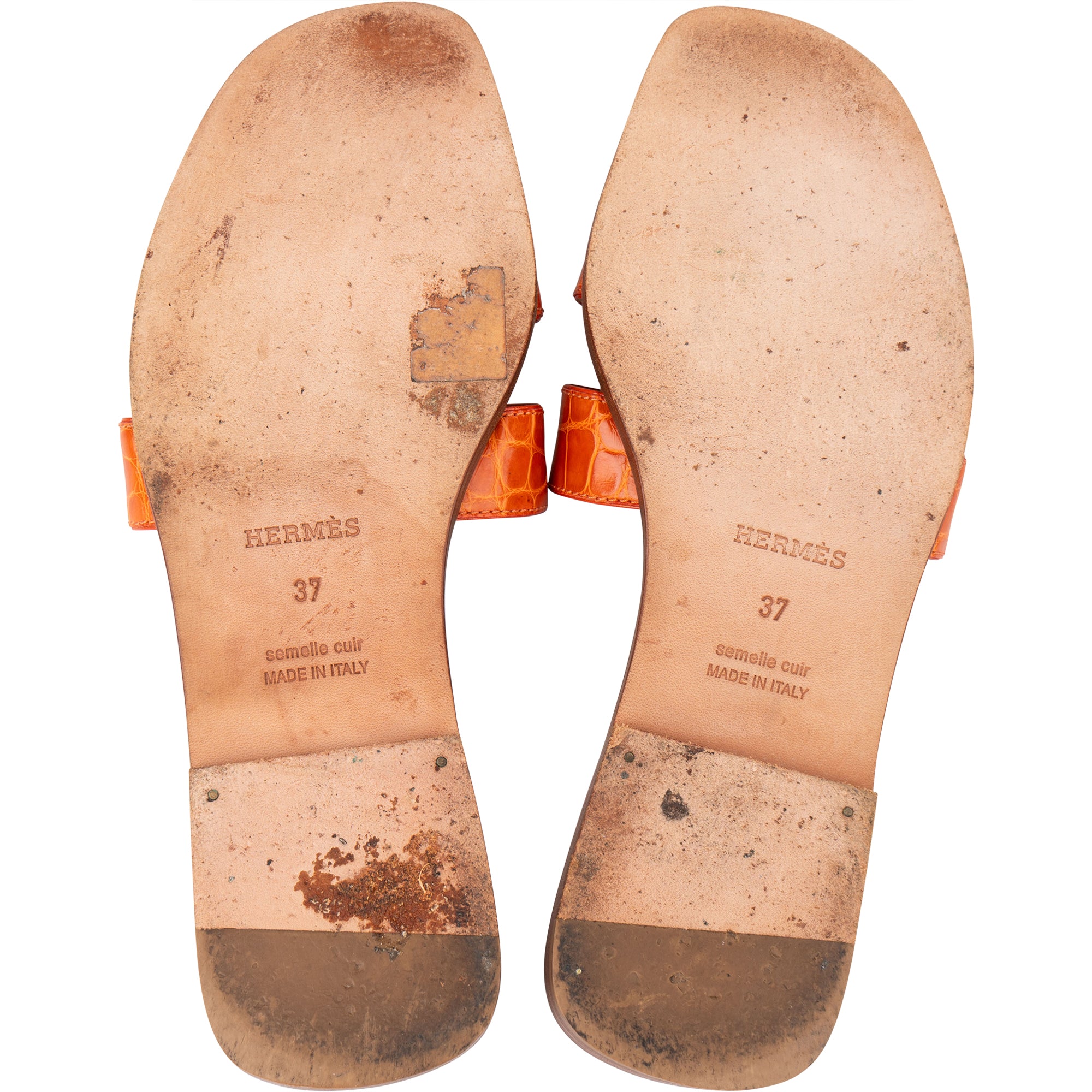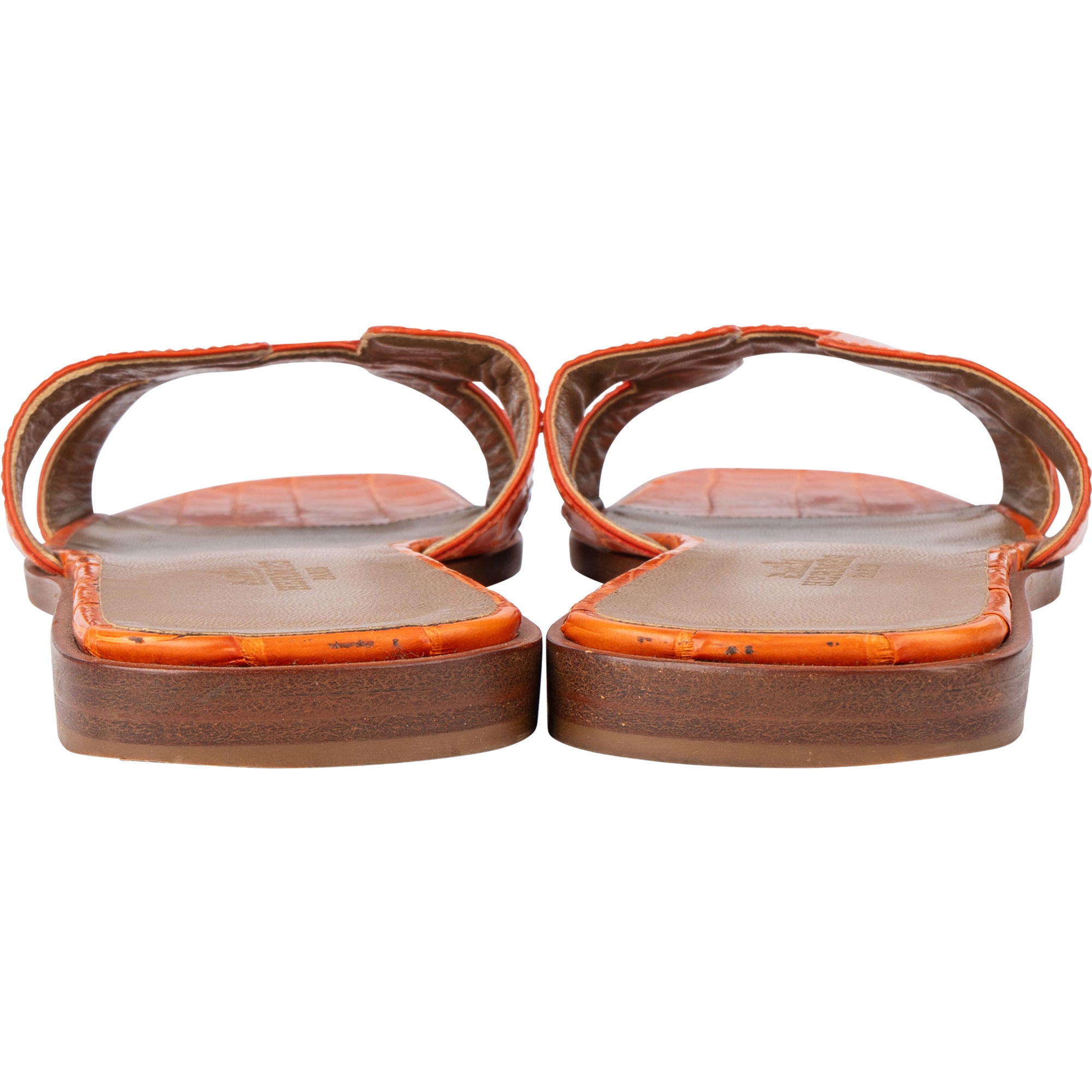 Hermès Orange Exotic Crocodile Leather Oran Sandals (37)