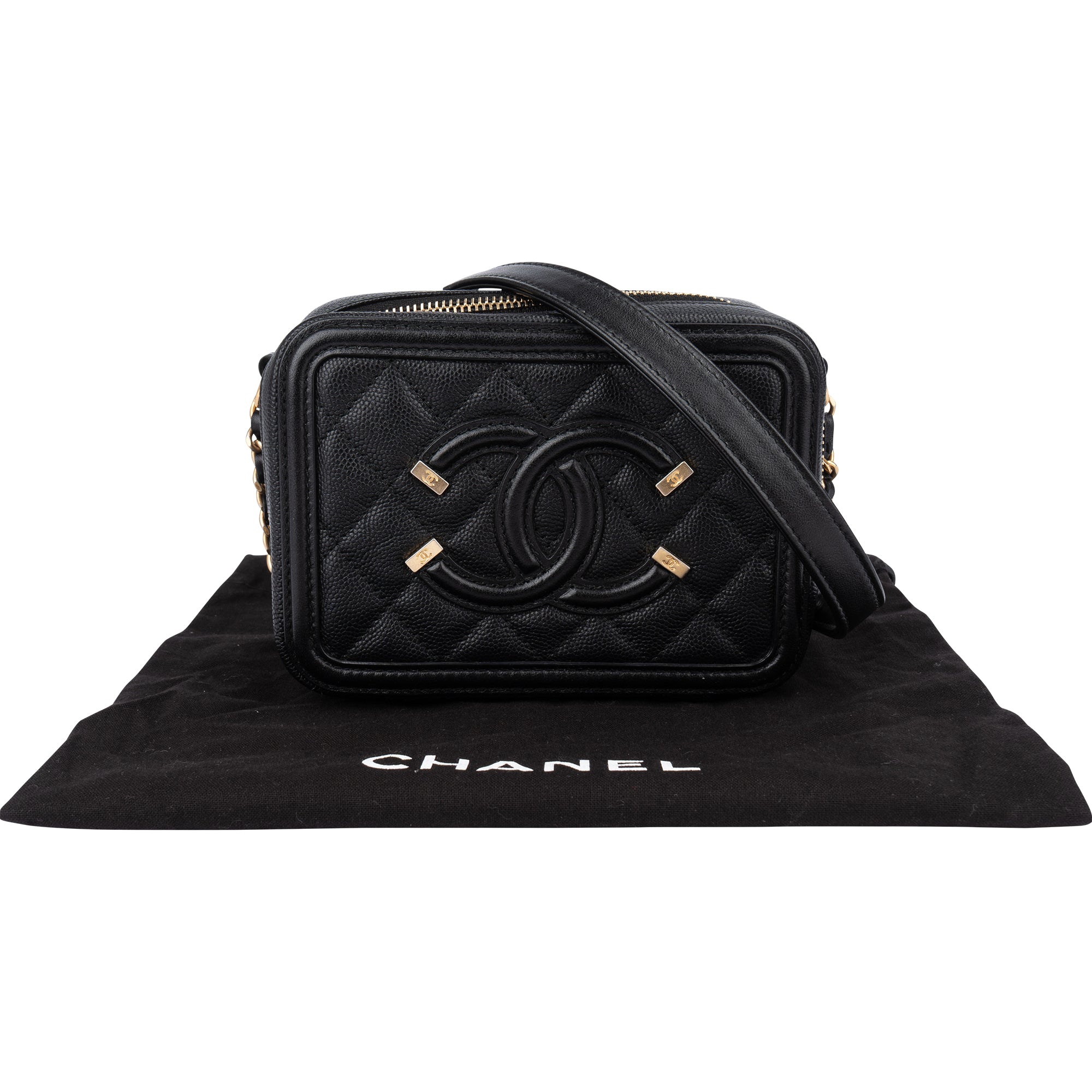 Chanel Quilted Caviar Leather CC Filigree Crossbody Bag