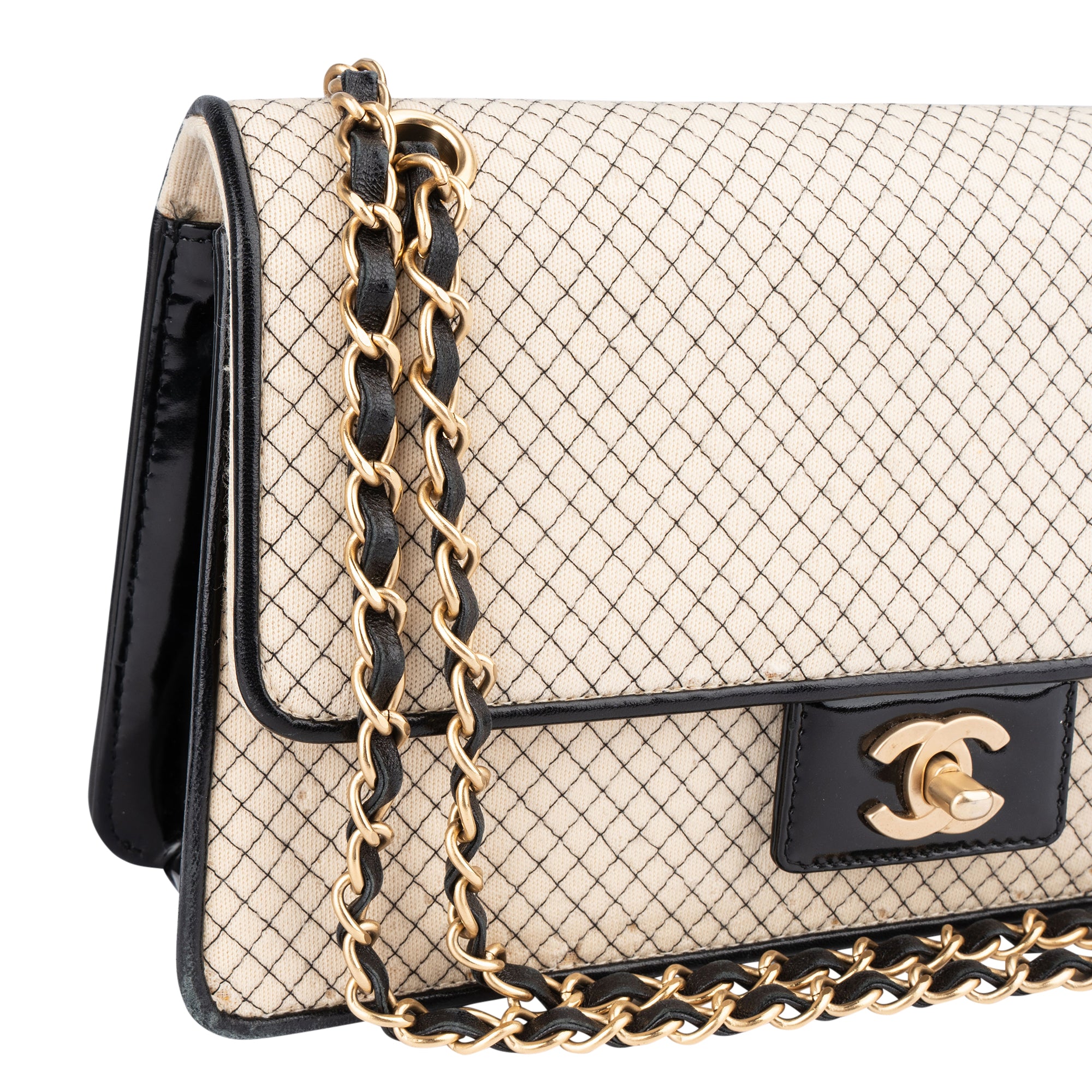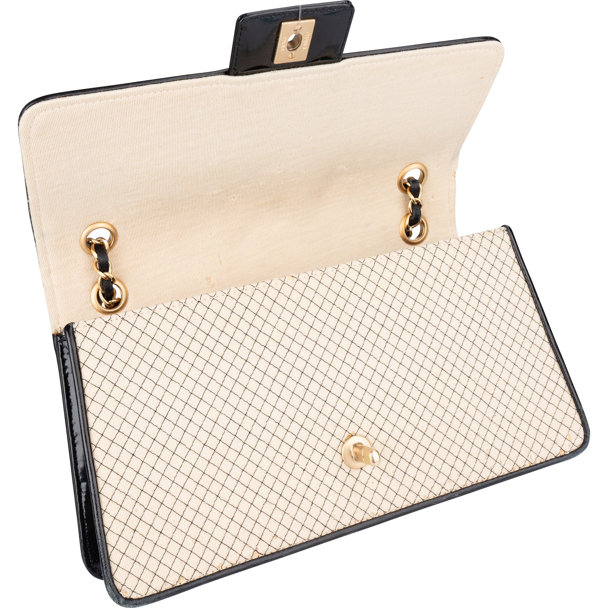 Material: Stoff, Lackleder, goldene Hardware
