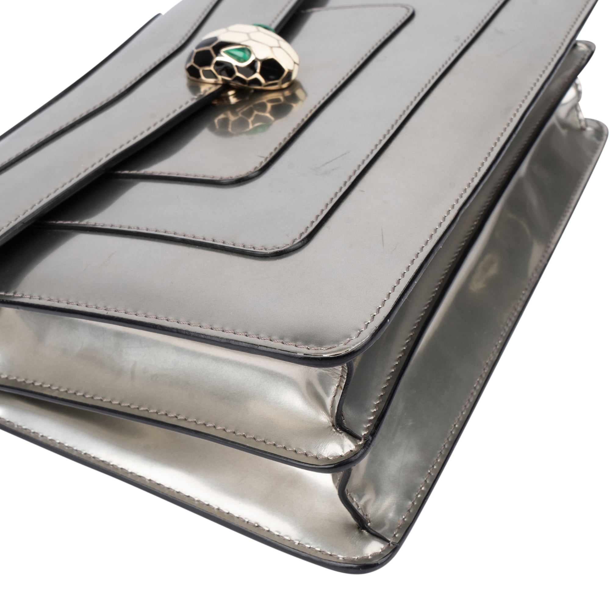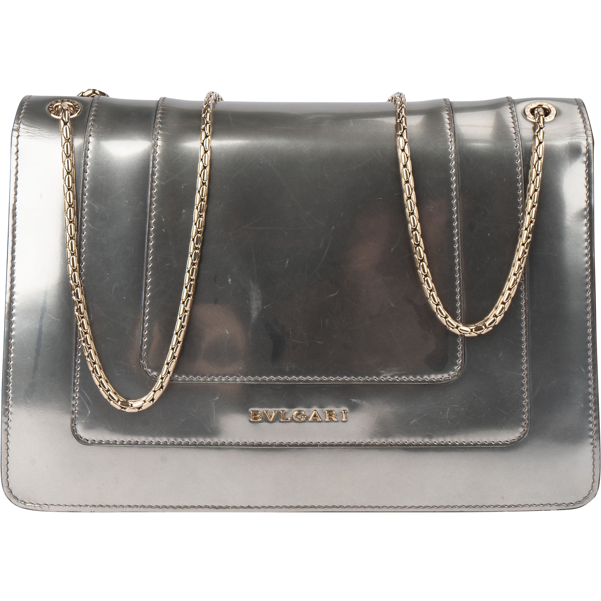 Bvlgari Silver Patent Serpenti Forever Shoulder Bag