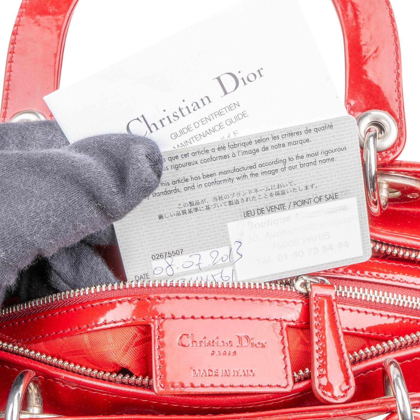 Christian Dior Quilted Patent Leather Lady Dior Handbag