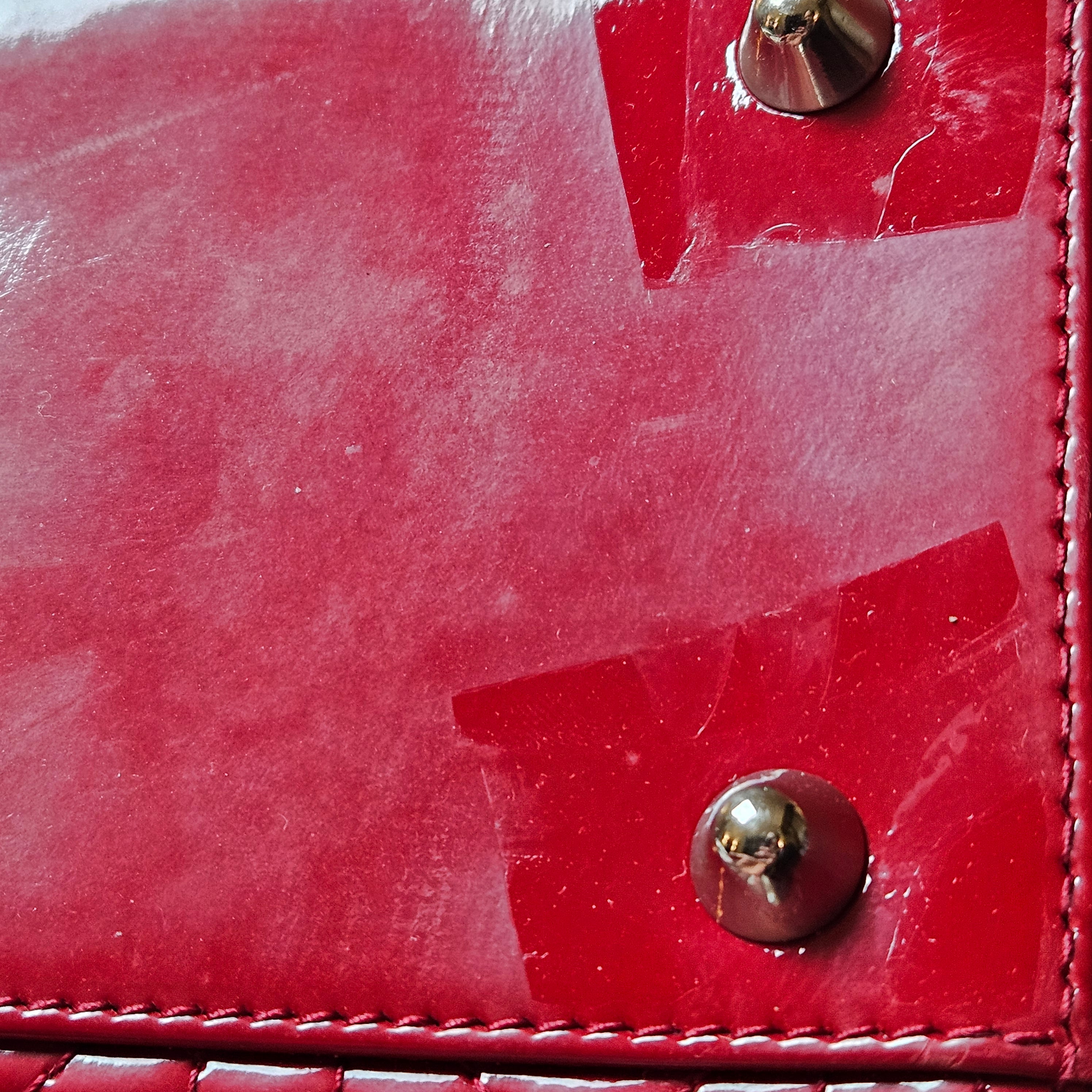 Zustand außen: sehr gut - Lackleder mit Kratzern und Flecken