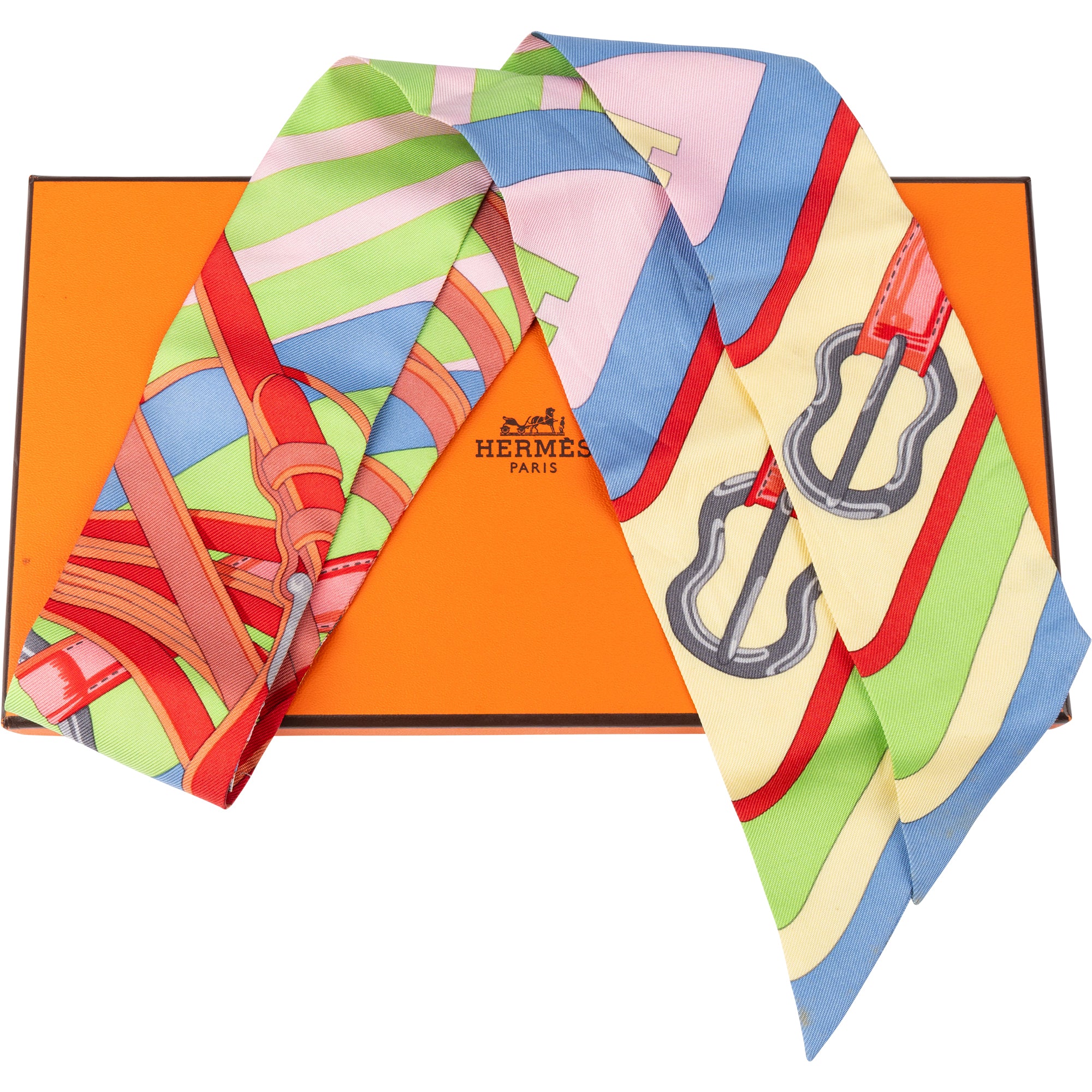 Hermès Multicolor Coaching Belt Silk Twilly Scarf Tuch
