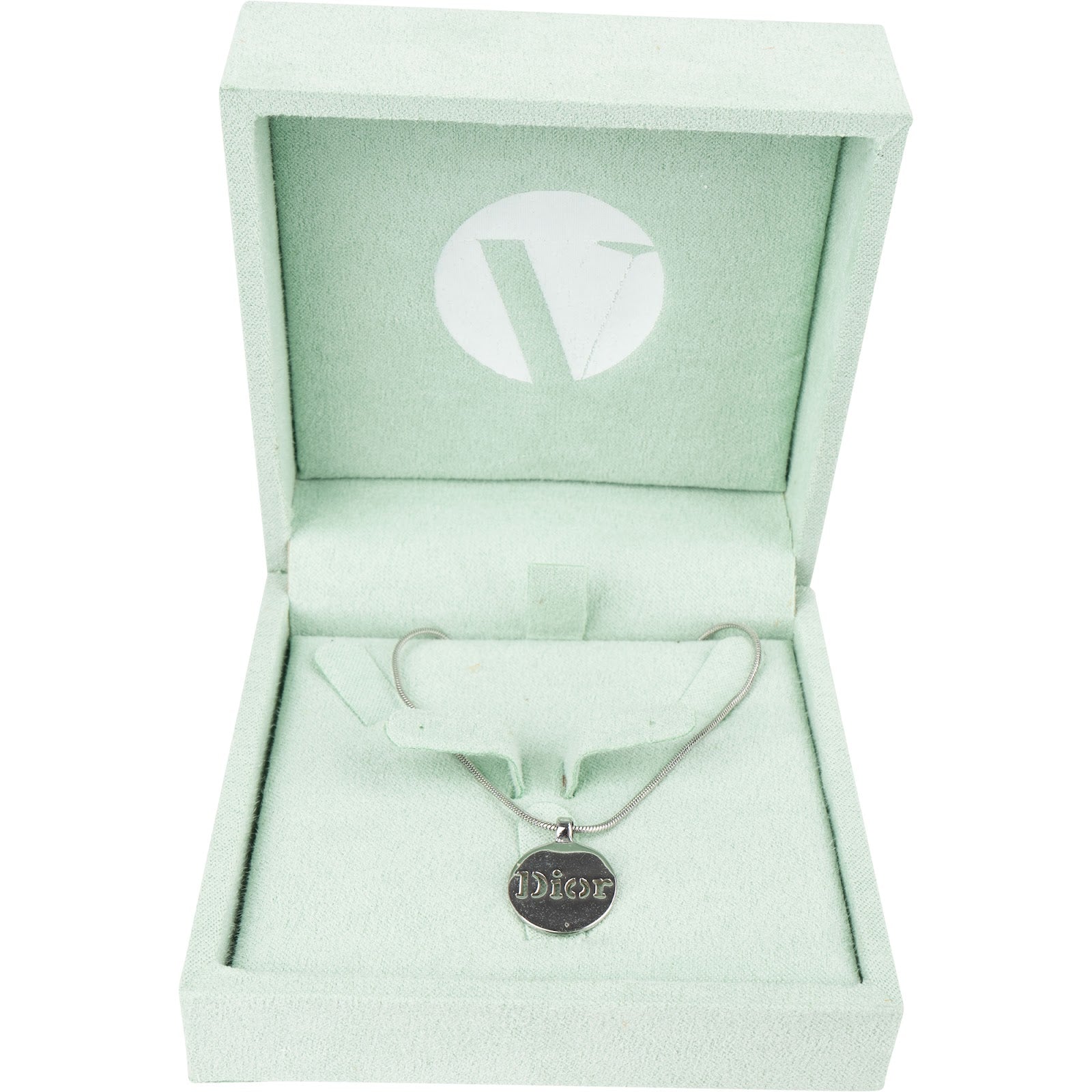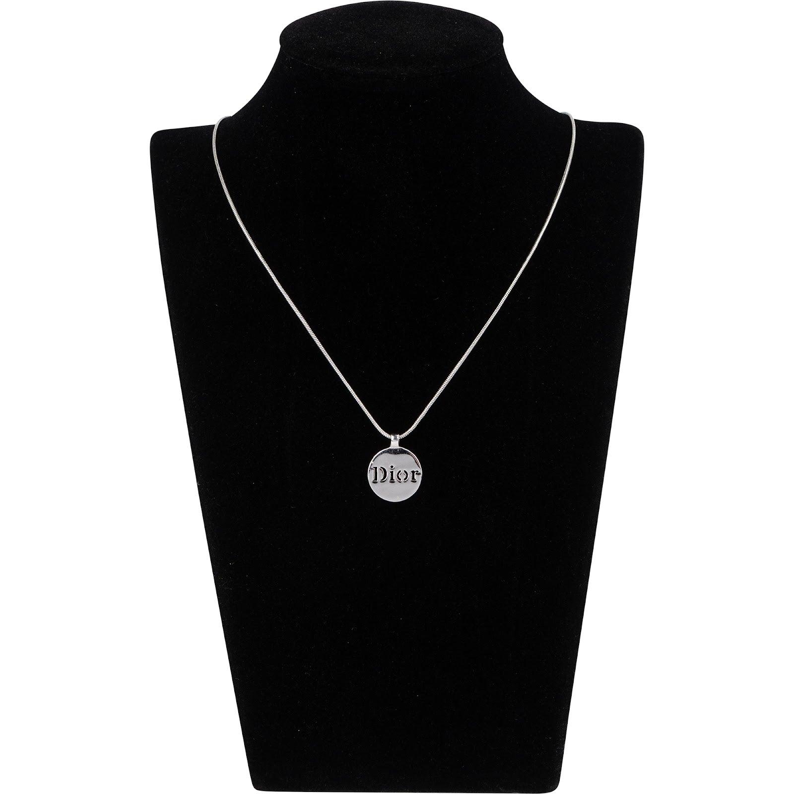 Christian Dior Silver Tone Emblem Pendant Necklace