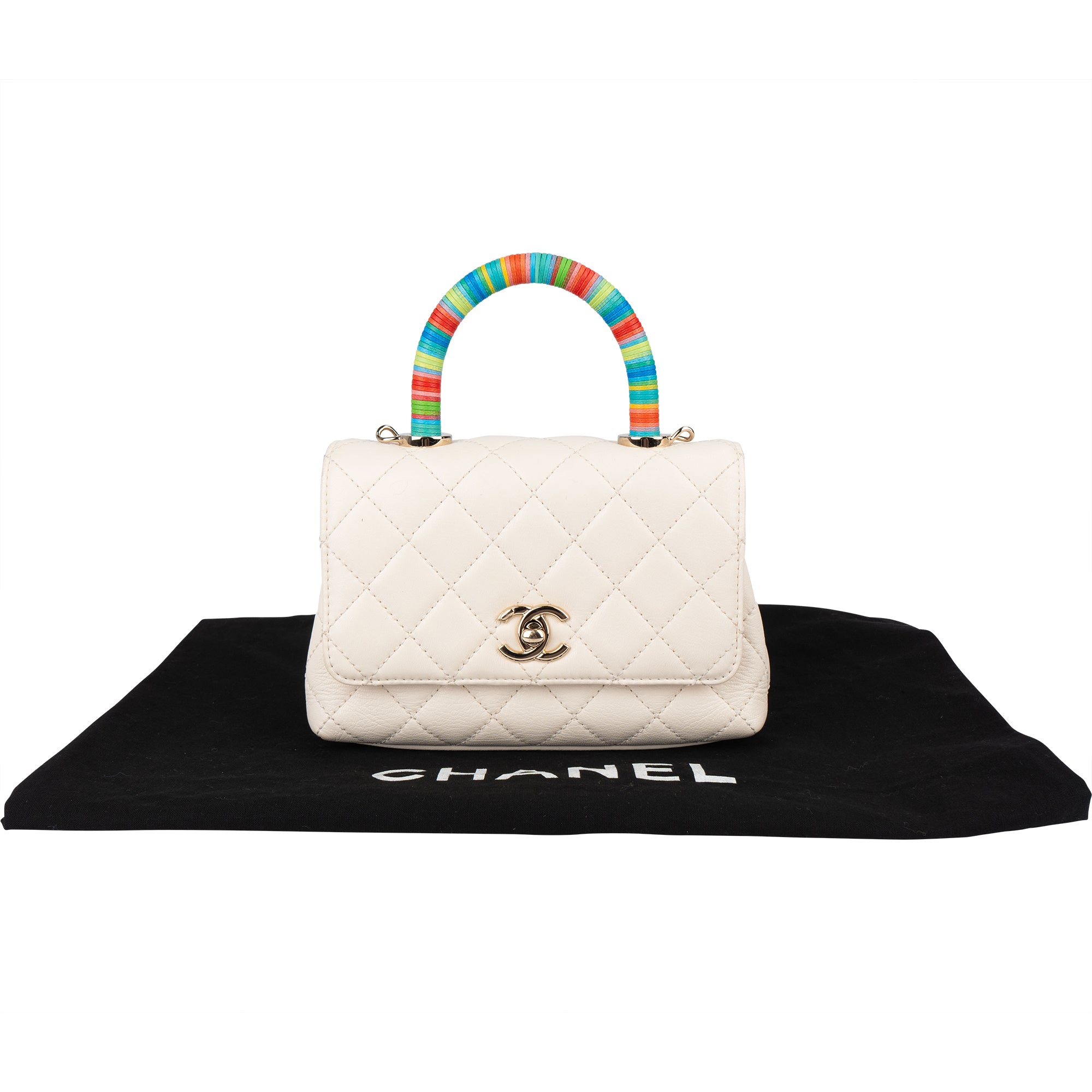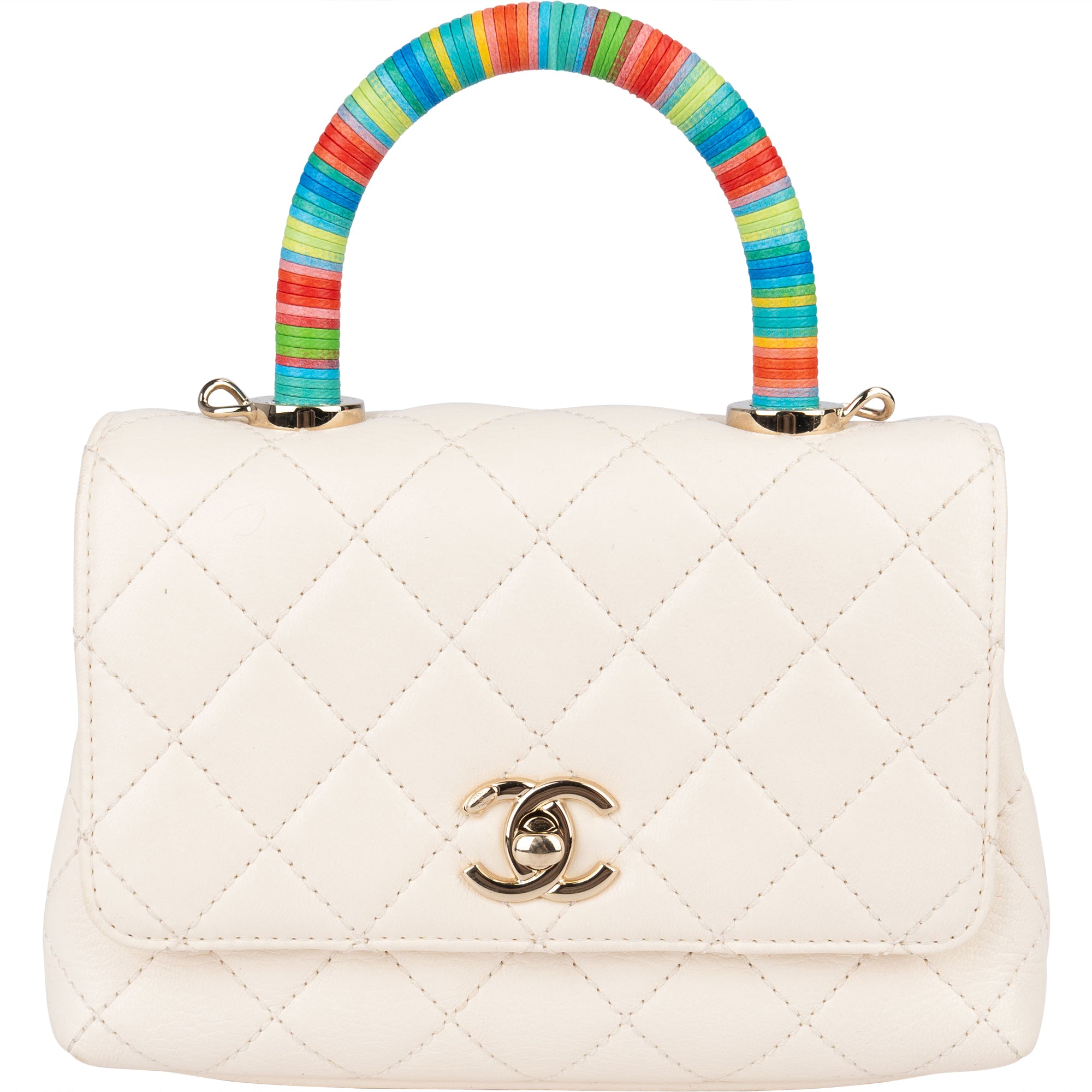 Chanel Quilted Coatskin Mini Rainbow Handle Flap Handbag