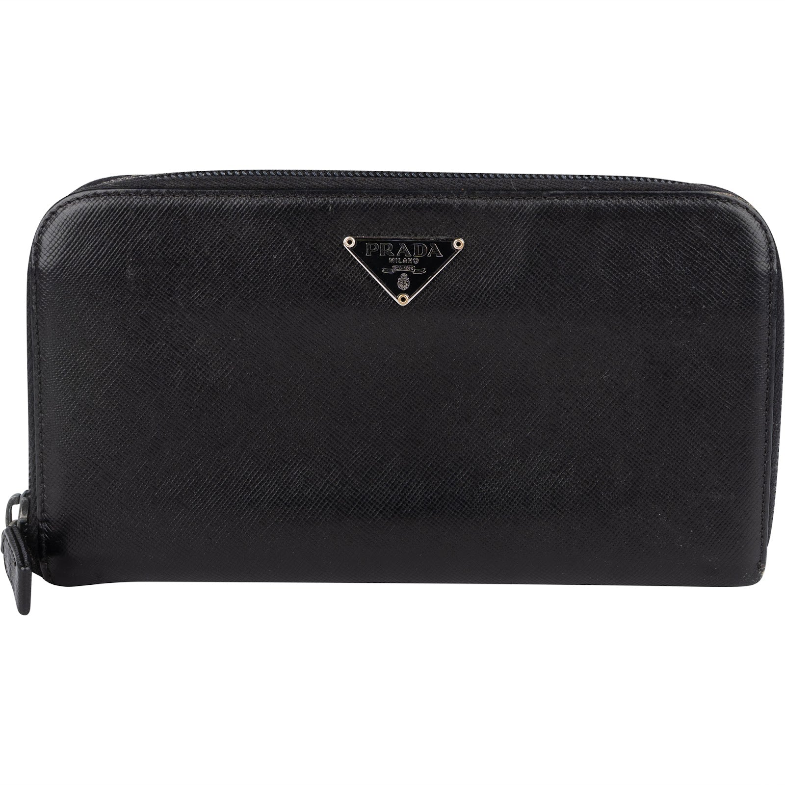 Prada Black Saffiano Leather Triangle Zip Around Wallet - vintageandkickz