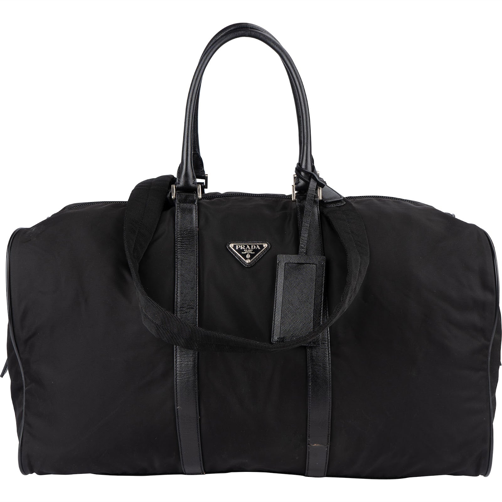 Prada Black Nylon Triangle Duffle Bag 55