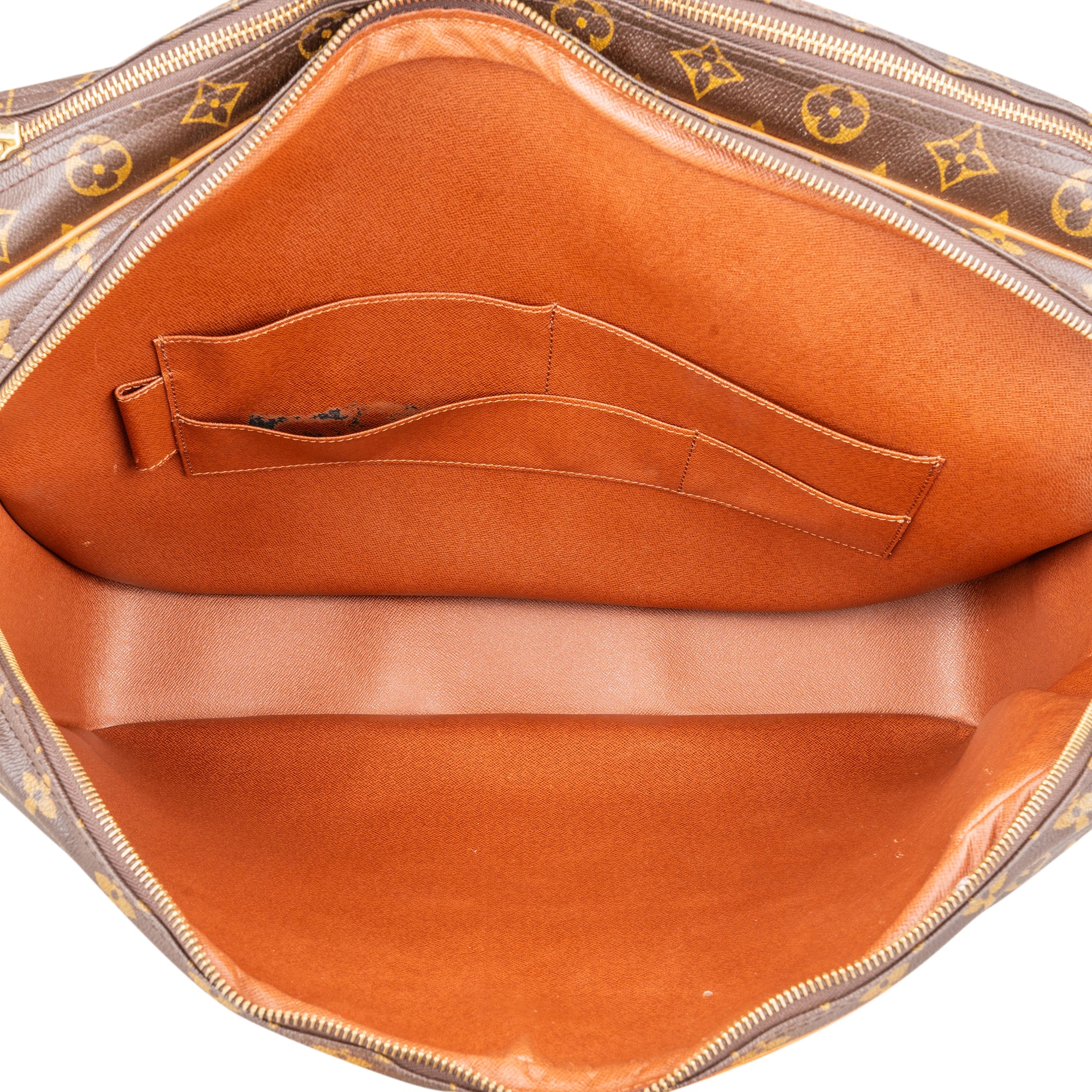 Zustand außen:sehr gut - Vachetta mit Abrieb und heller Patina, ein Reißverschluss an einer Seite schwergängig