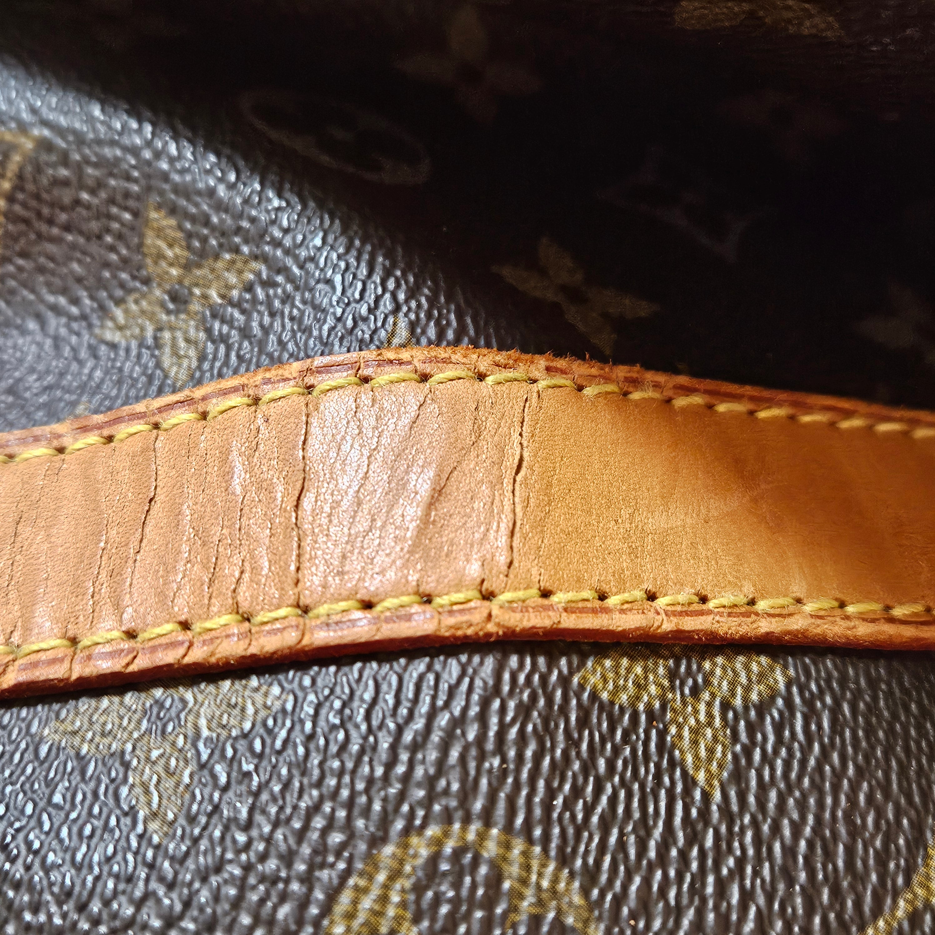 Zustand außen: gut - Vachetta mit Abrieb und Patina, Spannungsrisse am Leder