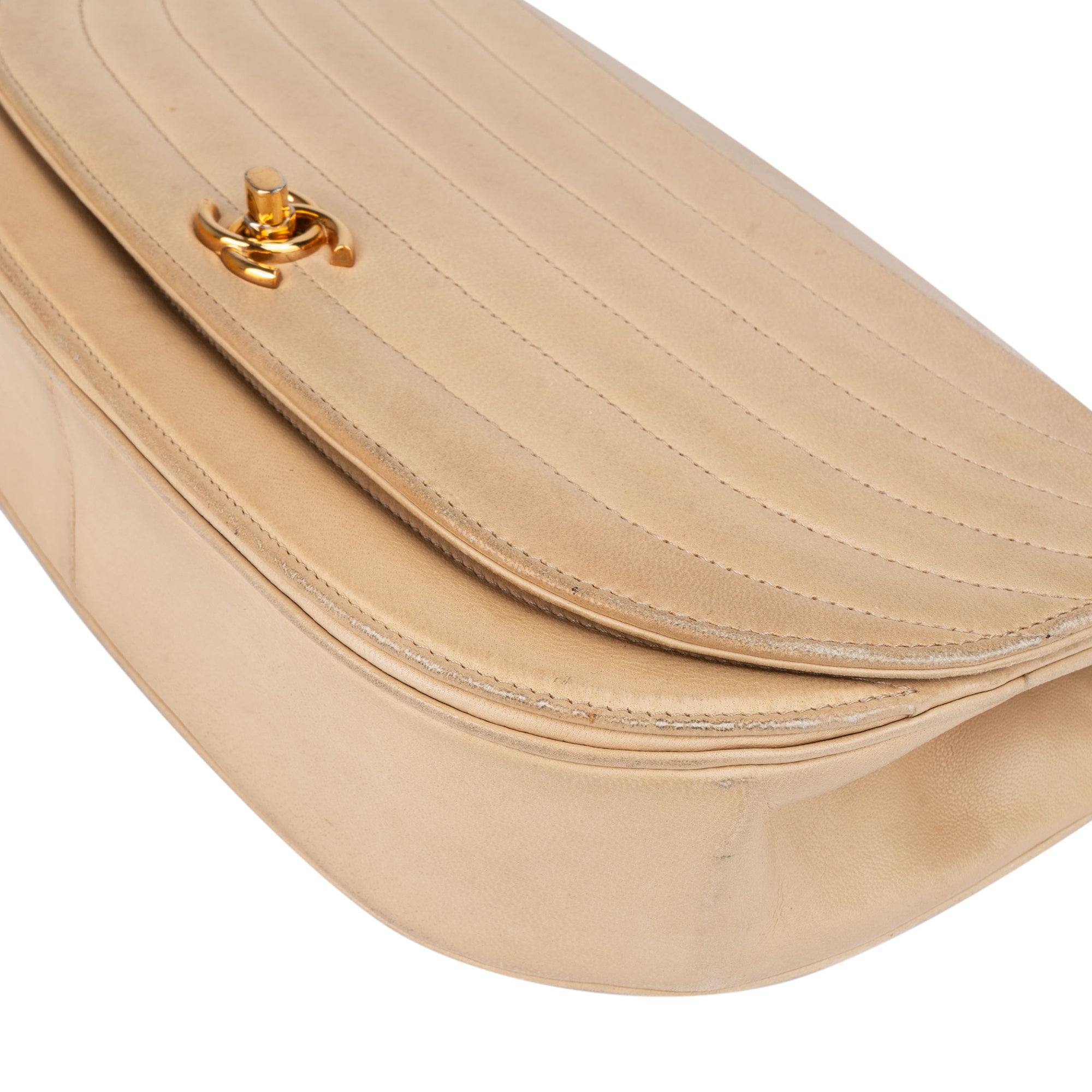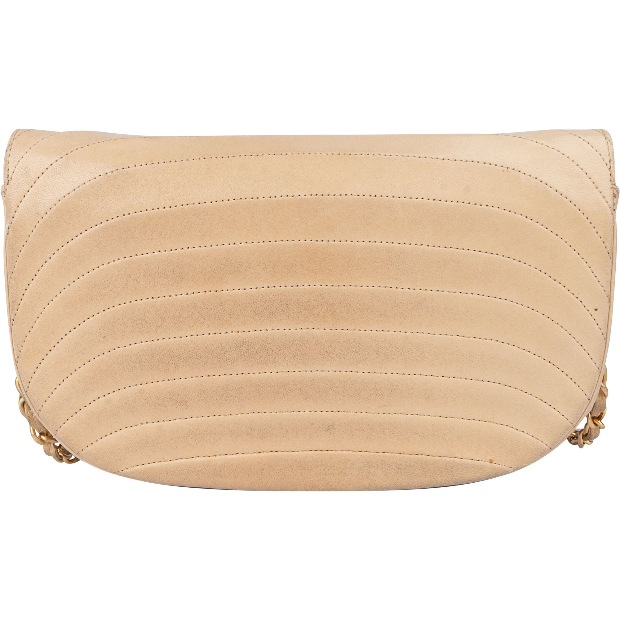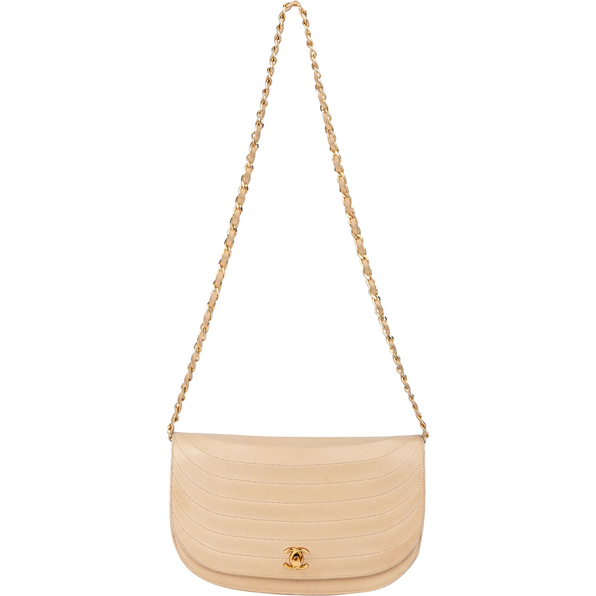Chanel Stitching Lambskin 24K Gold Halfmoon Single Flap Shoulder Bag