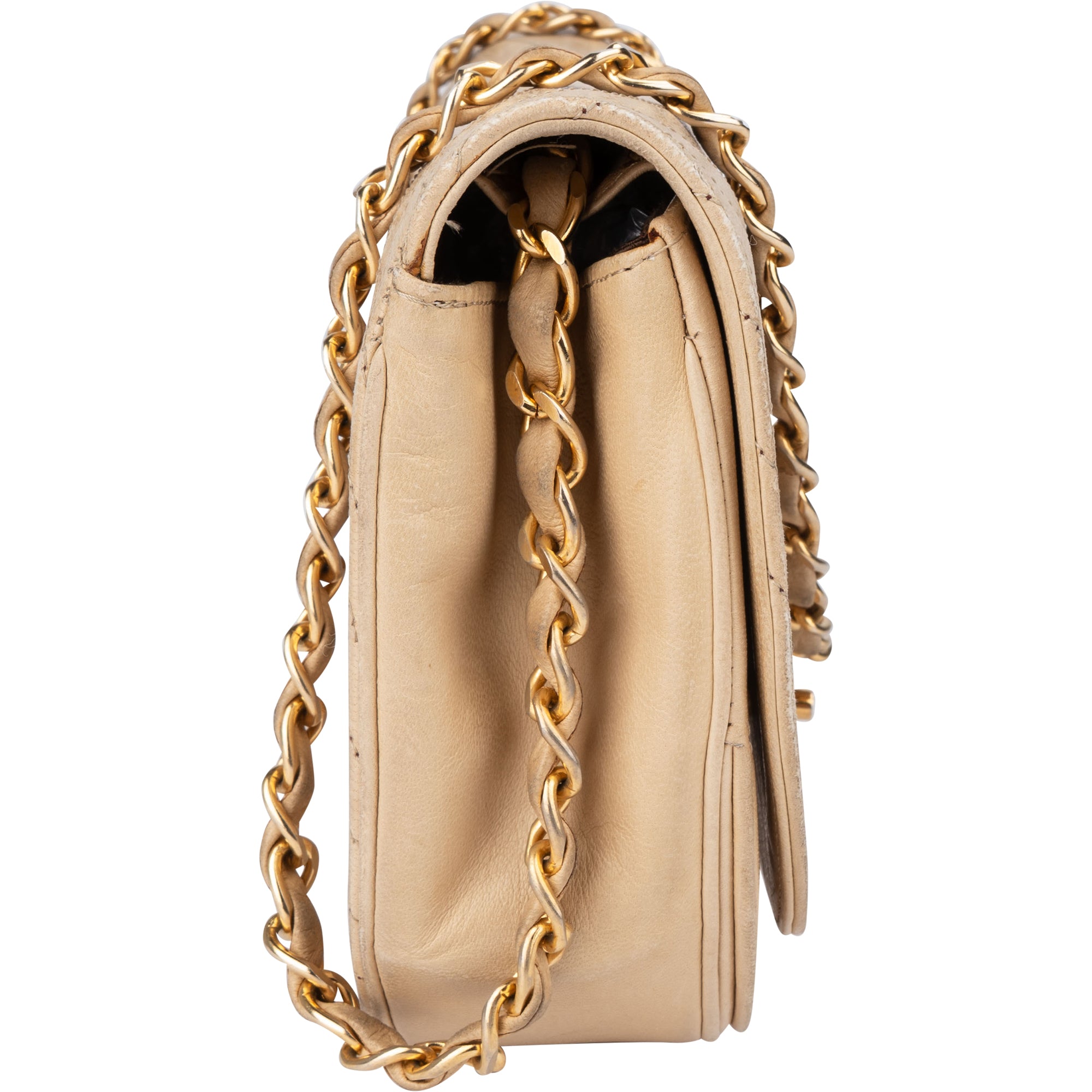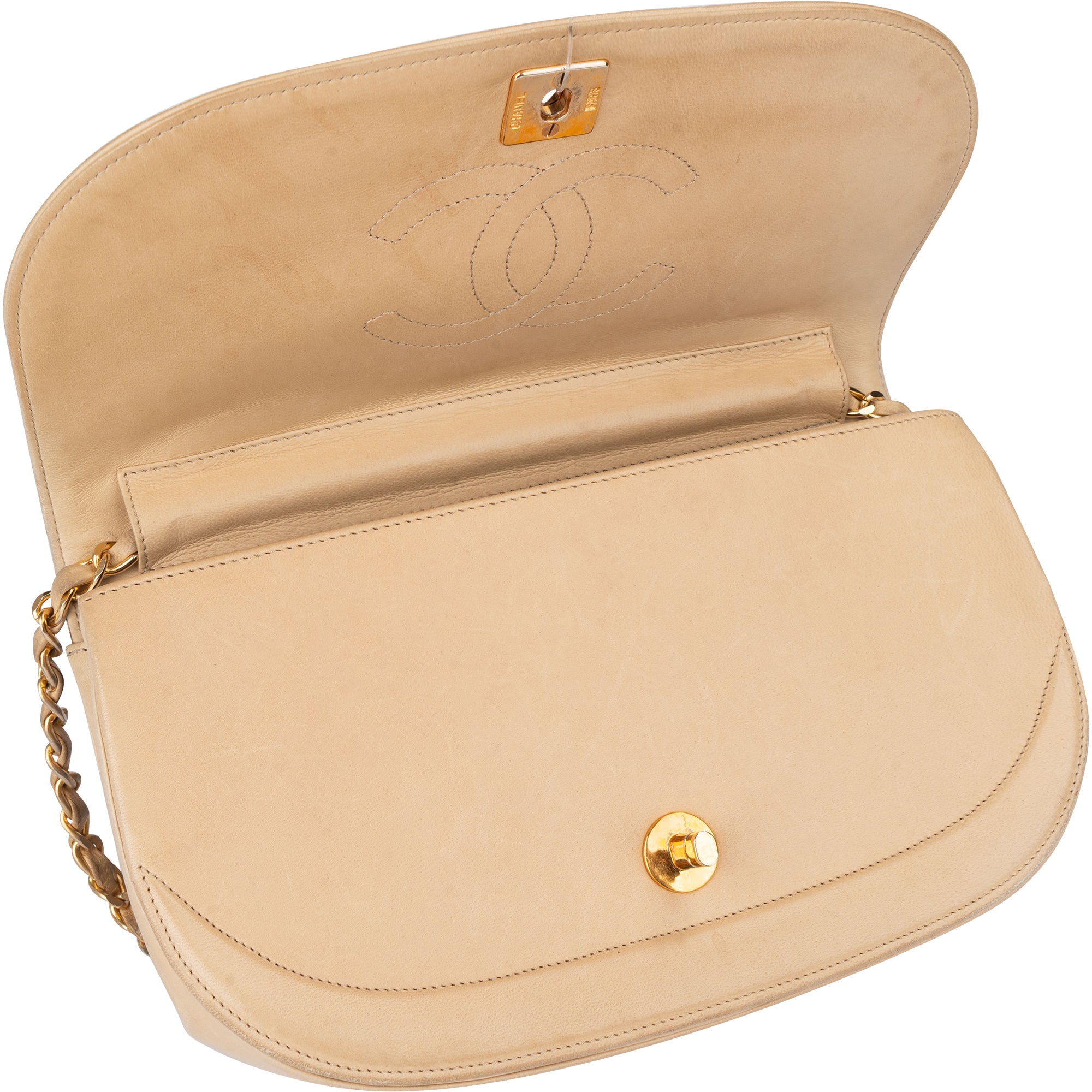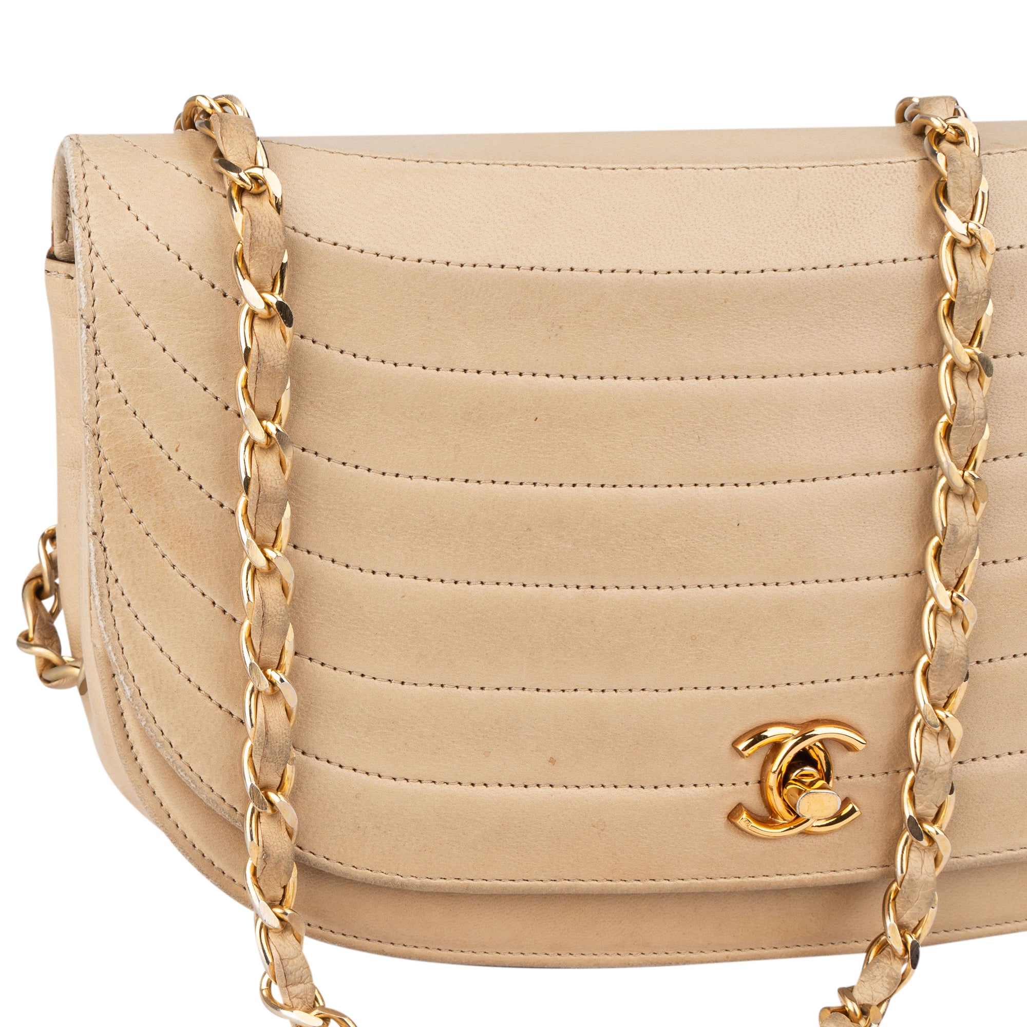 Chanel Stitching Lambskin 24K Gold Halfmoon Single Flap Shoulder Bag