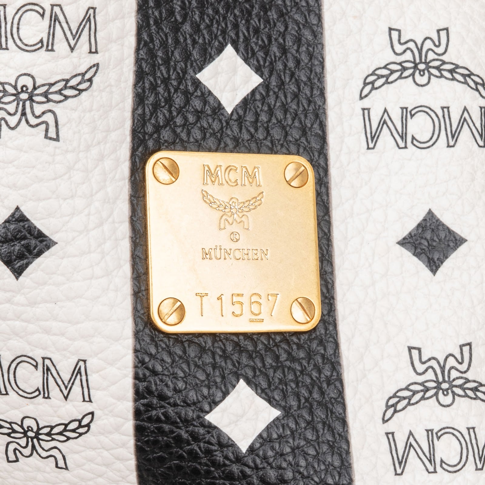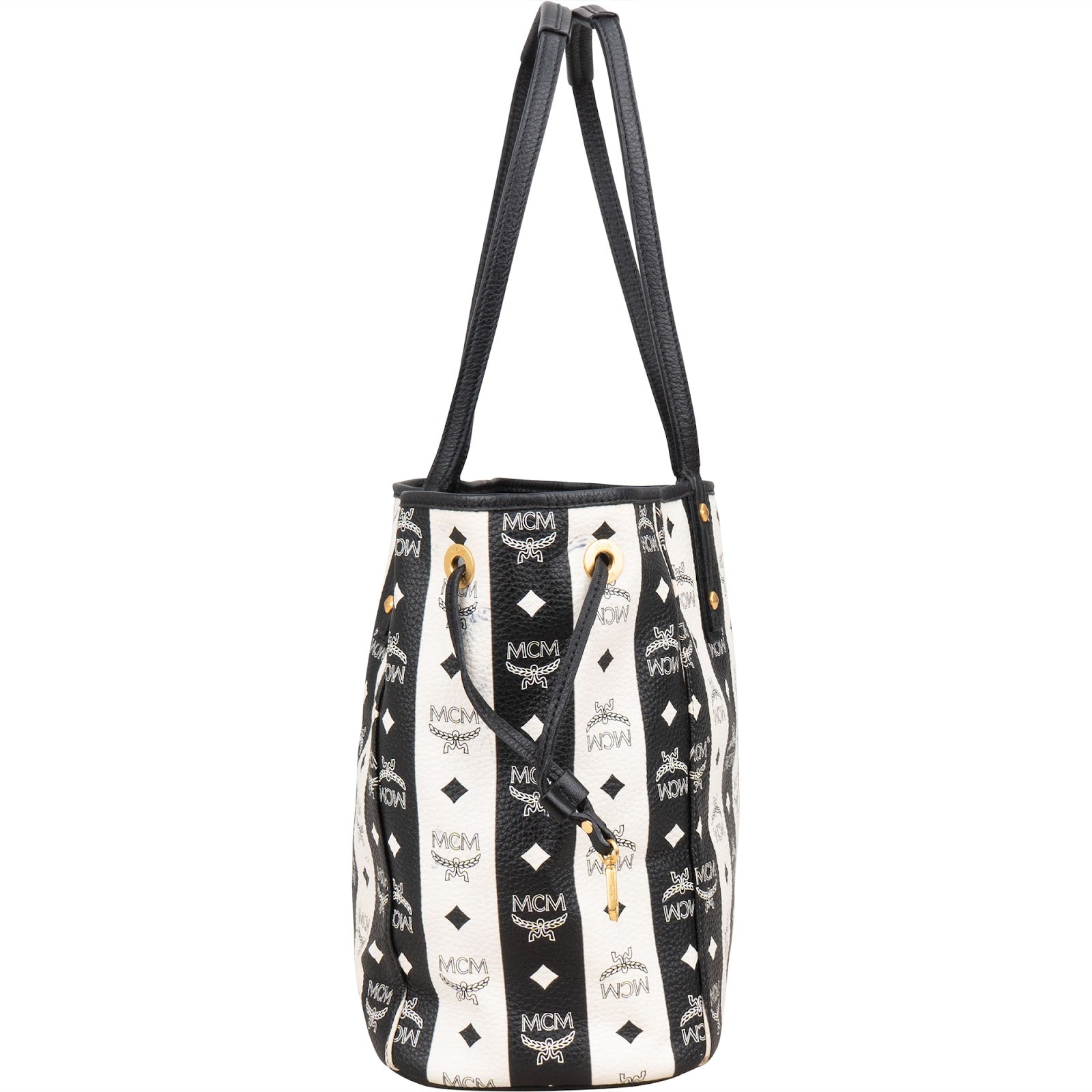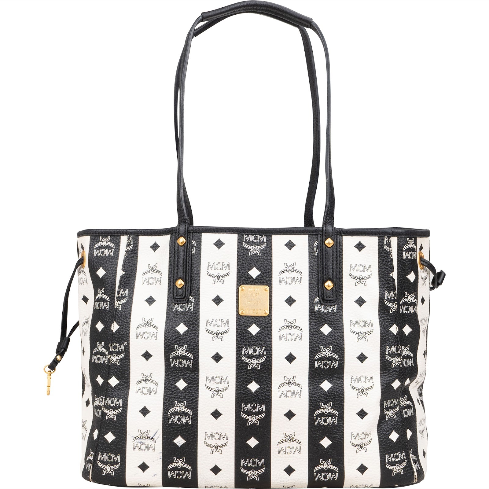 MCM Monogram Visetos Black and White Vertical Stripe Liz Shopper Shoulder Bag