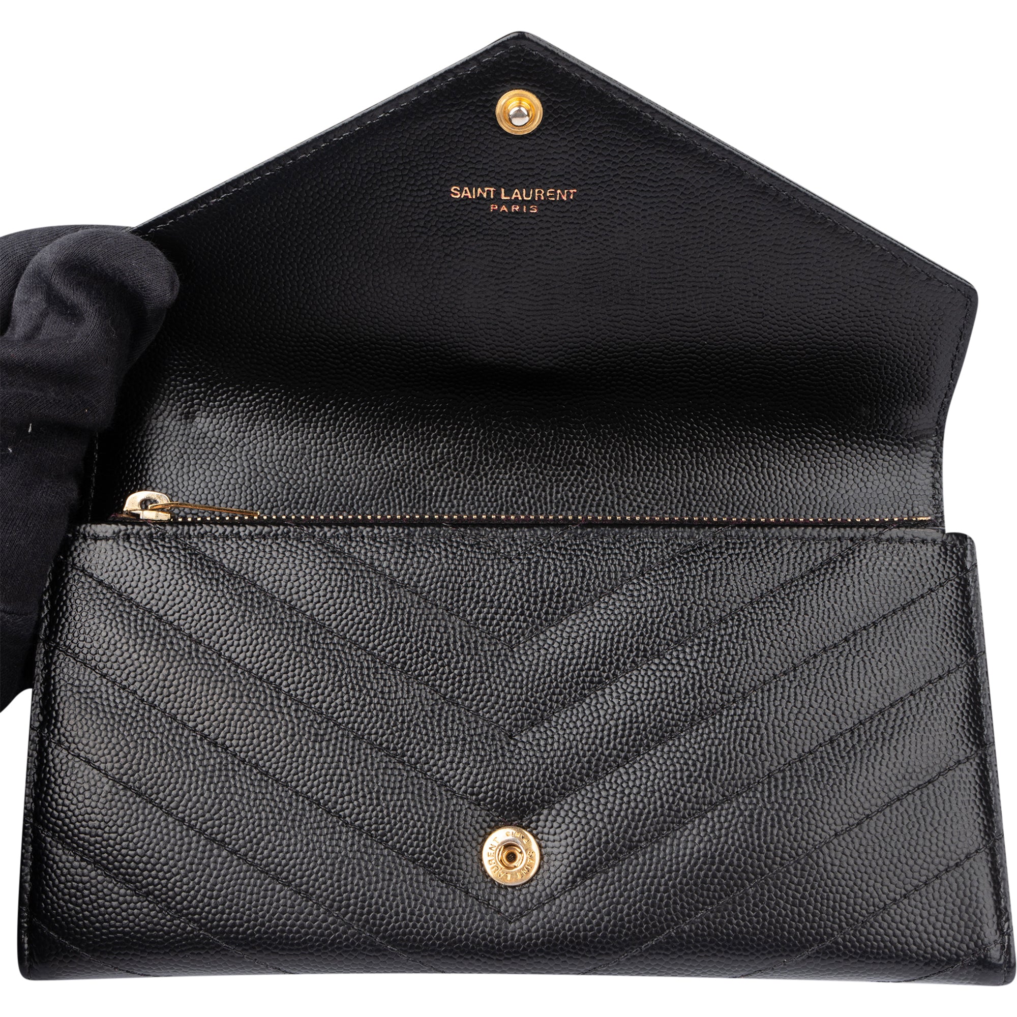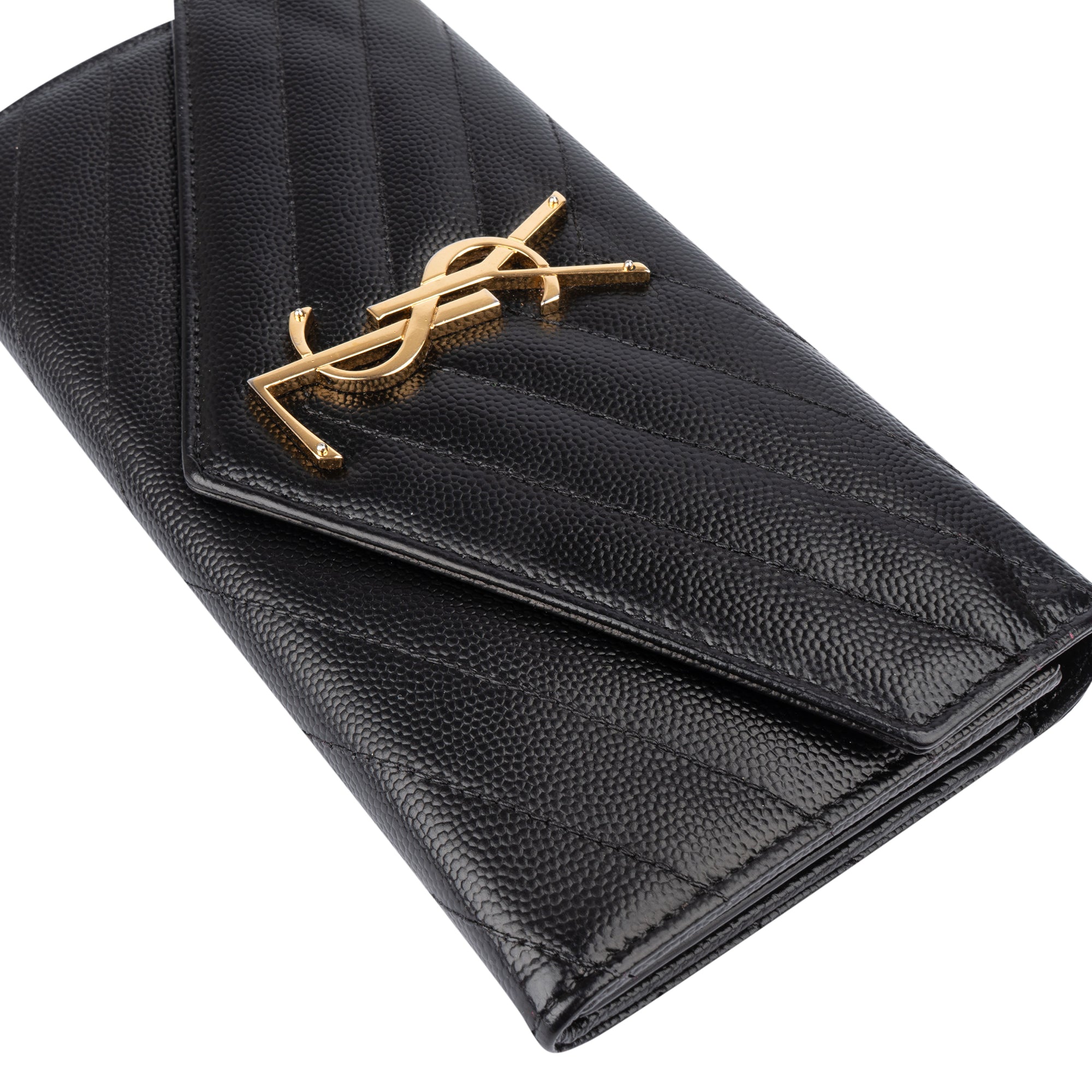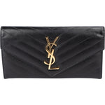 Saint Laurent Black Chevron Caviar Leather Cassandre Wallet