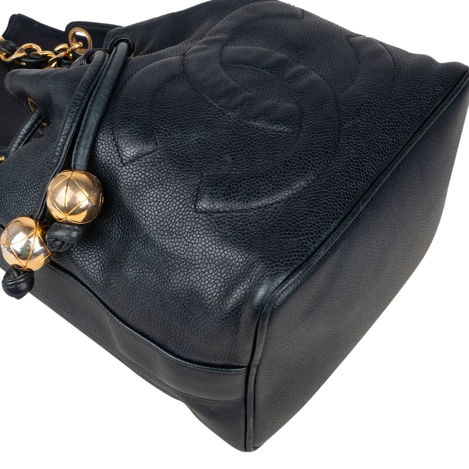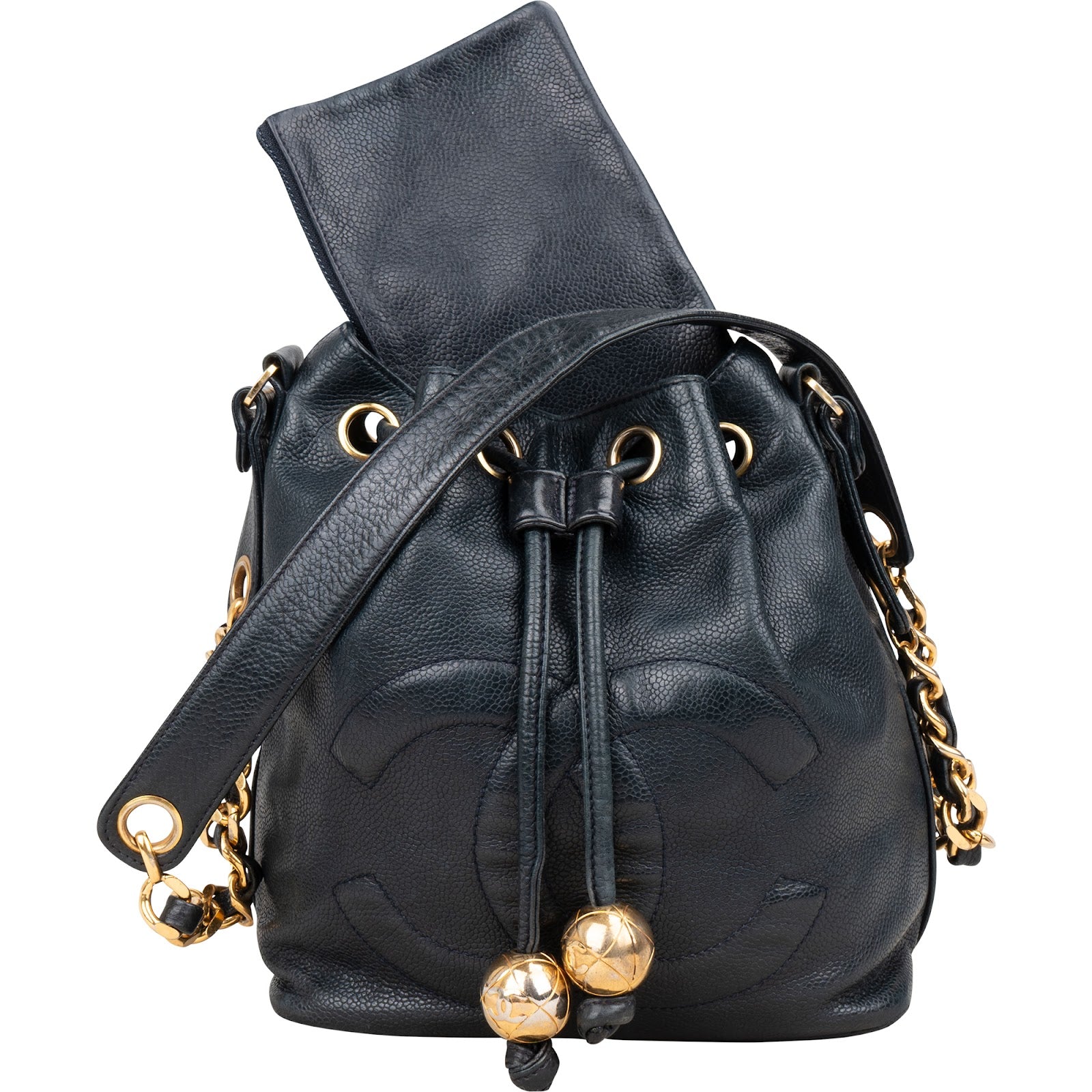 Chanel Caviar Leather CC Drawstring Bucket Crossbody Bag