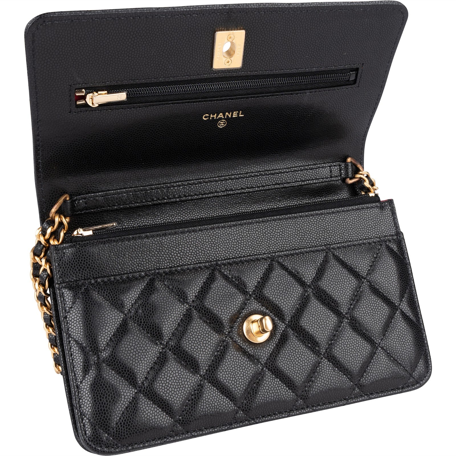 Chanel Quilted Caviar Leather Wallet On Chain Crossbody Bag