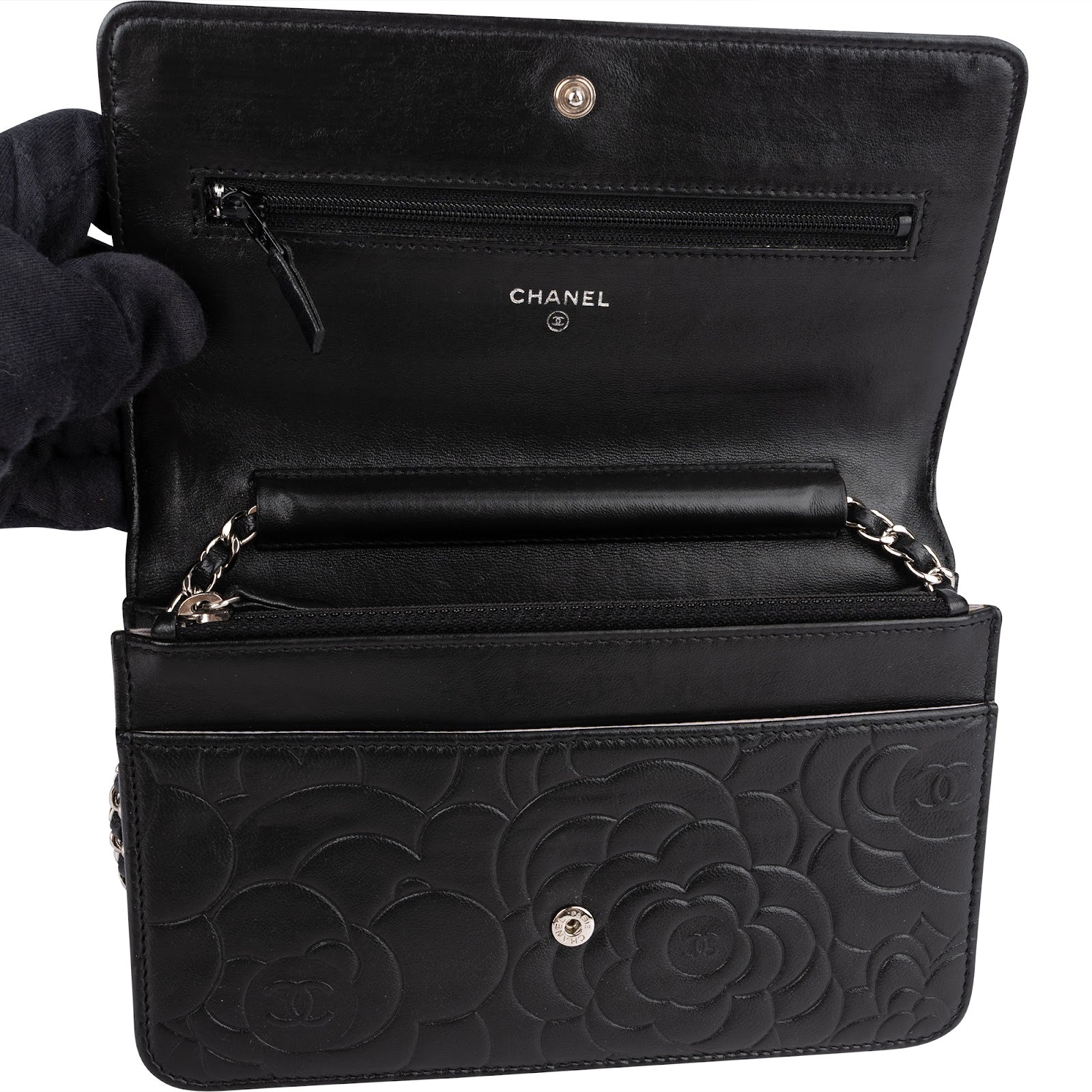 Chanel Lambskin Camellia Leather Wallet on Chain Crossbody Bag