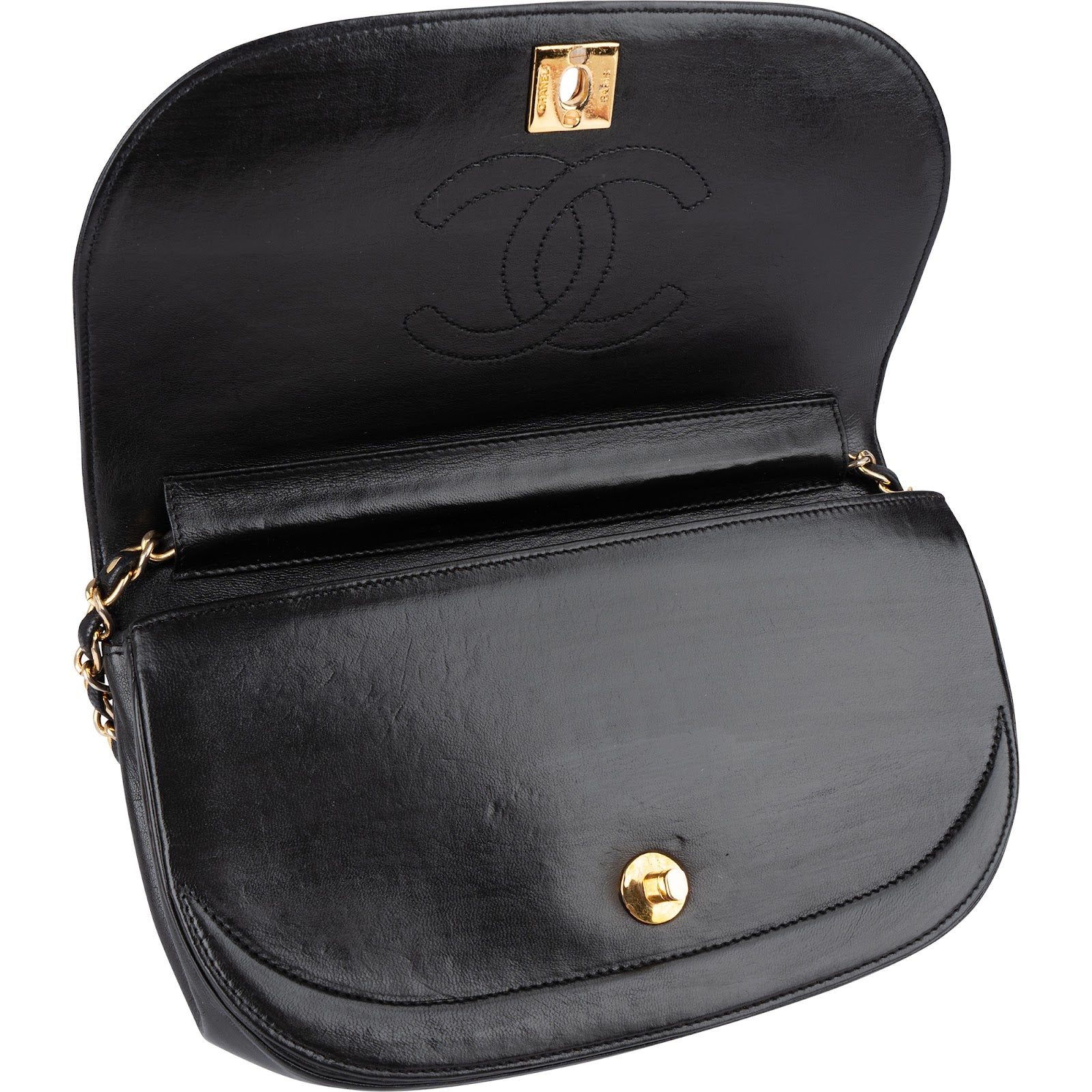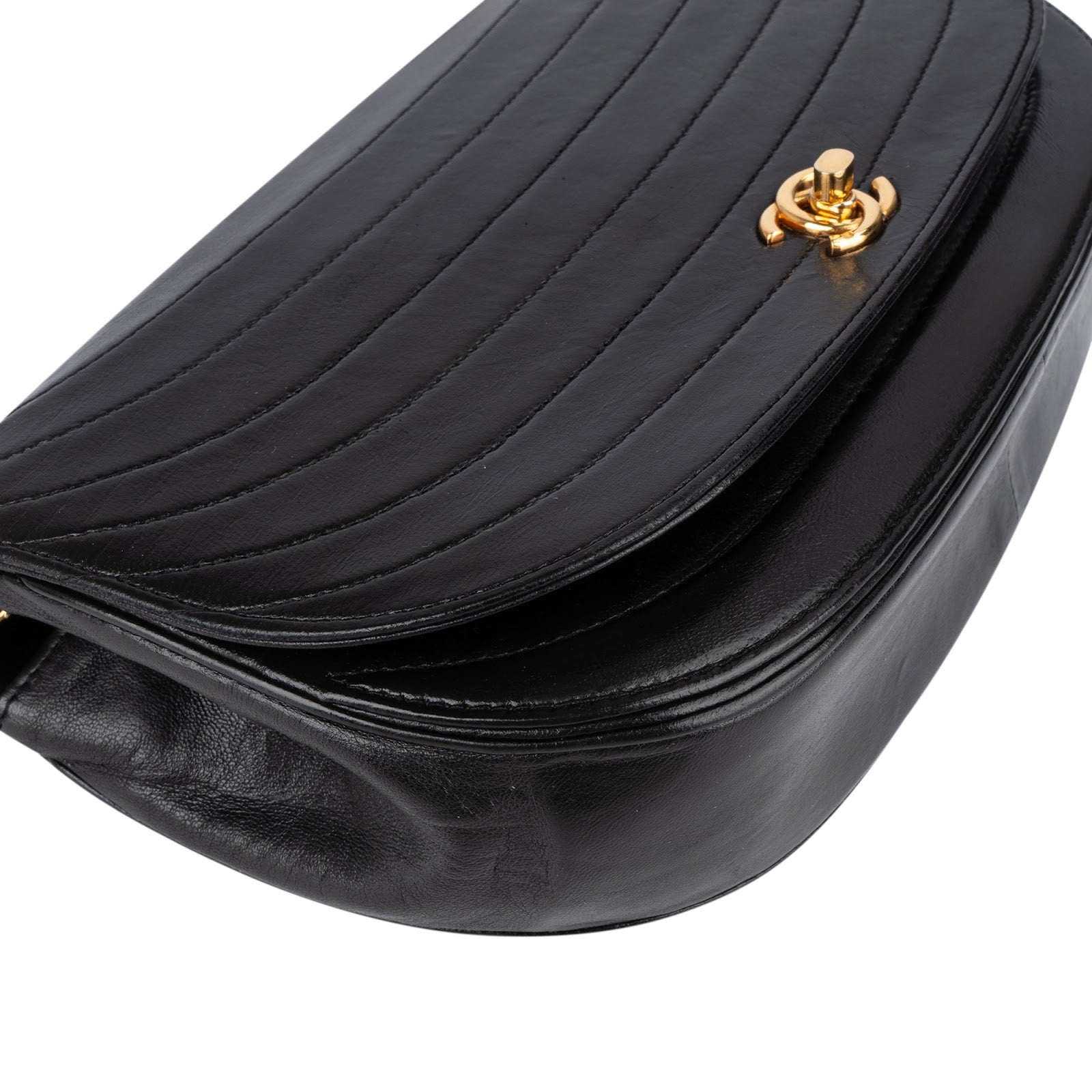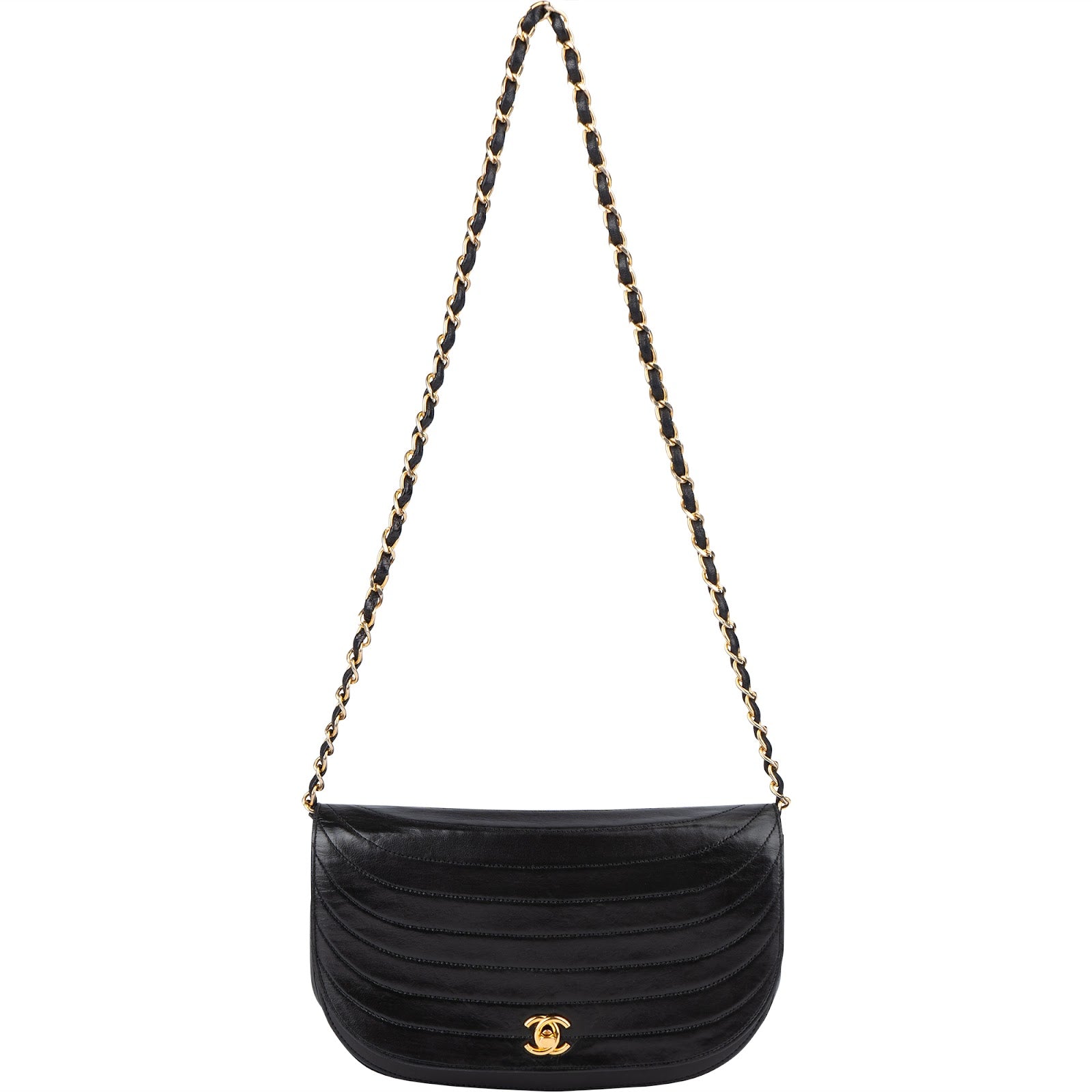 Chanel Quilted Lambskin 24K Gold Half Moon Single Flap Shoulder Bag