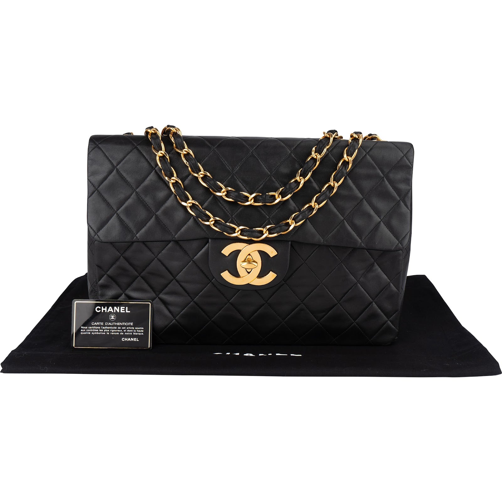 Chanel Quilted Lambskin 24K Gold Jumbo Single Flap Crossbody Bag