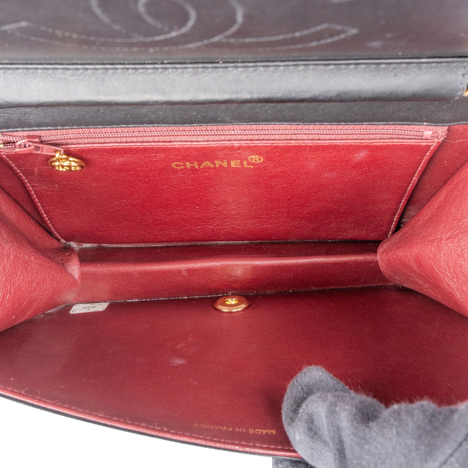 Seriennummer / Datacode: 4932391, silberner Sticker im Nebenfach