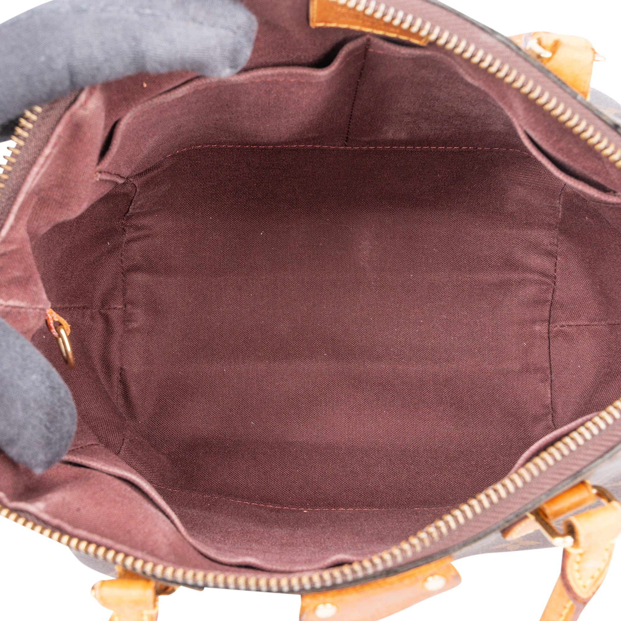 Zustand außen: gut - Vachetta mit Abrieb und Patina, geschwächte Träger