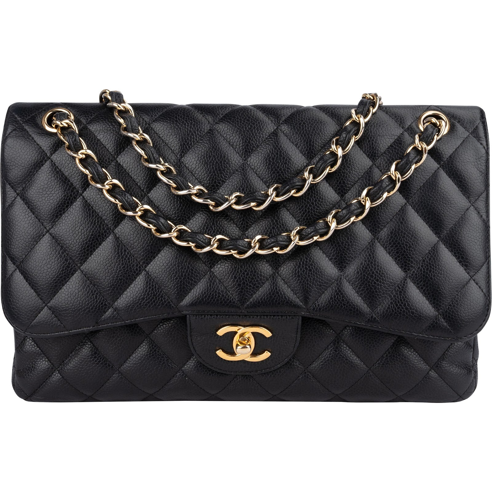 Chanel Quilted Caviar Leather Jumbo Double Flap Crossbody Bag