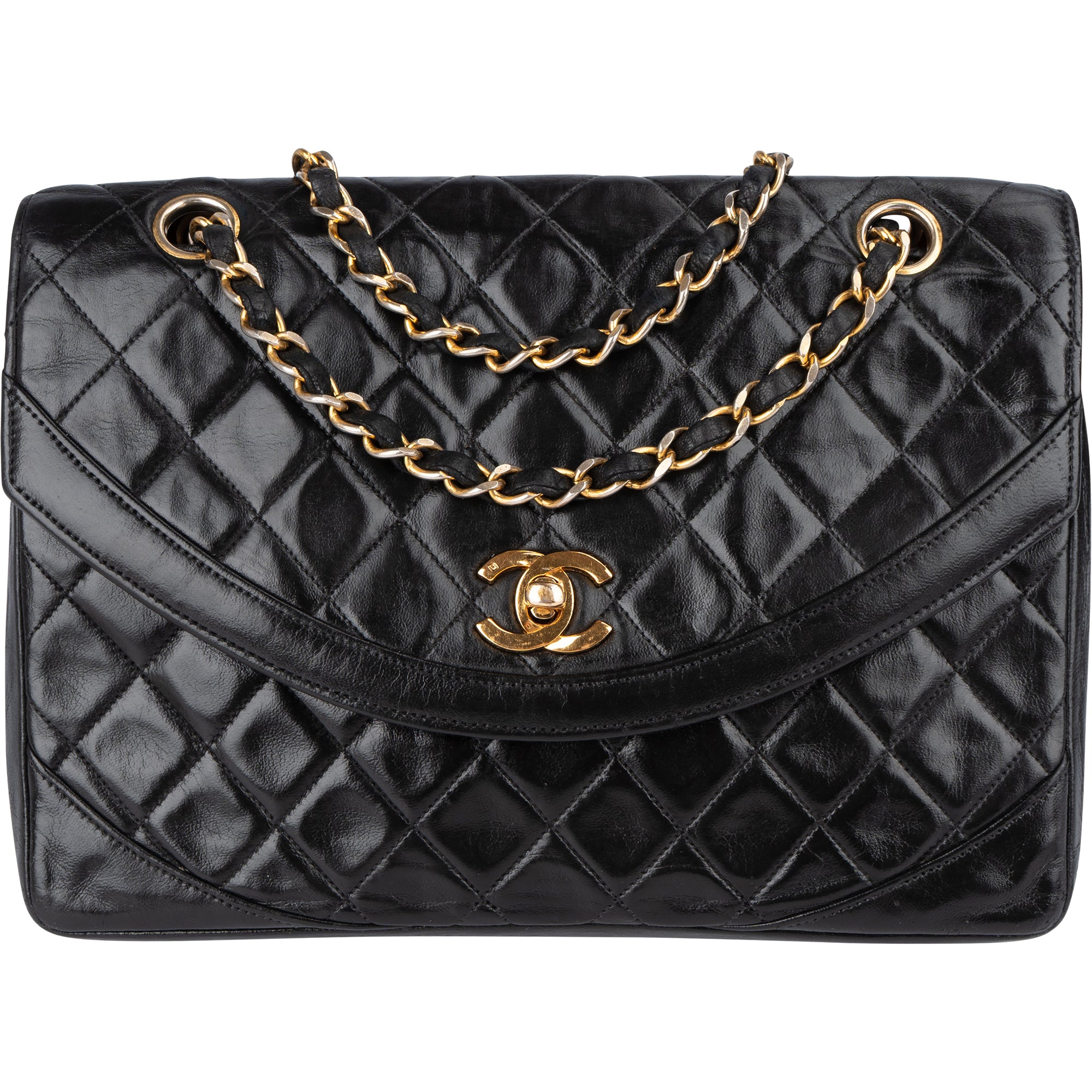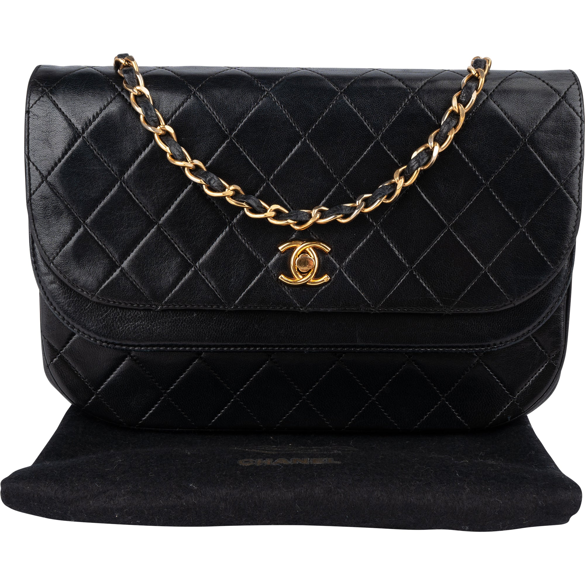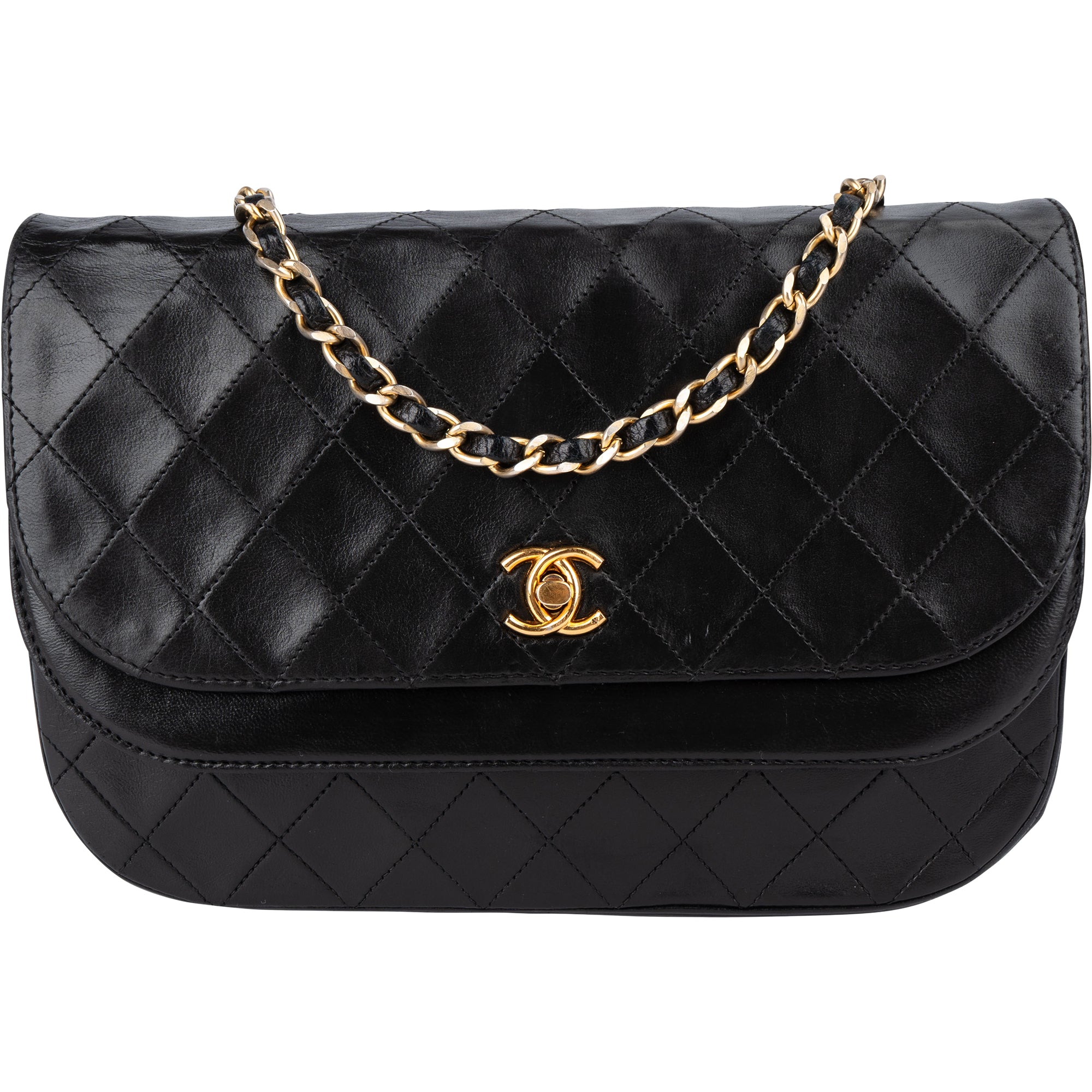 Chanel Quilted Lambskin 24K Gold Half Moon Double Flap Shoulder Bag