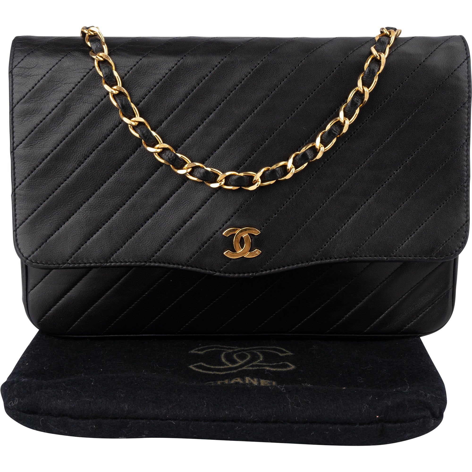 Chanel Noir Chevron Lambskin Single Flap Shoulder Bag
