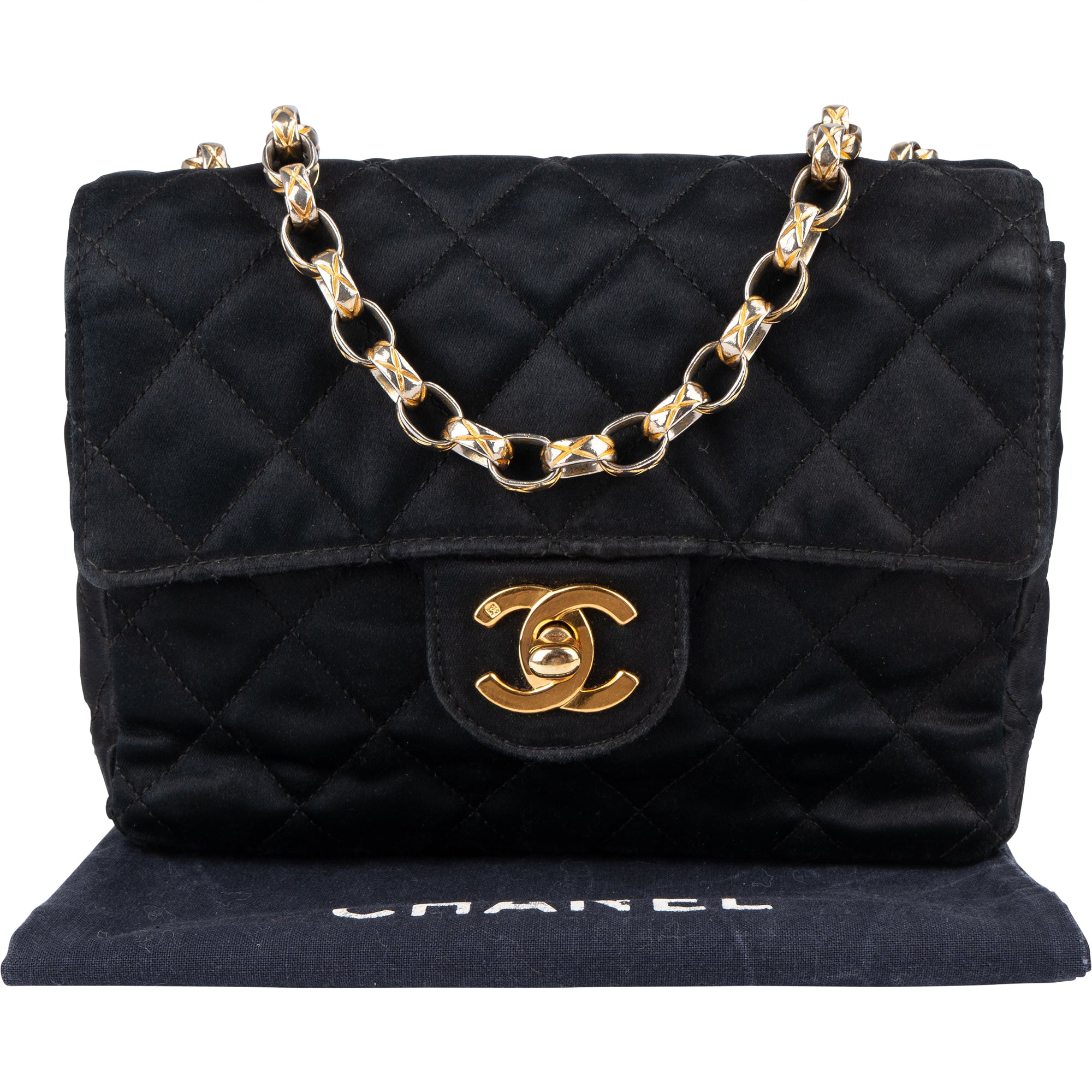 Chanel Quilted Satin Single Flap Crossbody Bag