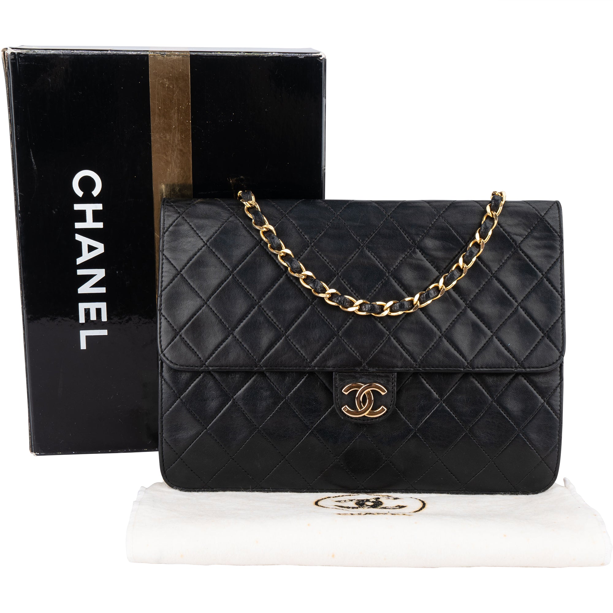Chanel Quilted Lambskin 24K Gold Single Flap Shoulder Bag