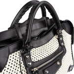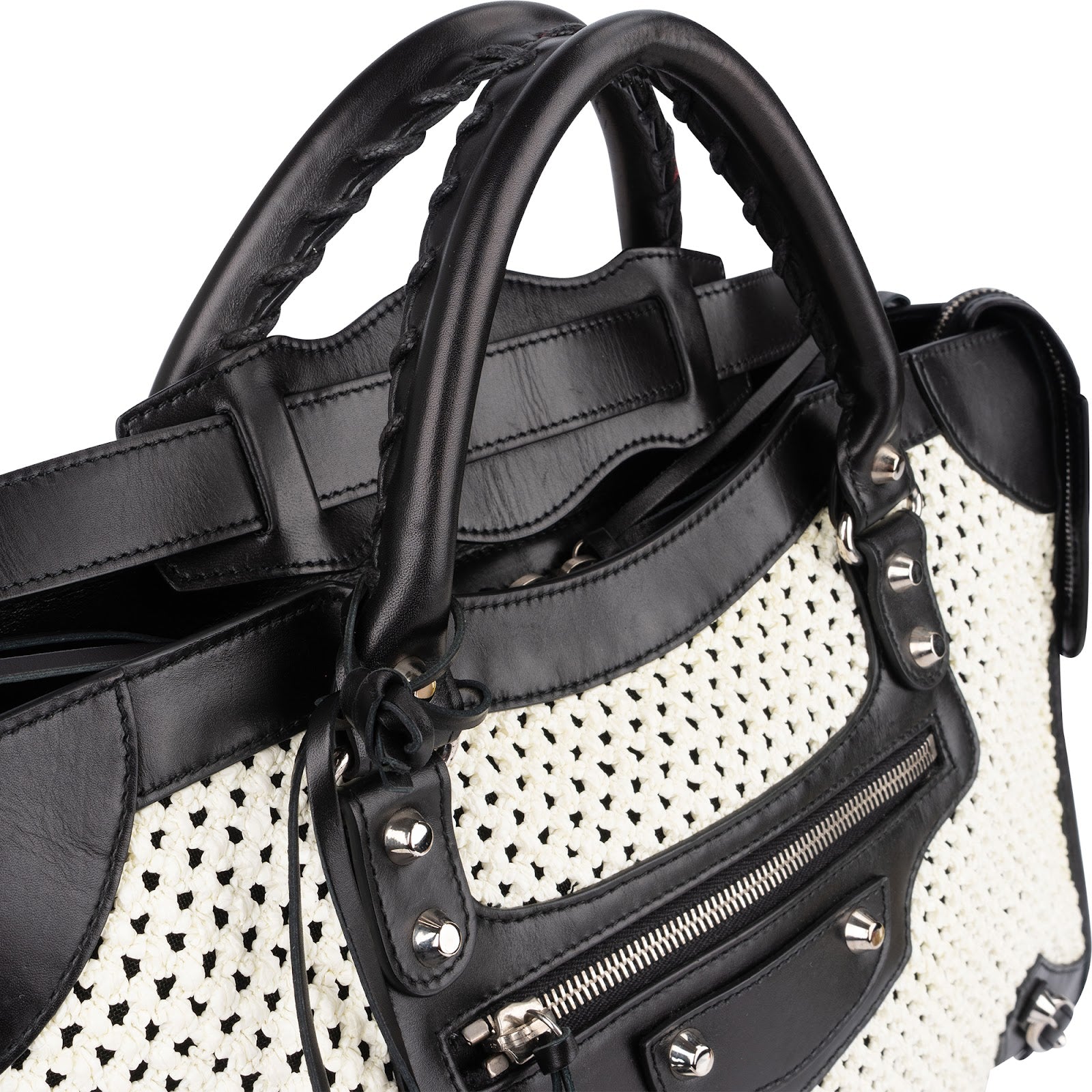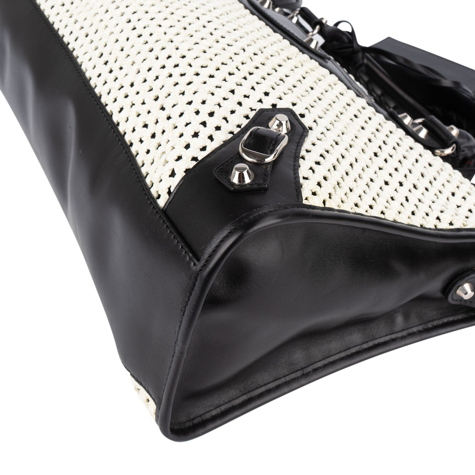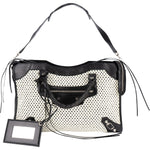 Balenciaga Black and White Raffia and Leather City Handbag