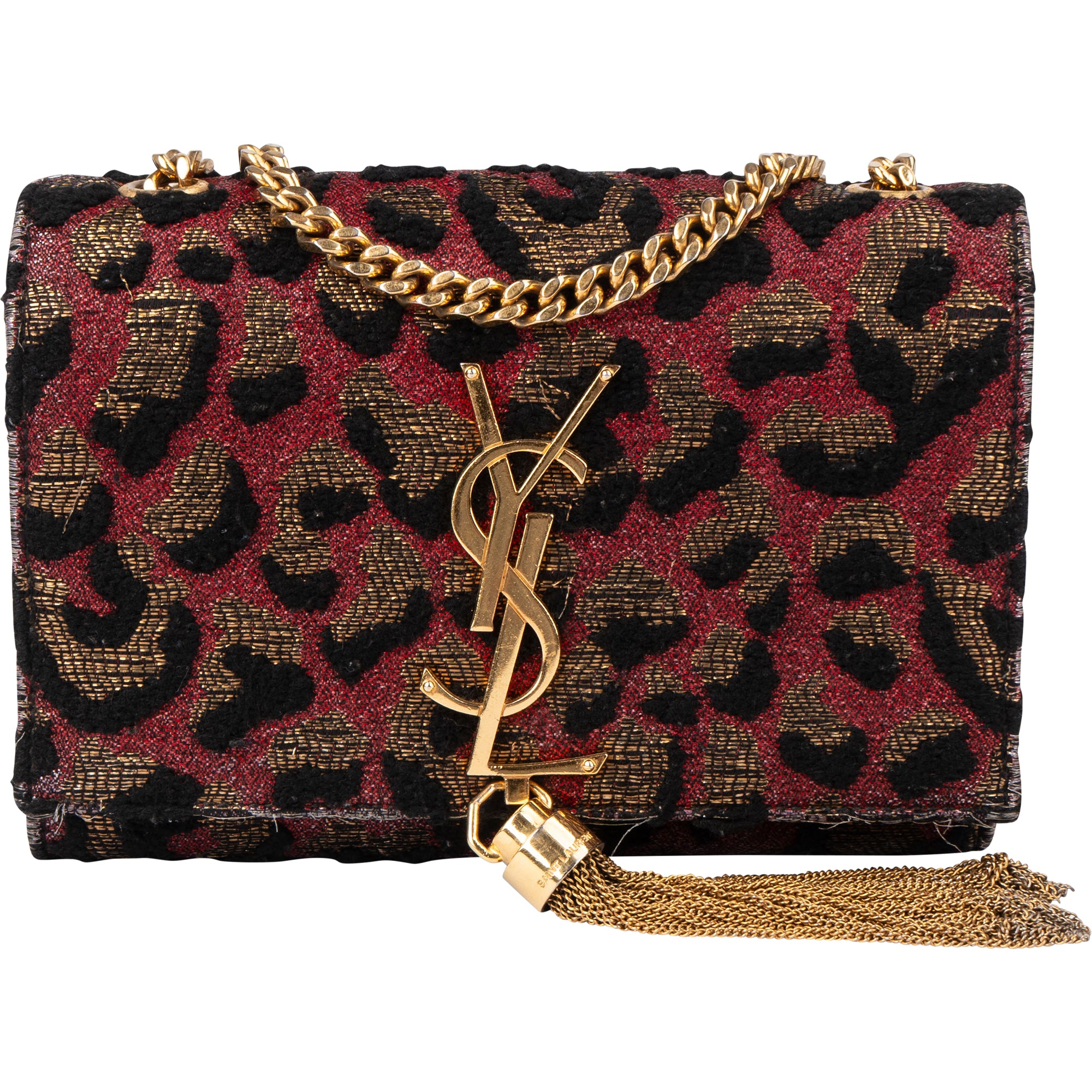Saint Laurent Leopard Print Pompon Kate Crossbody Bag