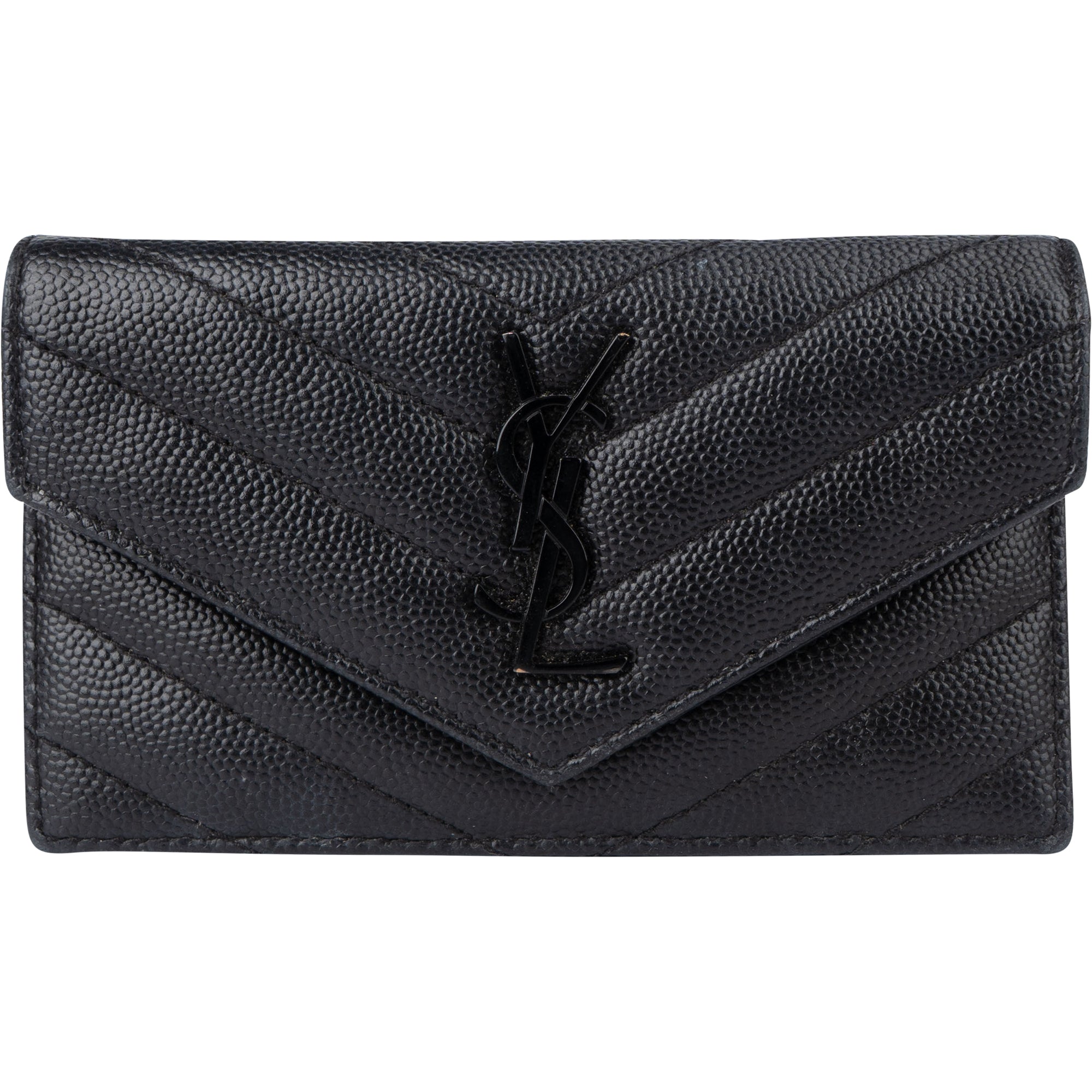 Saint Laurent Chevron Caviar Leather Compact Wallet
