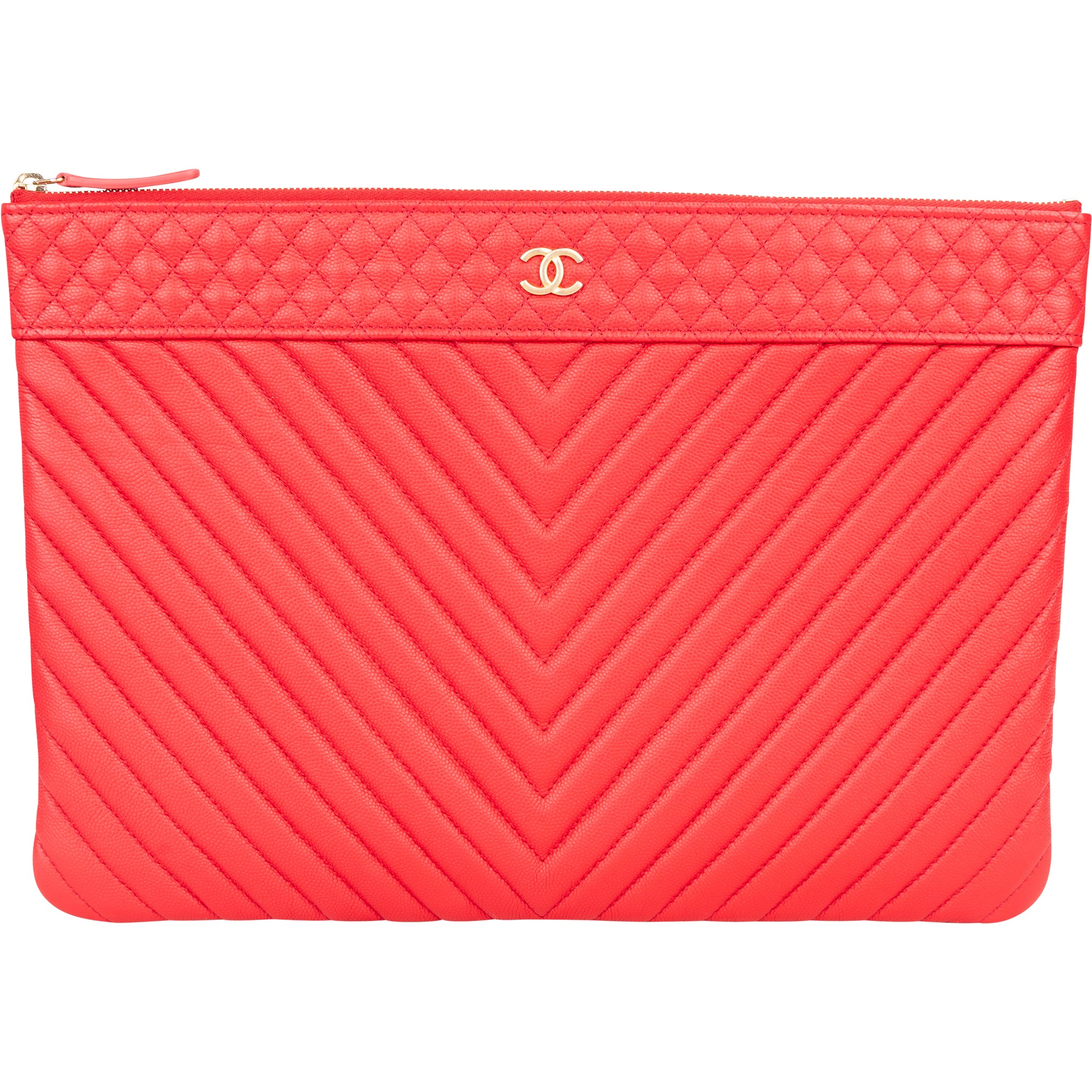 Chanel Rouge Quilted Caviar Leather CC Clutch