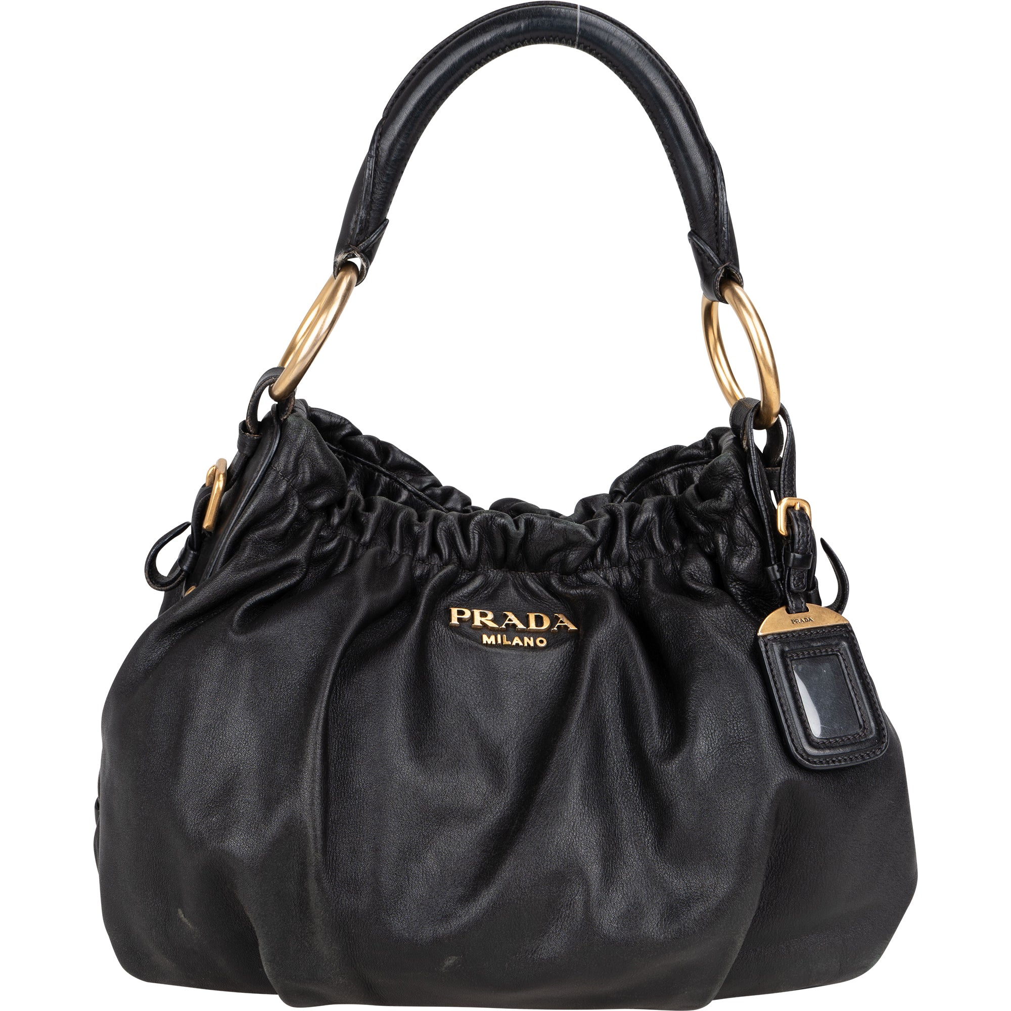 Prada Black Leather Bucket Handbag