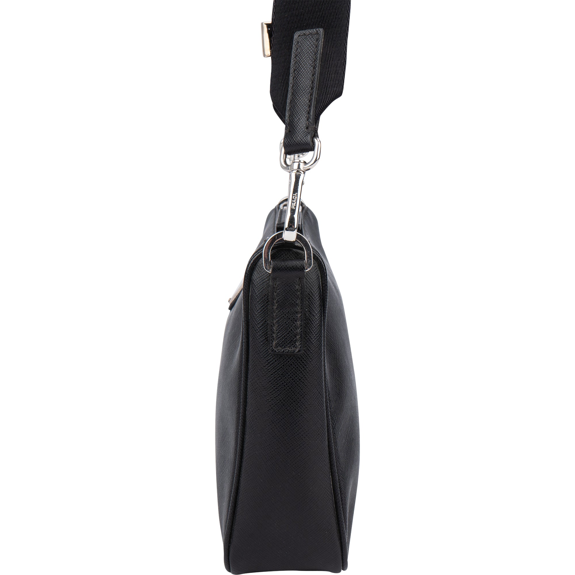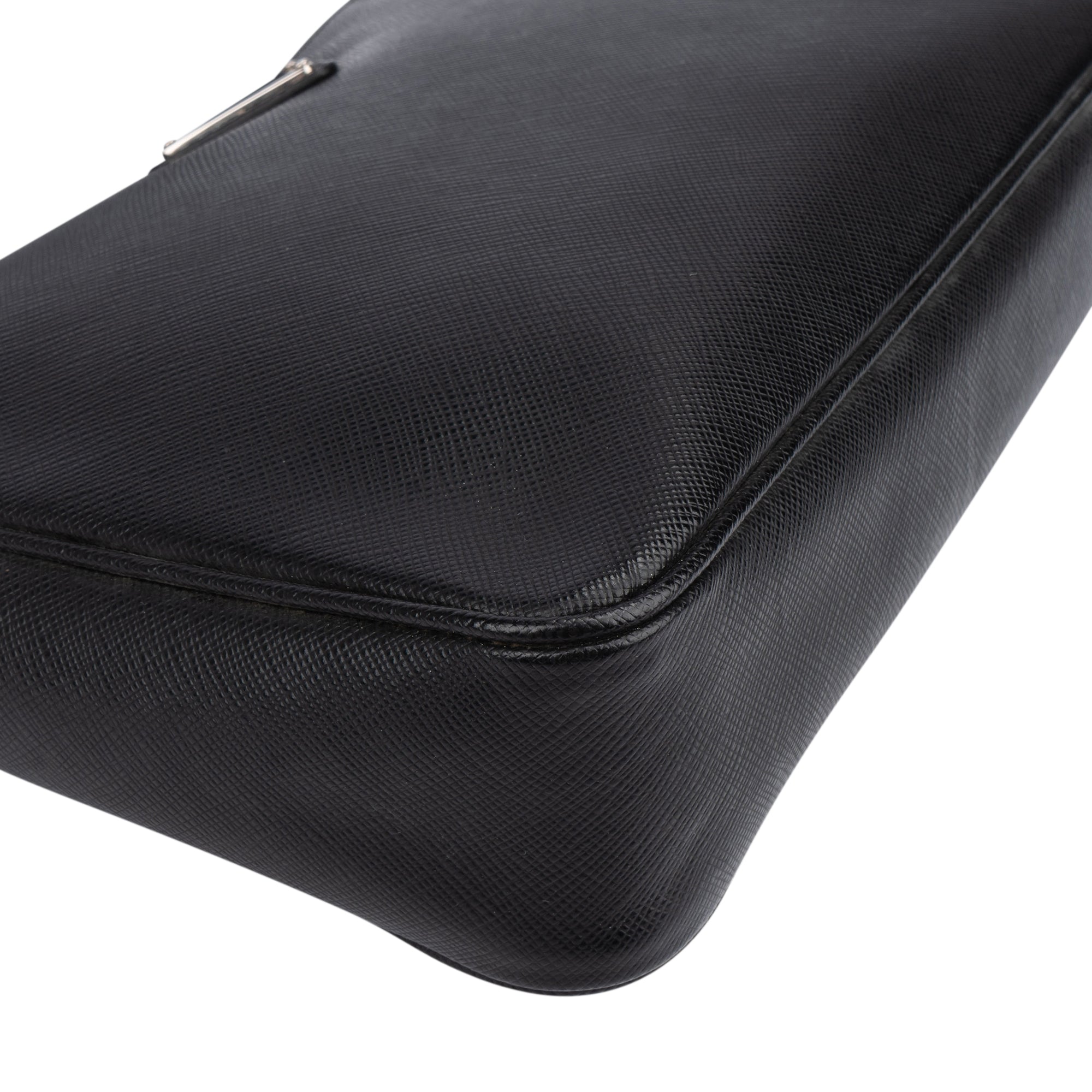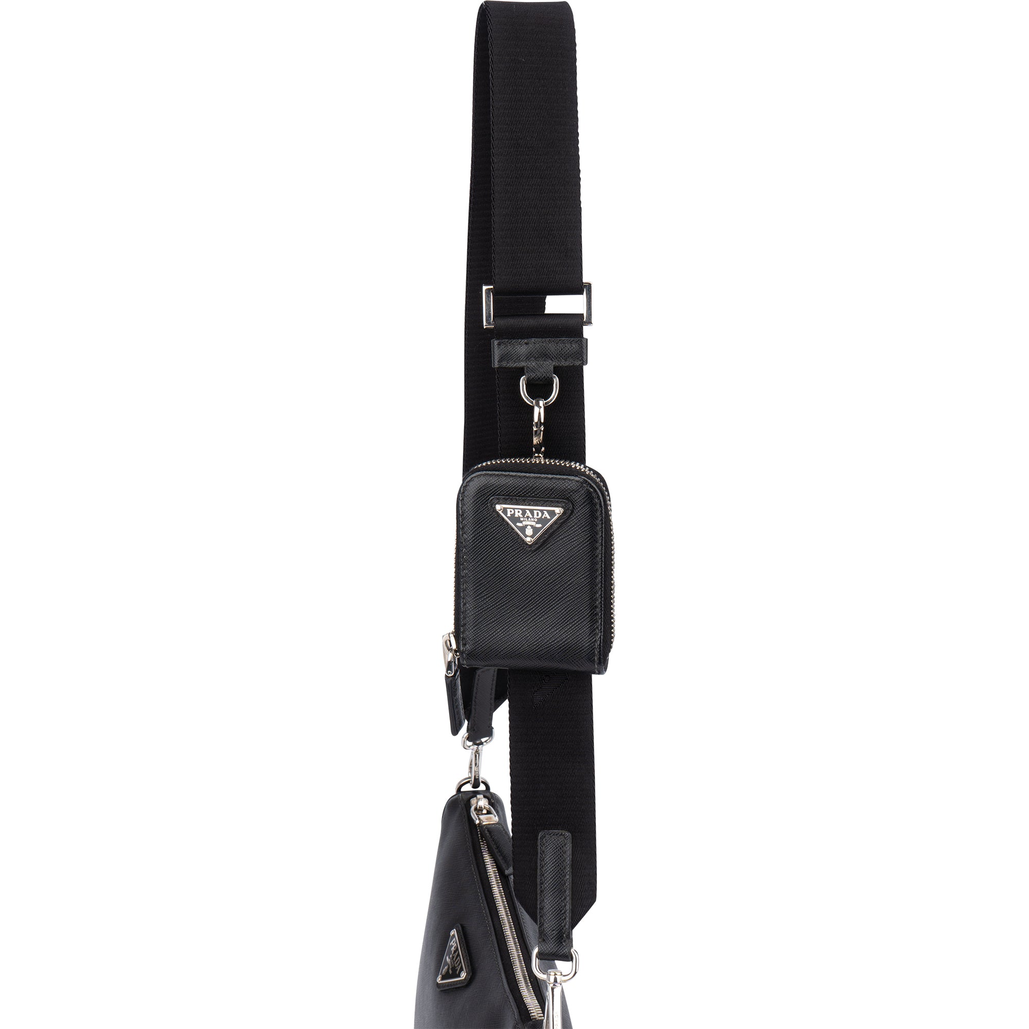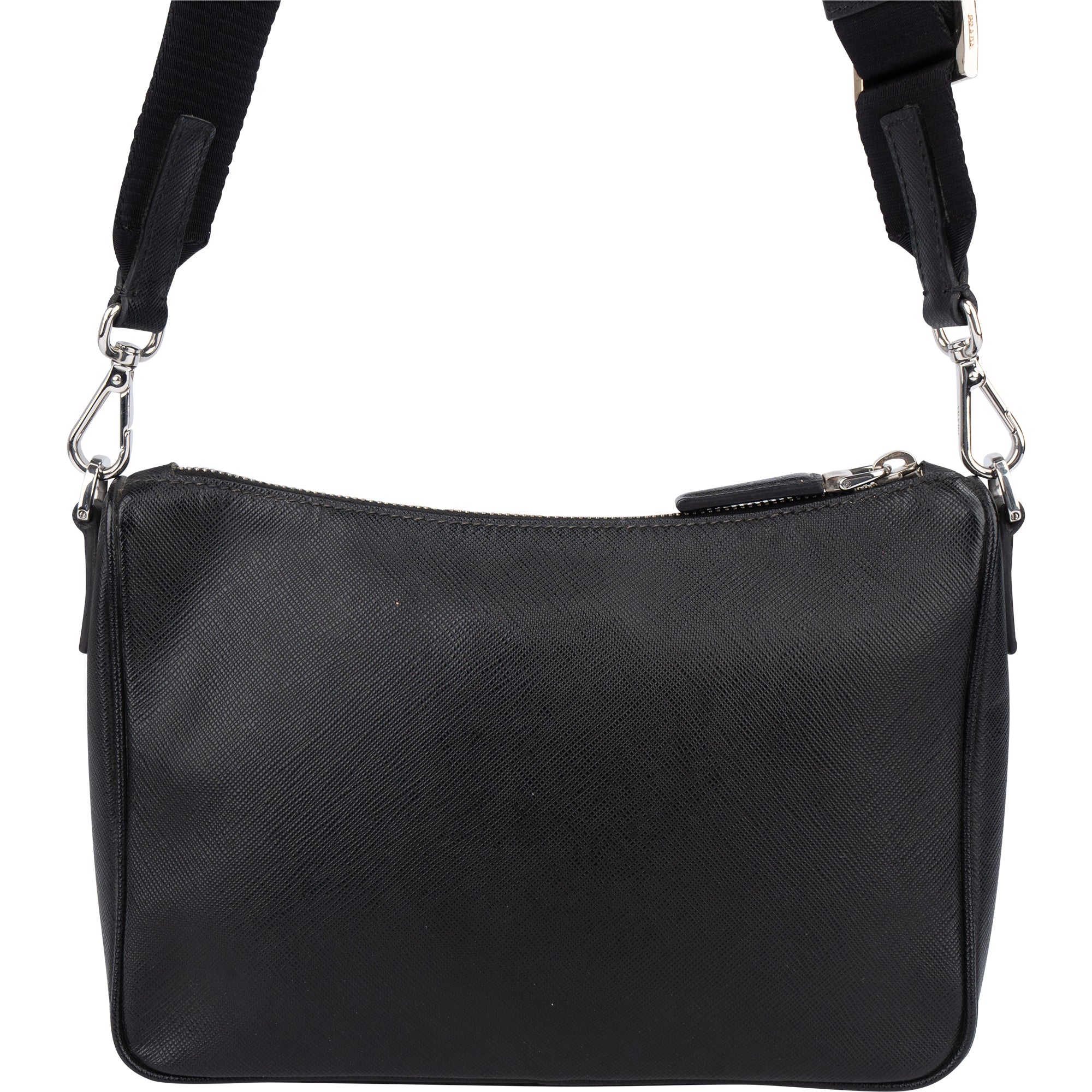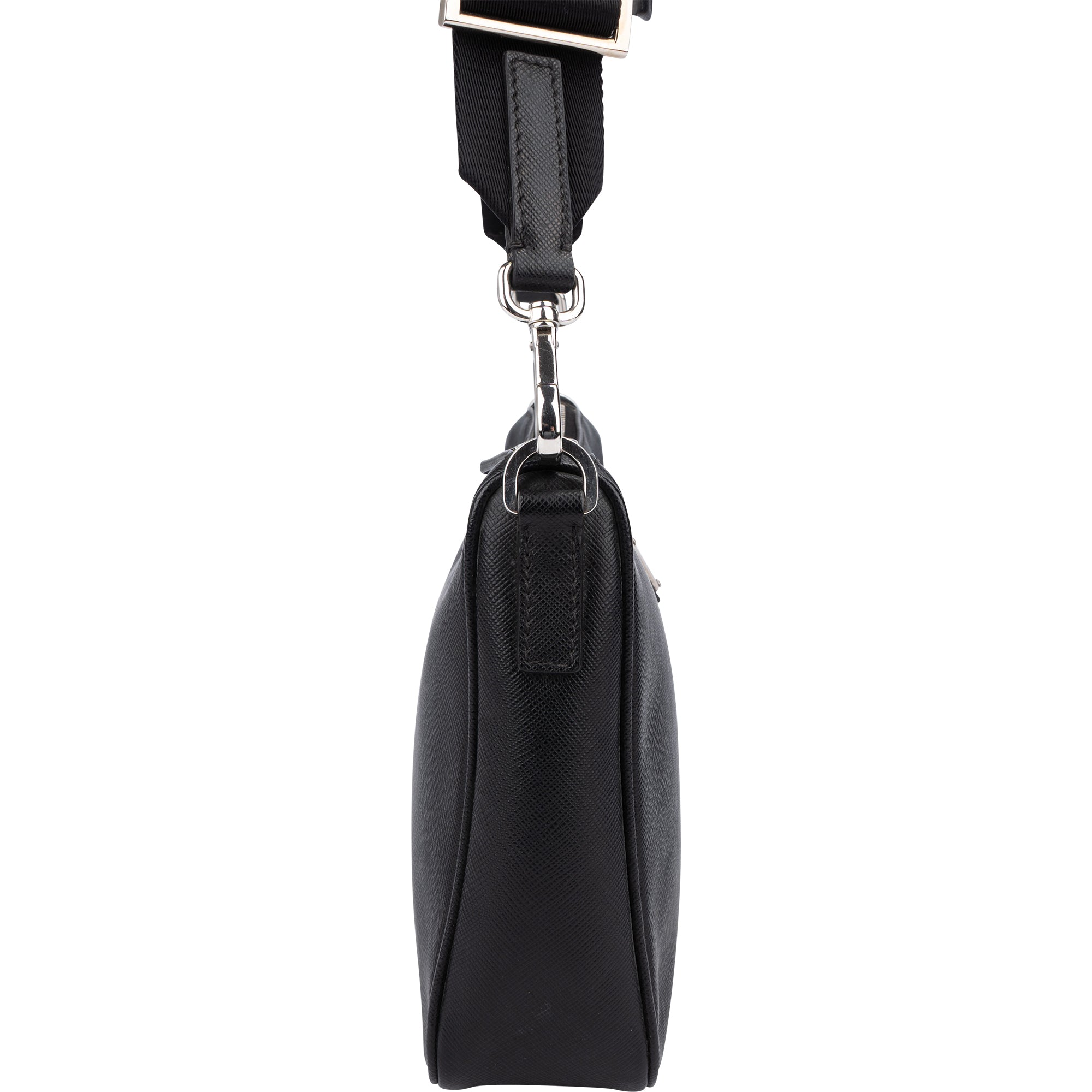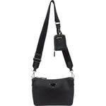 Prada Black Saffiano Leather Triangle Vitello Crossbody Bag