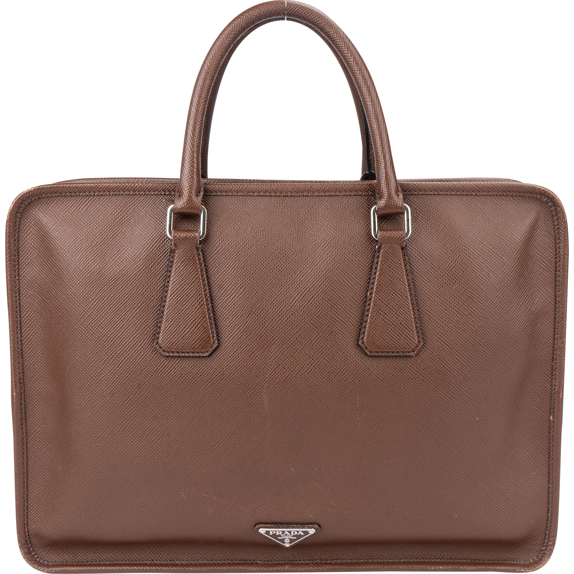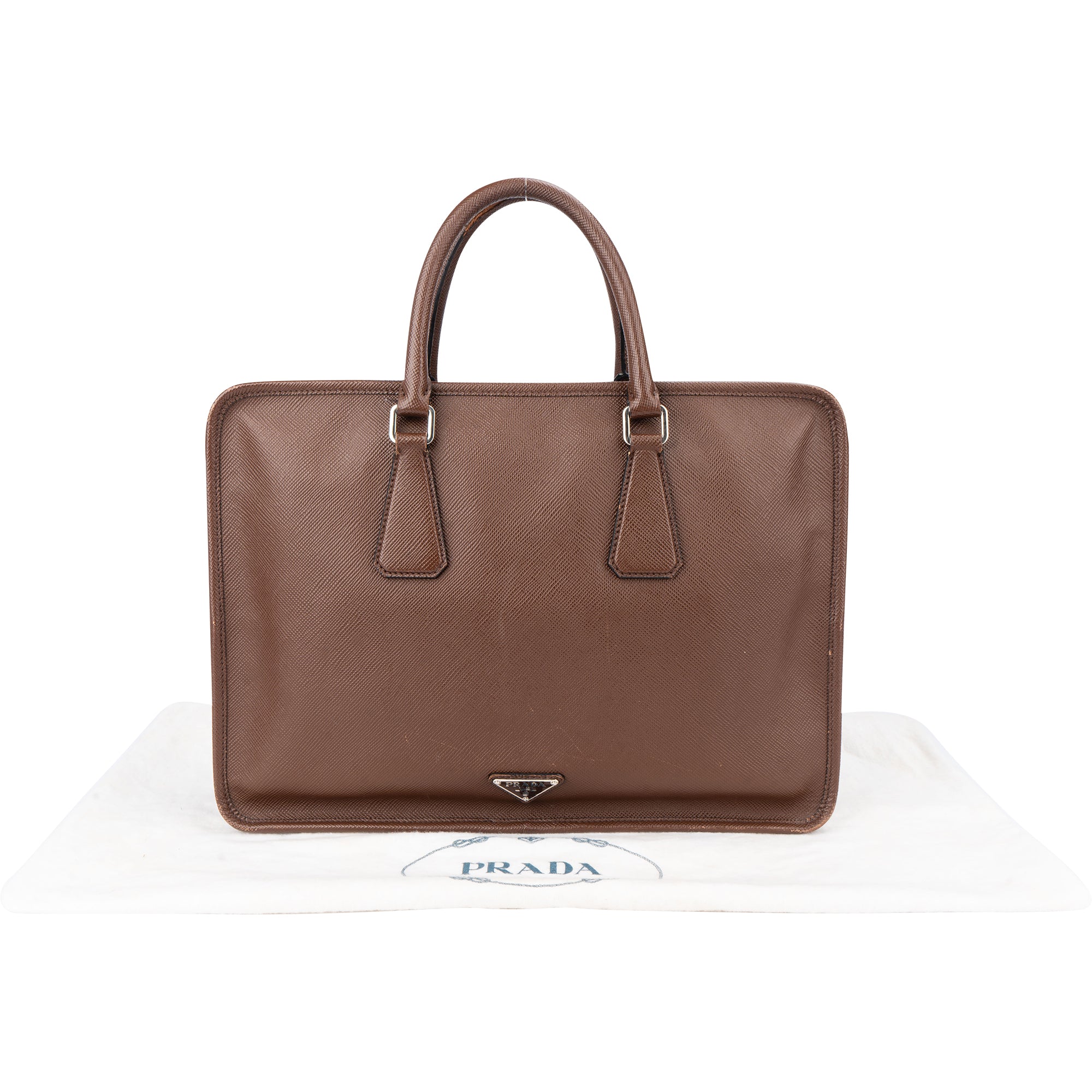Prada Brown Saffiano Leather Triangle Business Handbag