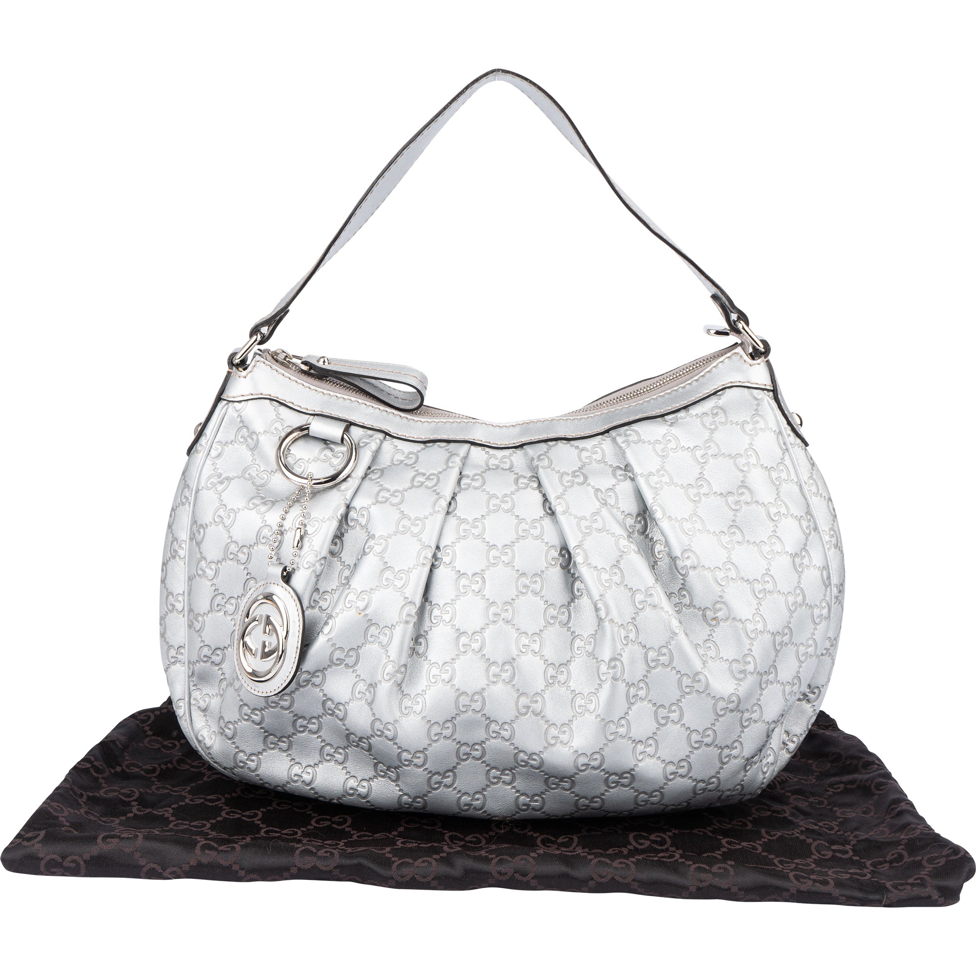 Gucci Silver GG Monogram Sukey Handbag
