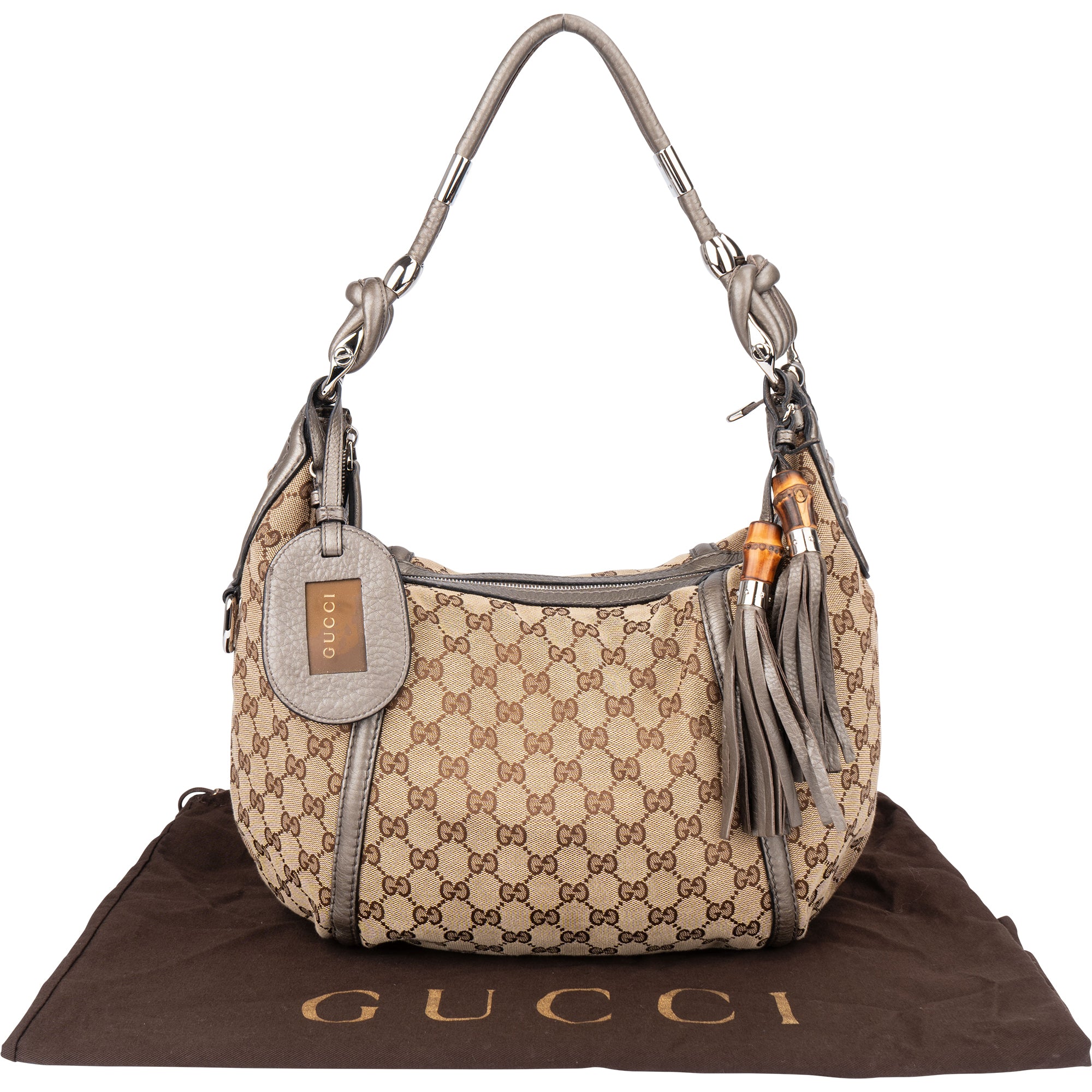 Gucci GG Monogram Bamboo Horsebit Hobo Bag