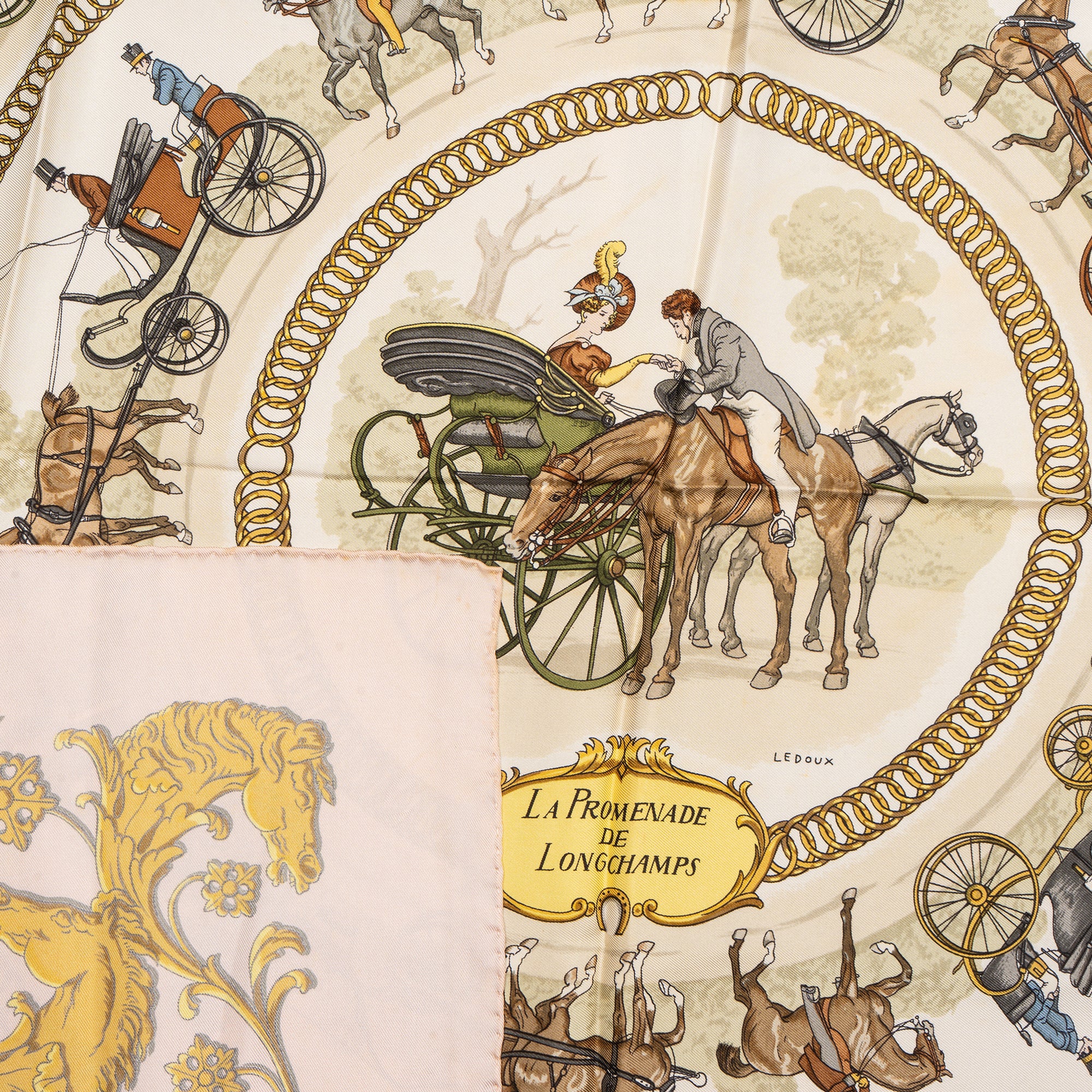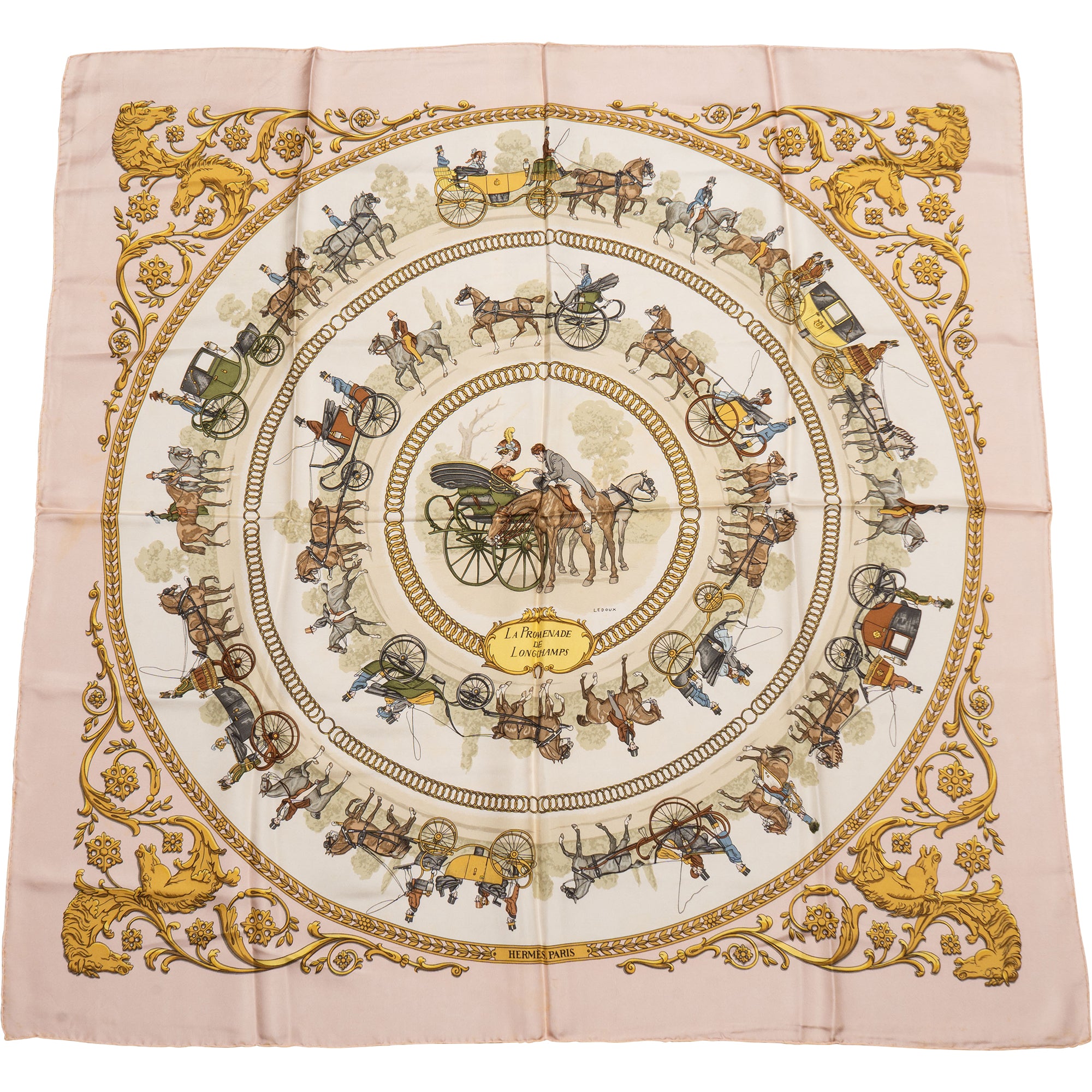 Hermès Classic "LA PROMENADE DE LONGCHAMPS" Silk Carre 90 Scarf Tuch