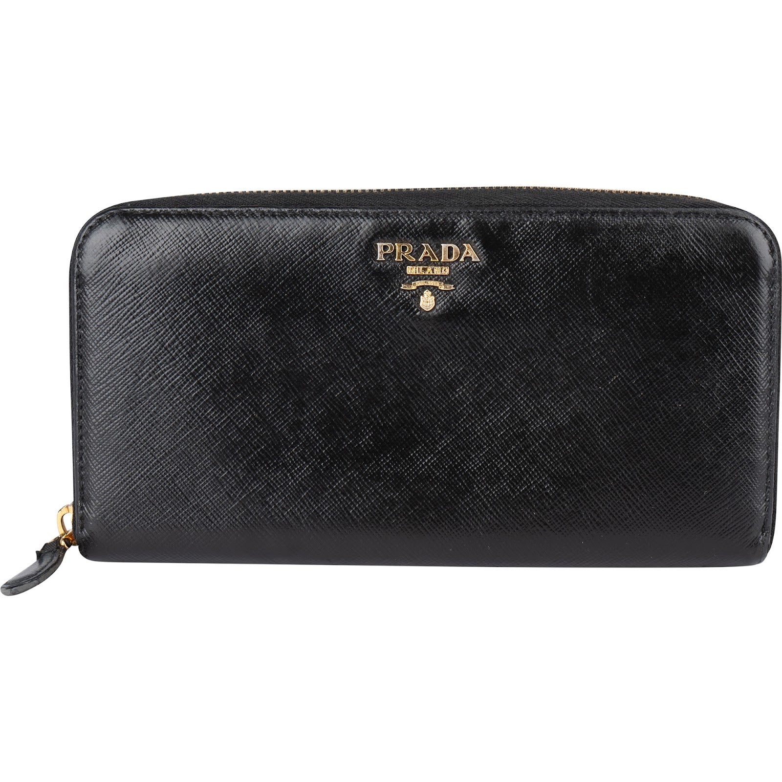 Prada Black Saffiano Leather Zip Around Wallet