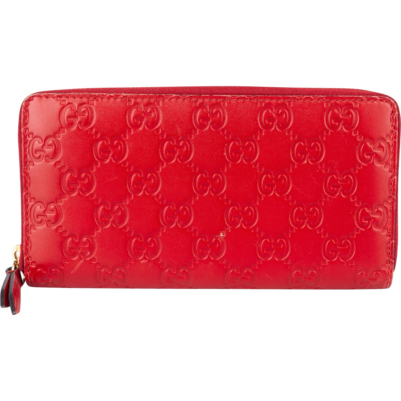 Gucci Red Guccissima Leather Zip Around Wallet